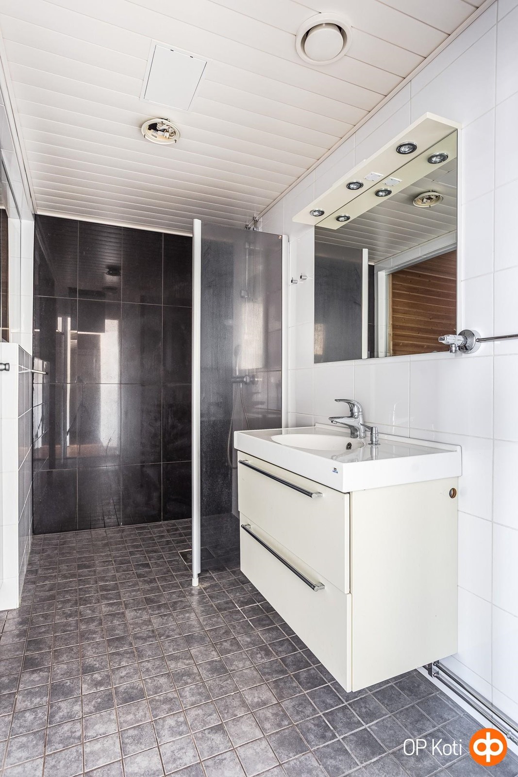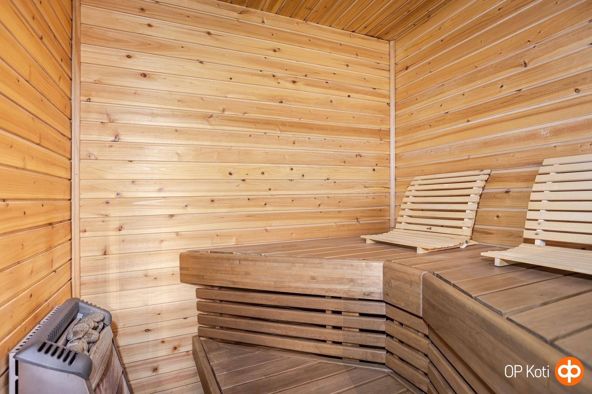 - Sauna, sähkökiuas, kylpyhuone, erillinen wc, suihku, peilit kh;ssa, peilikaappi wc;ssä, pesukoneliitäntä, lattialämmitys. kh ja saunaosasto remontoitu -09