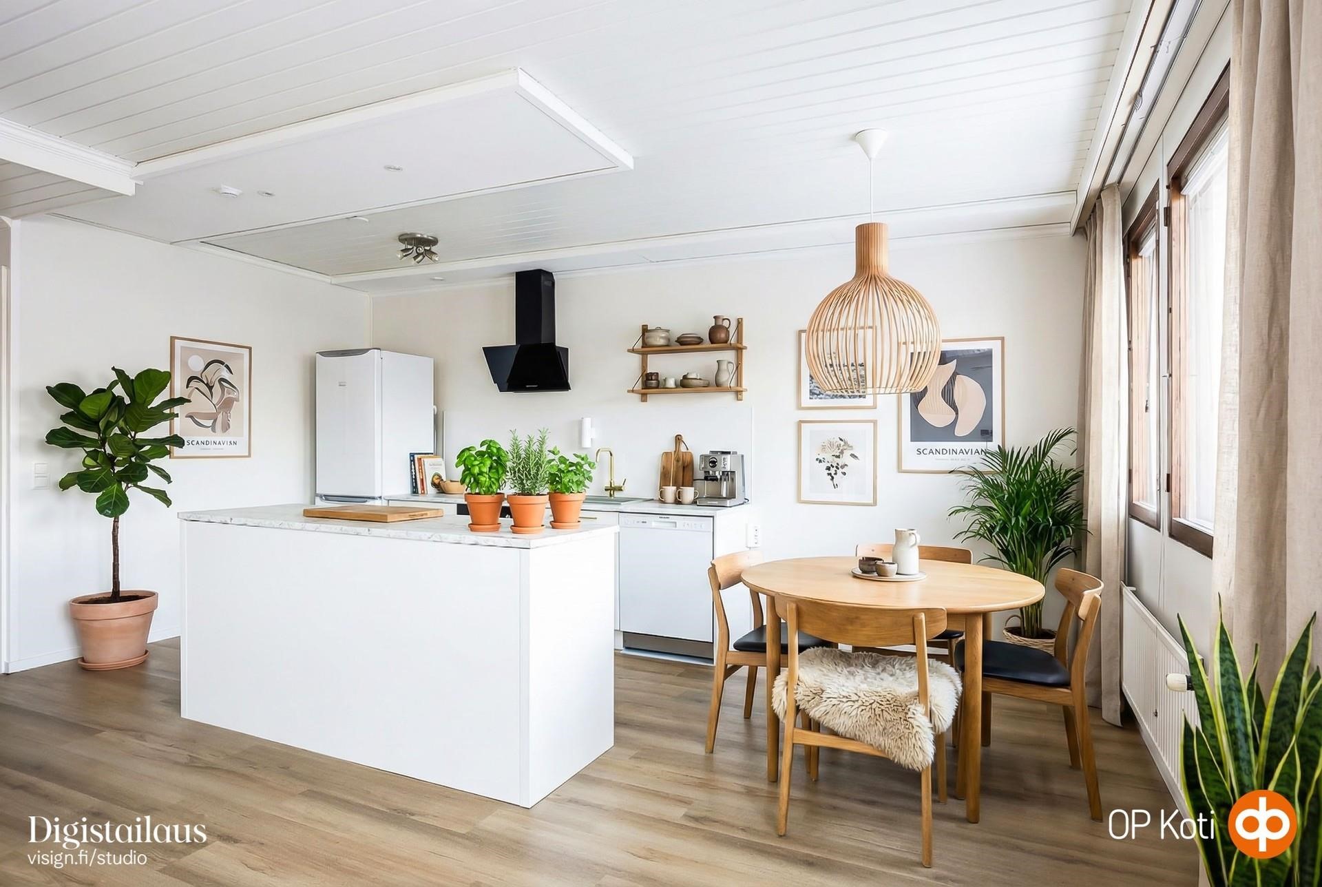 Valoisa ja muuttovalmis 73 m²:n kolmio keskeisellä sijainnilla, palveluiden ja hyvien yhteyksien äärellä. Asunnossa on vuonna 2024 remontoitu keittiö sekä uusitut pintamateriaalit, jotka tuovat kotiin raikkaan ja ajattoman ilmeen. Kylpyhuone ja sauna on remontoitu 2009, ja kokonaisuutta täydentävät erillinen WC sekä iso vaatehuone. Hyvänkokoinen aidattu länsipiha. Taloyhtiö lämpiää maalämmöllä, mikä pitää asumiskulut edullisina. Mukavuutta lisää oma autokatospaikka. Tämä koti sopii sinulle, joka arvostat helppoa arkea, modernia ilmettä ja loistavaa sijaintia.Varaa oma esittelyaikasi ja tule ihastumaan! Sovi Yksityisesittely. Leena Mähönen, Kiinteistönvälittäjä, YKV,LKV. Puh. 0400415107. Sp. leena.mahonen@op.fi Kiinteistönvälitystä yli 37 vuoden kokemuksella!