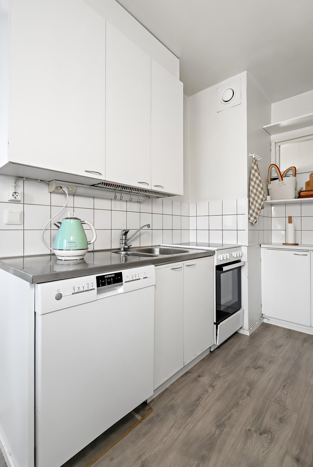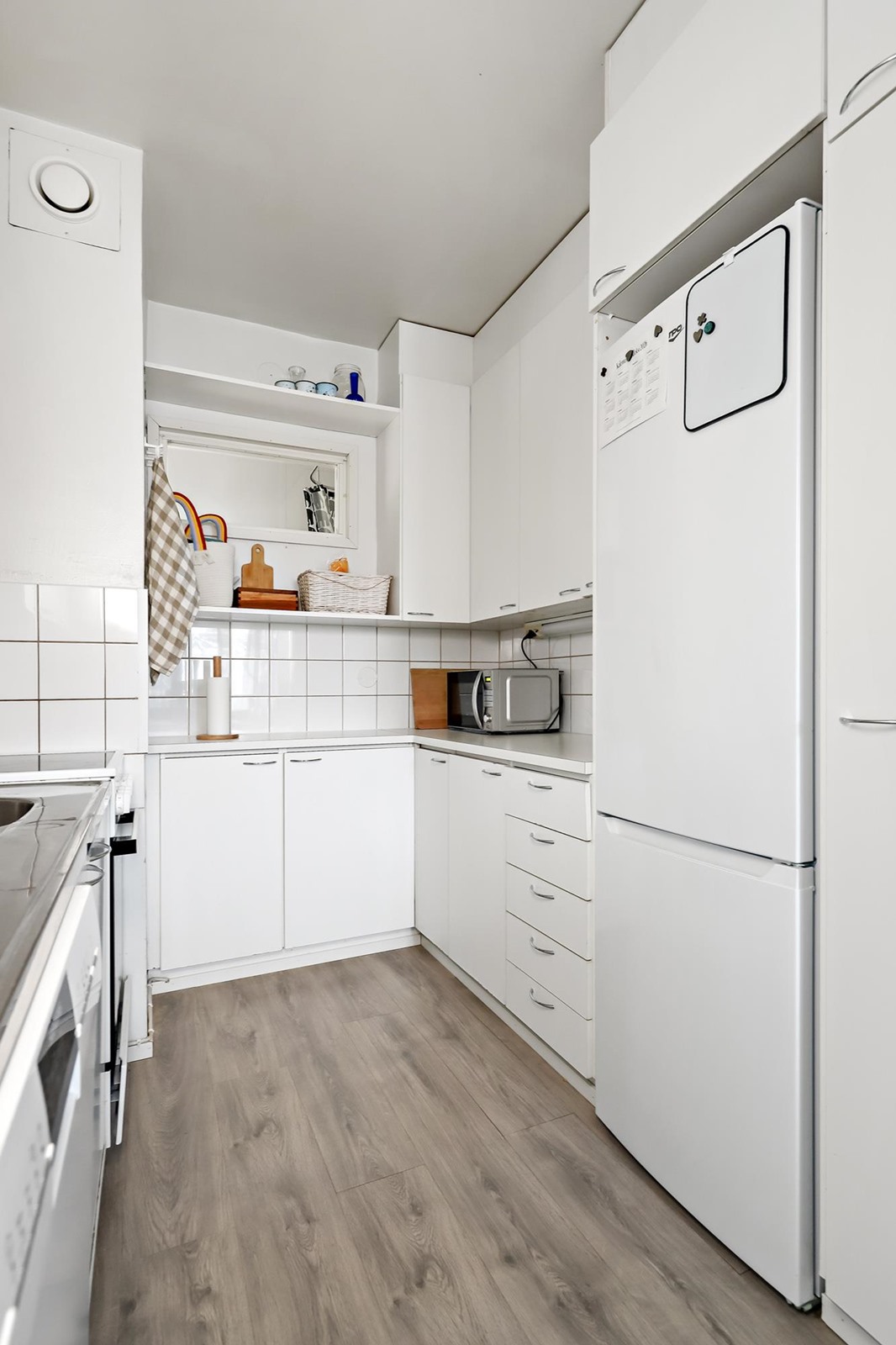 - Jääkaappipakastin, keraaminen liesi, astianpesukone, kaapistot, kiinteät valaisimet.