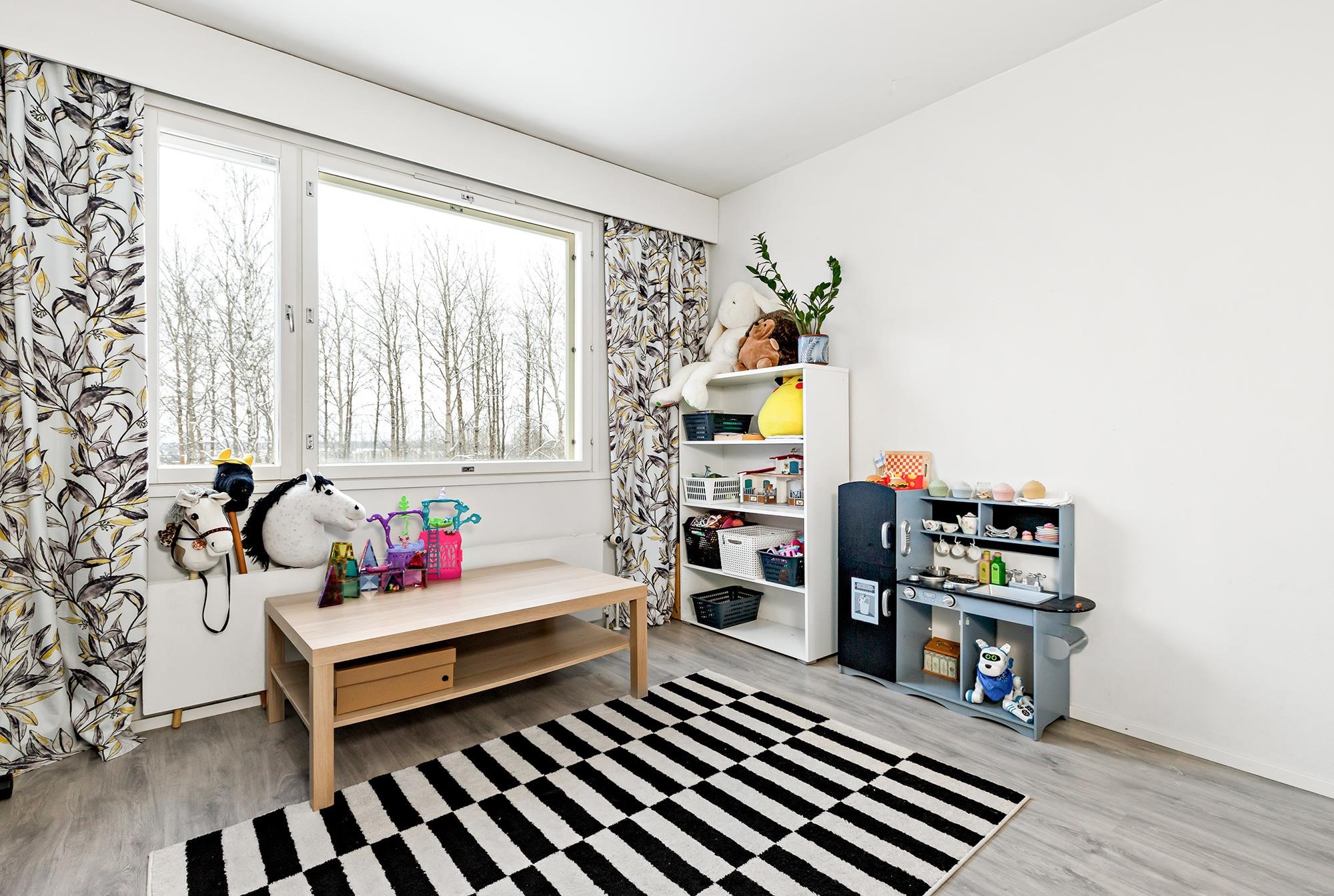 Tilava kolmio tarjoaa toimivan ja selkeän pohjaratkaisun arkeen. Huoneet ovat reilun kokoiset ja asunnon tilajako on käytännöllinen. Keittiöön mahtuu hyvin ruokailupöytä, mikä tekee siitä luontevan paikan yhdessäoloon. Wc ja kylpyhuone ovat erilliset, mikä sujuvoittaa arkea. Olohuoneesta on käynti lasittamattomalle parvekkeelle. Tämä peruskuntoinen asunto sopii hyvin niin omaksi kodiksi kuin sijoitukseen.