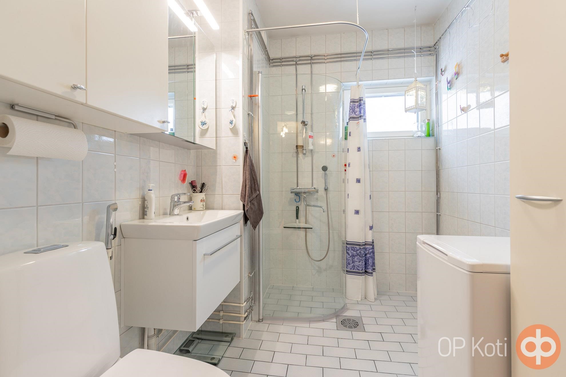 - Suihkukaappi, peilikaappi, kaapit, pesukoneliitäntä.