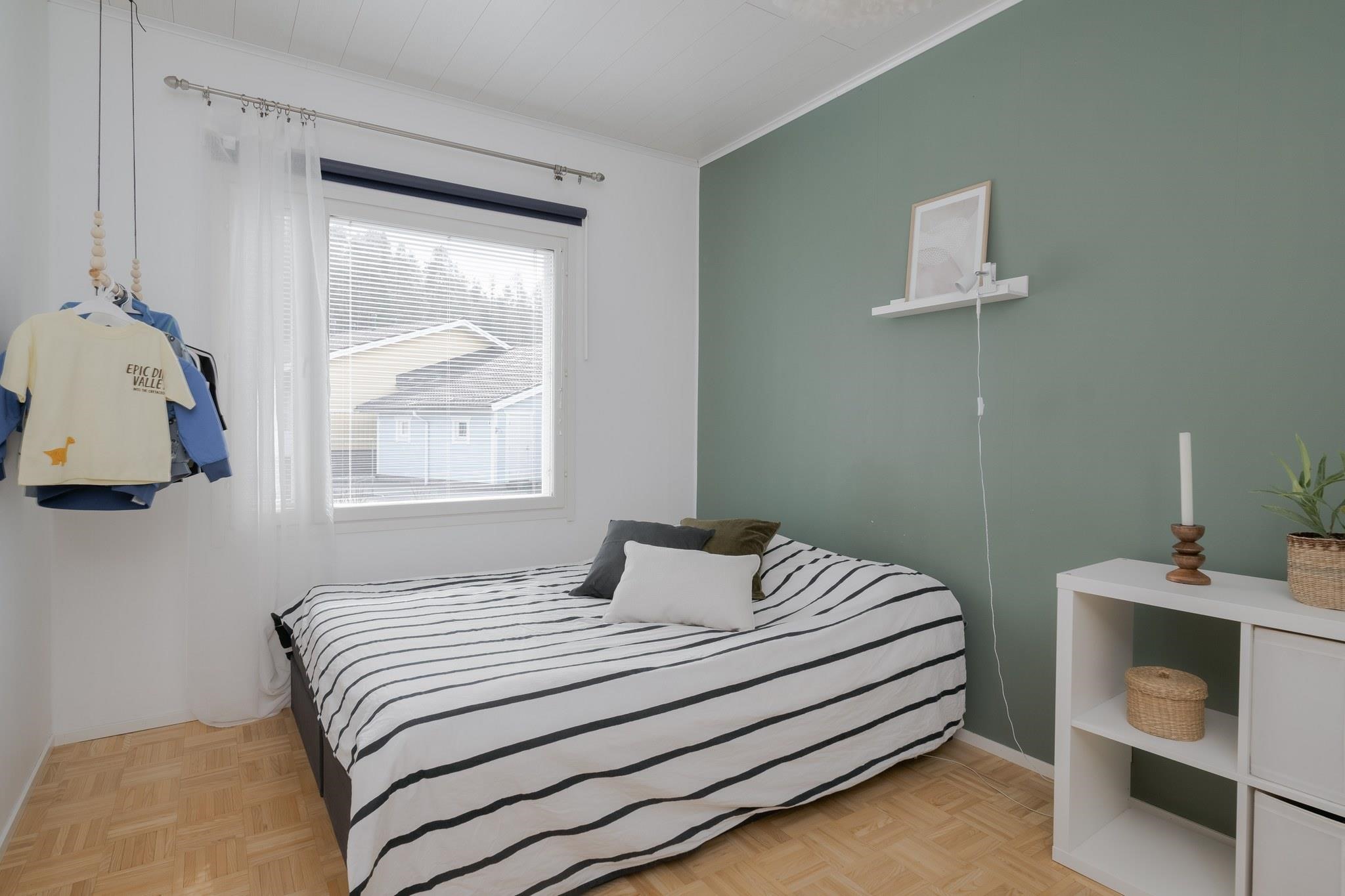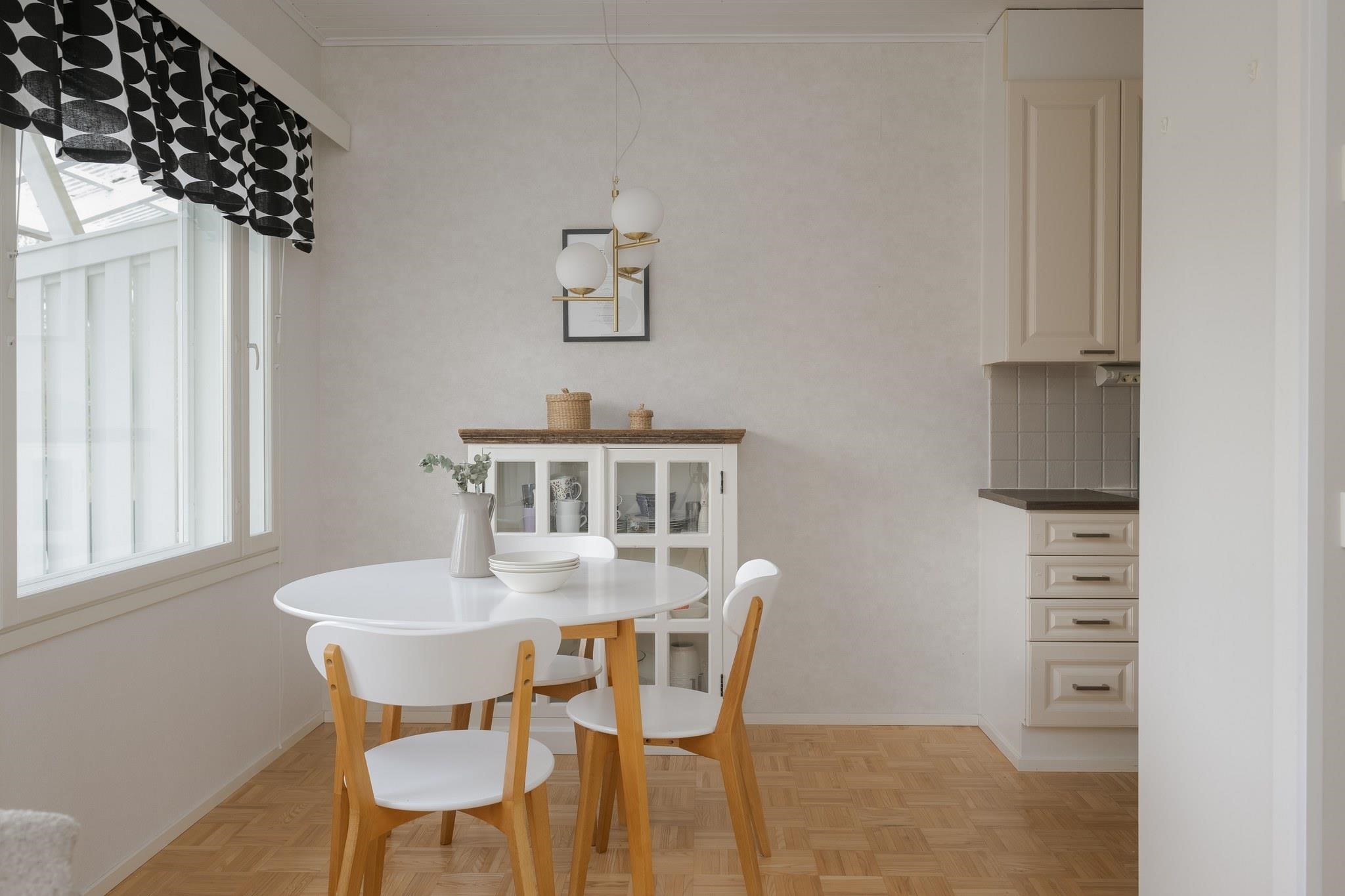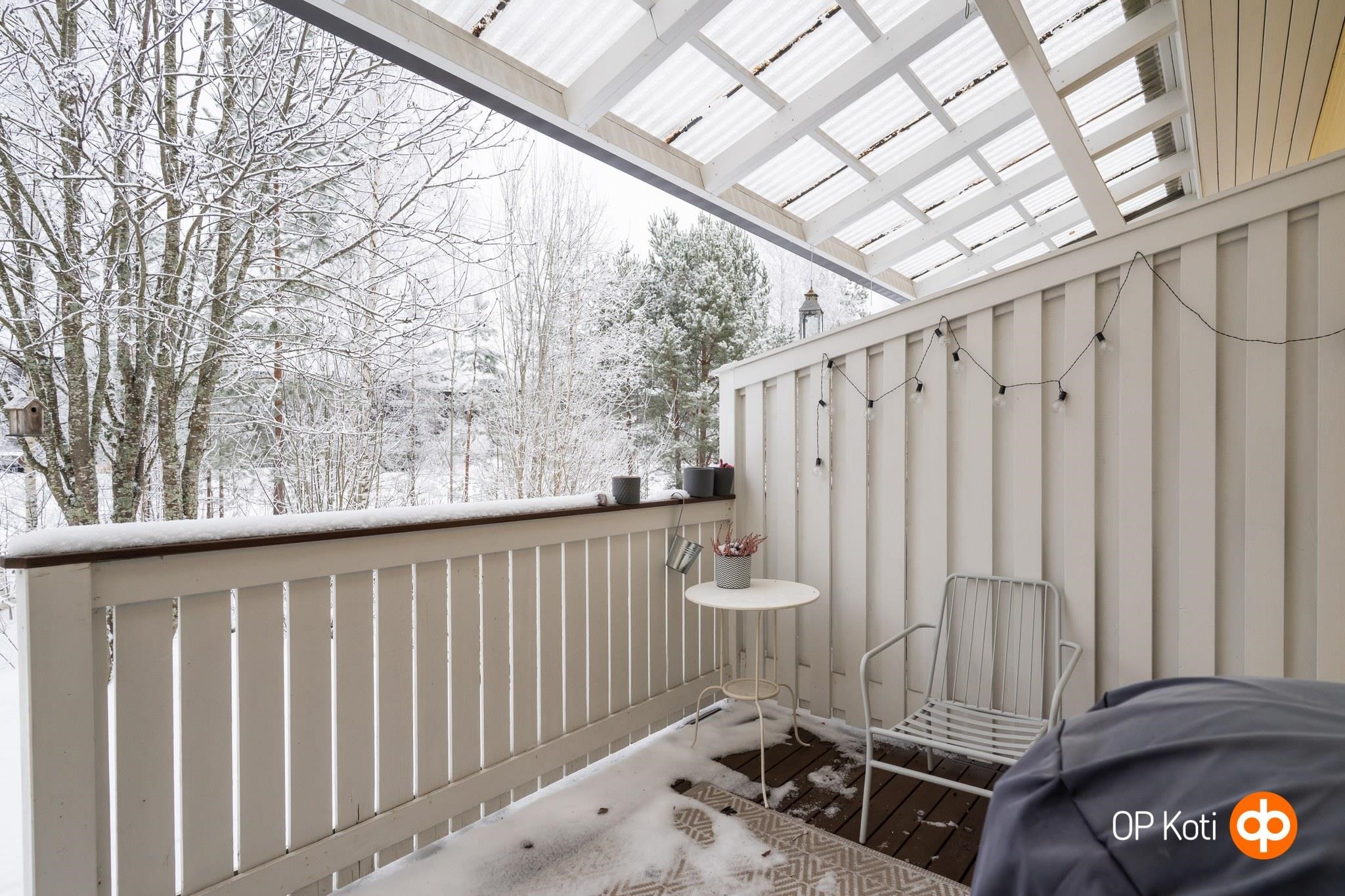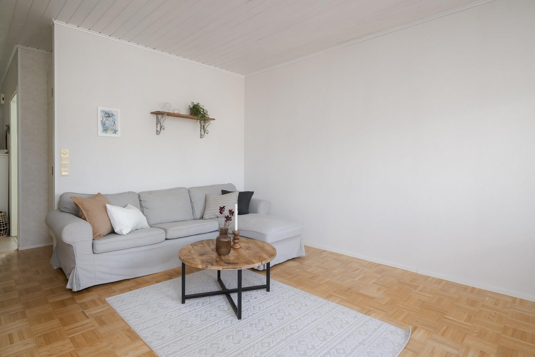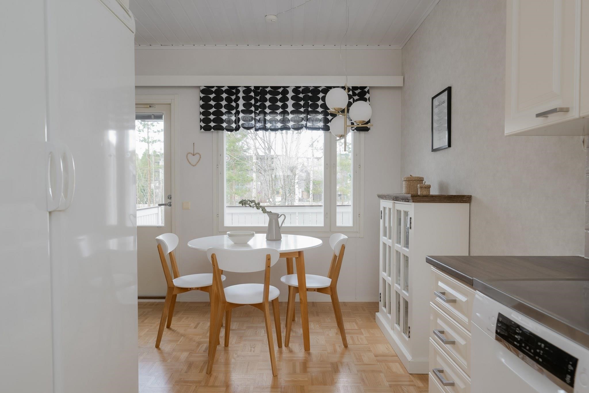 Piha rajoittuu upean vehreään puistoalueeseen, joten lapset voivat touhuilla ulkona turvallisesti. Kodin pintoja on päivitetty ja paneelikatto saanut valkean sävyn. Olohuone on tilava ja keittiö kivasti rajattu seinäkkeellä. Asunnon isot ikkunat tuovat kivasti valoa myös keittiön ruokailutilaan. Kylpyhuoneremontti on juuri valmistunut ja samalla uusittiin saunan panelointi ja asennettiin Harvian pilarikiuas.