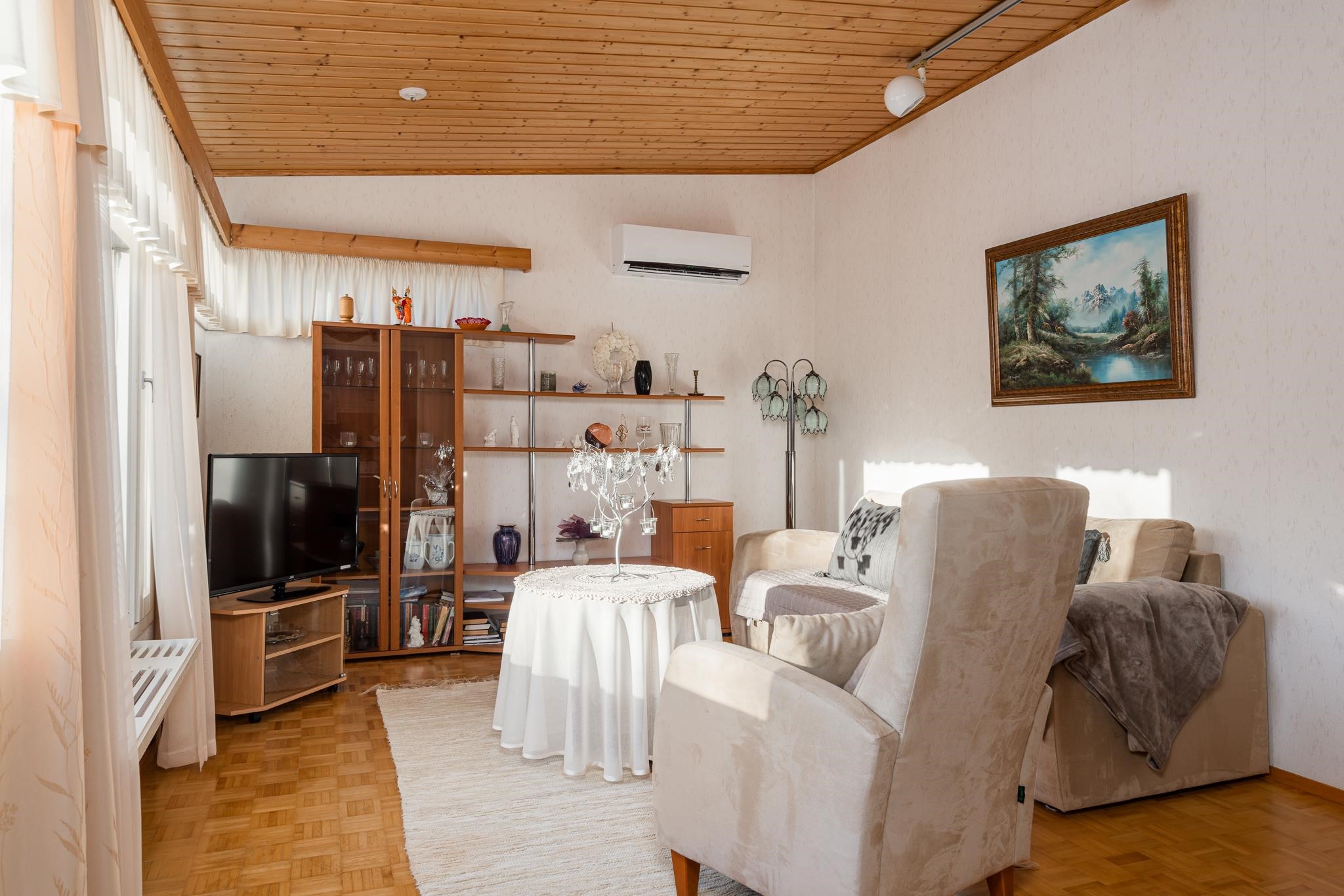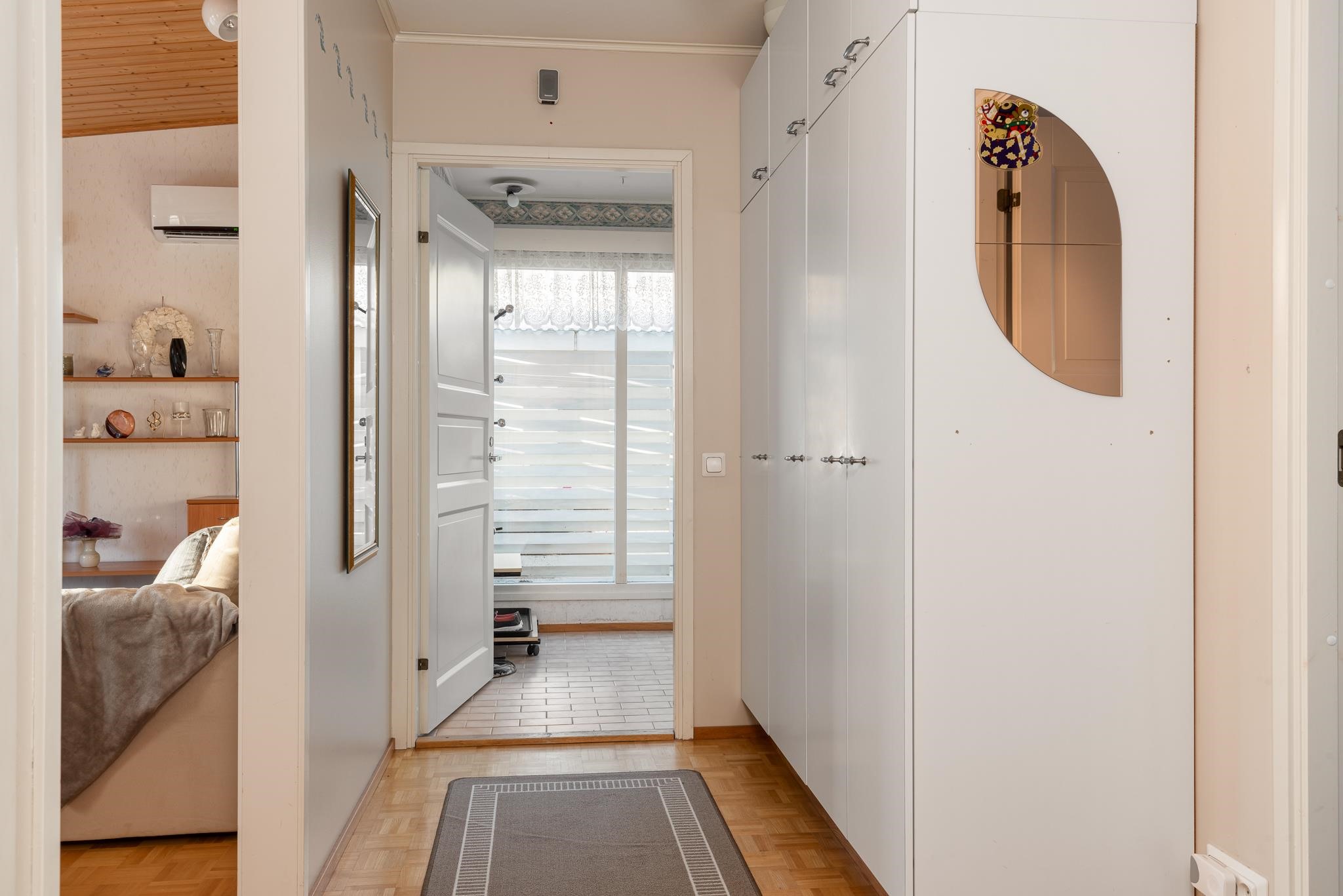 - Sauna, sähkökiuas, kylpyhuone, erillinen wc, suihku, peilikaappi, allaskaappi, pesukoneliitäntä, lattialämmitys, kiinteät valaisimet.