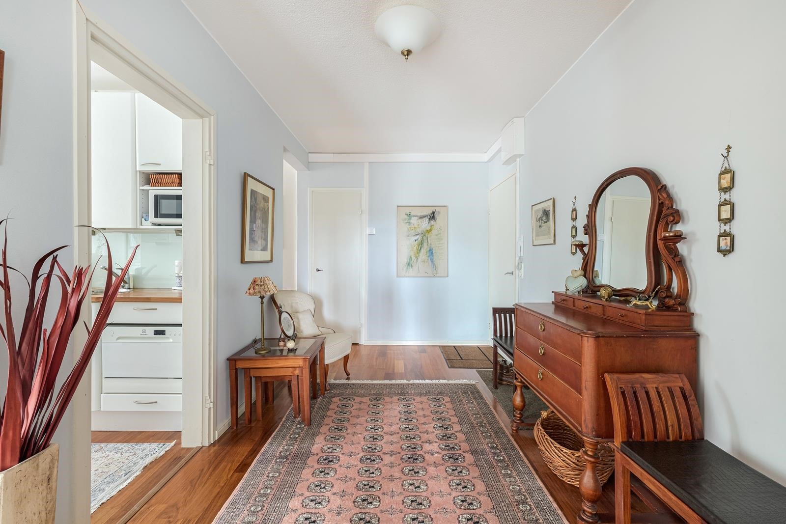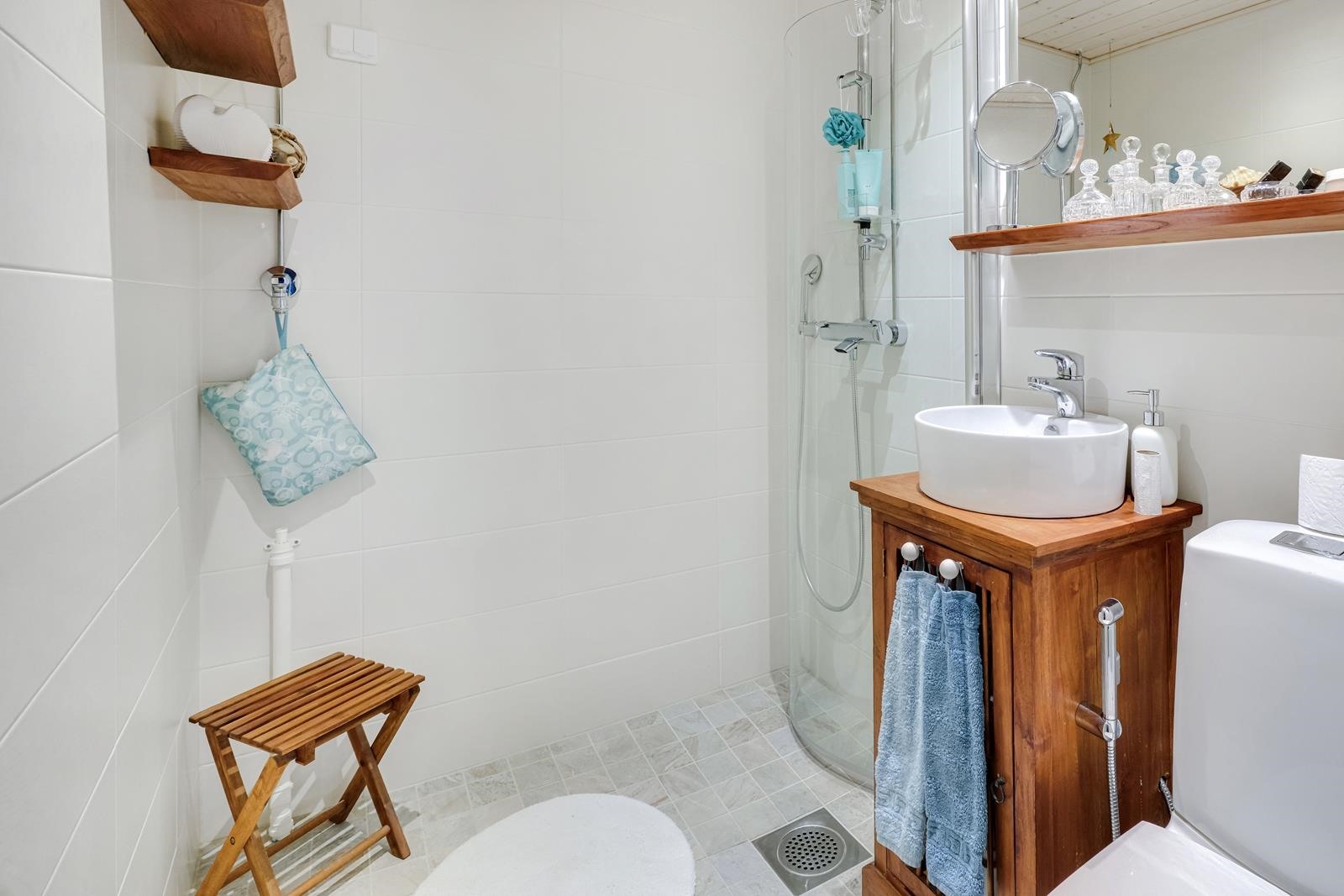 - Kylpyhuone, suihku, suihkuseinä, peilit, allaskaappi, pesukoneliitäntä, lattialämmitys. Kylpyhuone uusittu yhtiön LVIS saneerauksen yhteydessä.