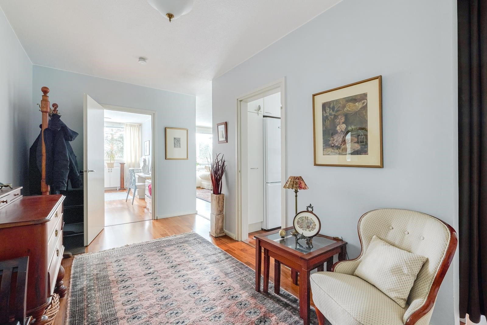 Keittiö: laminaatti. Olohuone: laminaatti. Makuuhuone 1: laminaatti. Makuuhuone 2: laminaatti.