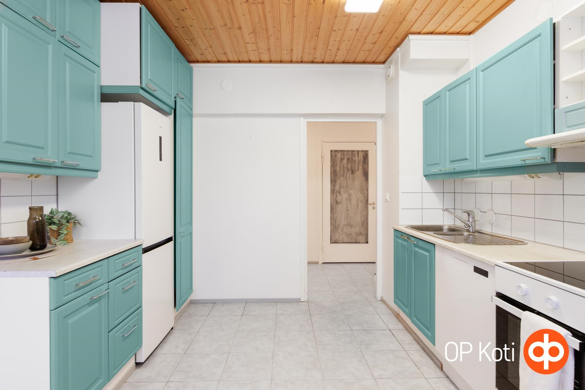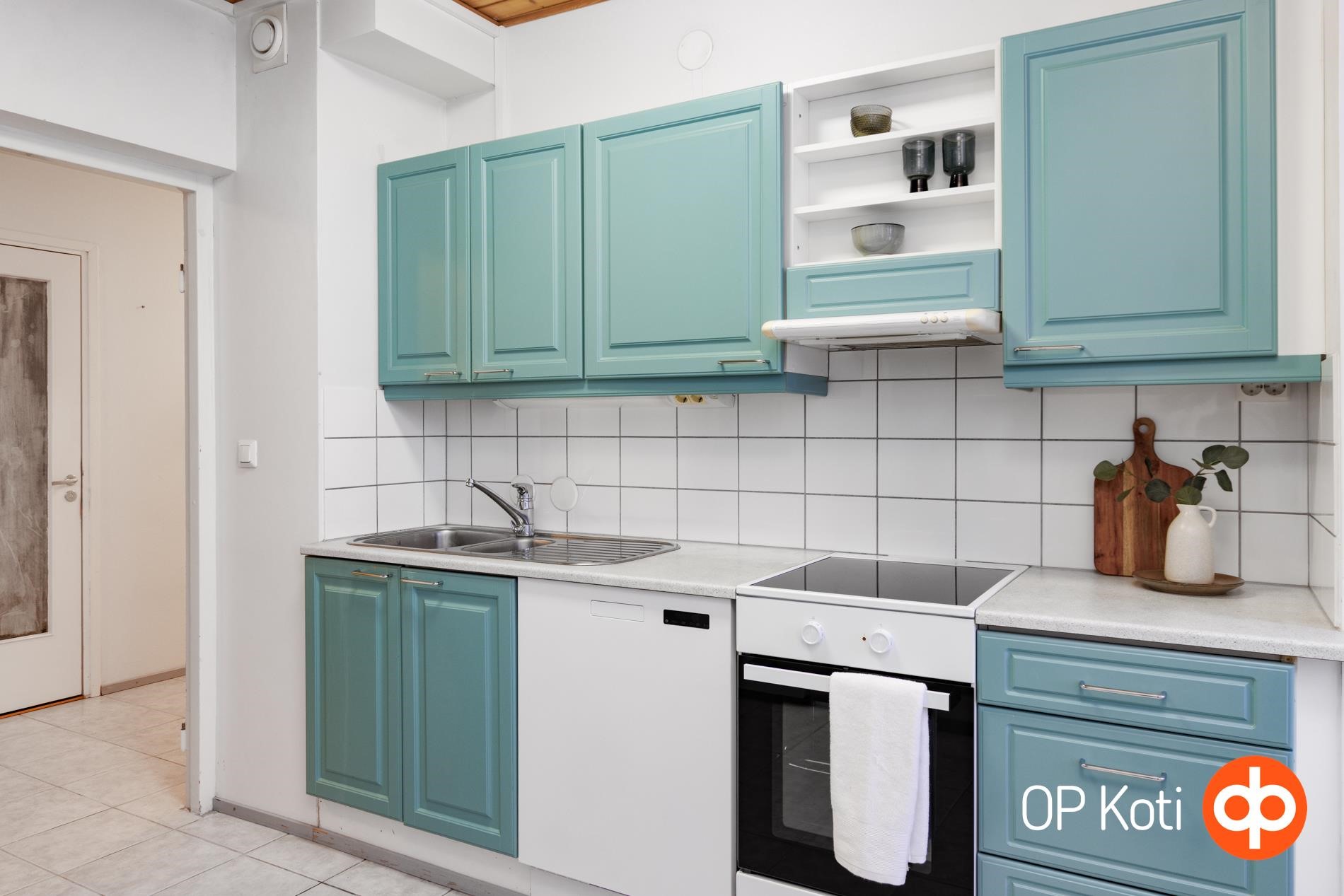 - Jääkaappipakastin uusittu noin vuosi sitten, sähköliesi uusittu kaksi vuosi sitten, liesituuletin, astianpesukone uusittu noin kaksi vuotta sitten, kaapistot, kiinteät valaisimet. laattalattiat ovat kaapistojen alle asti tehdyt.