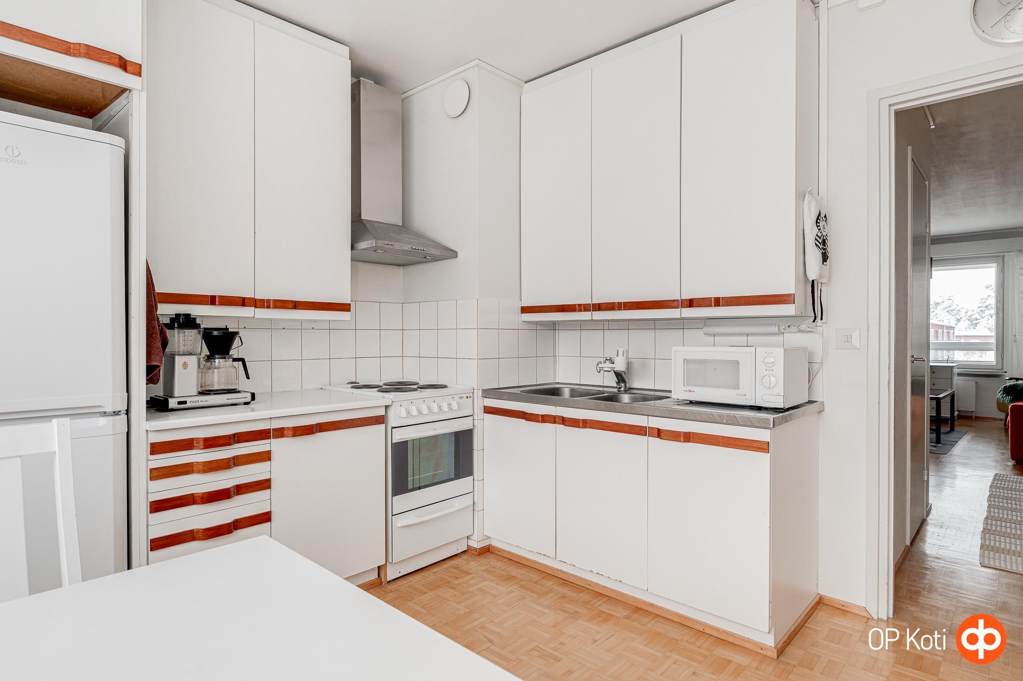 Huoneisto on hyvin pidetty, ja pintamateriaalit ovat ajattoman tyylikkäät: parketti olohuoneessa ja keittiössä, laminaatti makuuhuoneessa sekä laatoitettu kylpyhuone. Yhtiössä on tehty merkittäviä peruskorjauksia, kuten käyttövesiputkien, vesikaton ja parvekeovien uusimiset sekä laajakaistan ja kameravalvonnan käyttöönotto. Taloyhtiössä on kattavat yhteiset tilat, kuten sauna, pesutupa, urheiluvälinevarasto ja askarteluhuone, jotka tekevät arjesta sujuvaa ja viihtyisää.