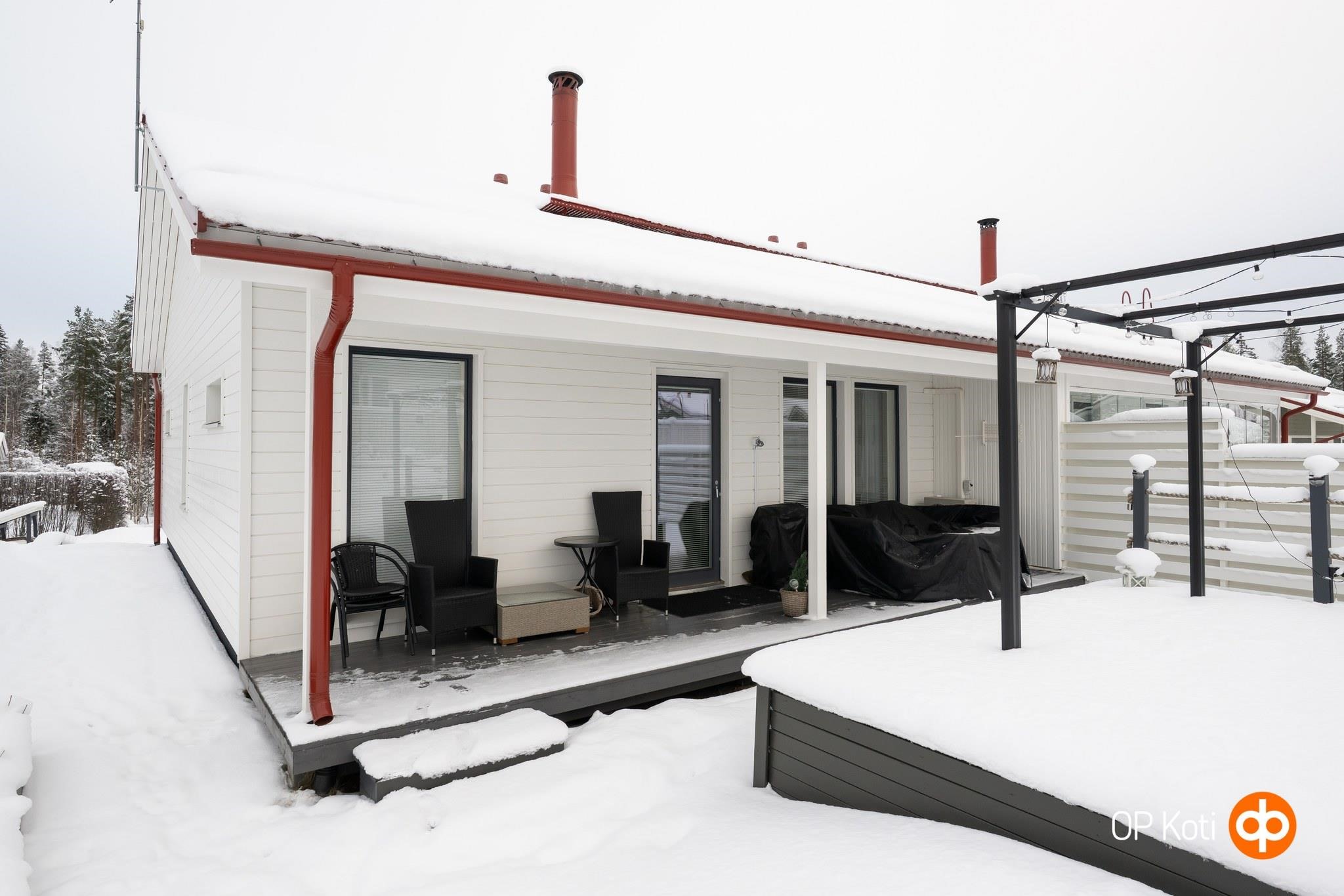 Tämän paritalon sijainti Sääksvuoressa tarjoaa asumiseen monia hyviä puolia. Sääksvuori on arvostettu ja viihtyisä asuinalue, joka houkuttelee asukkaita monista syistä. Tämä paritalokoti on rakennettu vuonna 2021, joten remontteihin ei tarvitse ryhtyä! Kodin sisustus on tyylikäs ja viihtyisä ja se tarjoaa runsaasti luonnonvaloa. Lämmityksenä on huoleton kaukolämpö vesikiertoisella lattialämmityksellä ja lisänä varaavatakka, sekä ilmalämpöpumppu. Piha ja erillinen iso terassi antavat mahdollisuuden nauttia ulkoilmasta ja piha tarjoaa tilaa lasten leikeille ja perheen yhteisille hetkille. Asuntoon kuuluu autokatospaikka varastoineen. Autokatoksessa on sähköauton latauspistoke valmiina. Tämä koti on täydellinen valinta perheille, jotka etsivät kodikasta ja käytännöllistä asumista hyvien kulkuyhteyksien ja luonnonläheisen ympäristön keskellä. Sääksvuoren yksi suurista eduista on sen luonnonläheisyys. Alueella on runsaasti vehreitä puistoja, metsiä ja ulkoilureittejä, jotka tarjoavat loistavia mahdollisuuksia ulkoiluun, lenkkeilyyn ja perheen yhteiseen ajanviettoon luonnossa. Voit nauttia raikkaasta ilmasta ja kauniista maisemista aivan kotiovellesi asti. Sääksjärven uimarantakin on lähettyvillä! Sääksvuori tunnetaan myös hyvin kehitettynä ja monipuolisena asuinalueena. Alueella on uusi koulu, päiväkodit ja muut tärkeät palvelut, jotka tekevät arjen sujuvaksi ja helppokulkuiseksi lapsiperheille. Lisäksi alueelta on hyvät kulkuyhteydet Jyväskylän keskustaan, joka tarjoaa laajan valikoiman kauppoja, ravintoloita ja viihdetarjontaa.