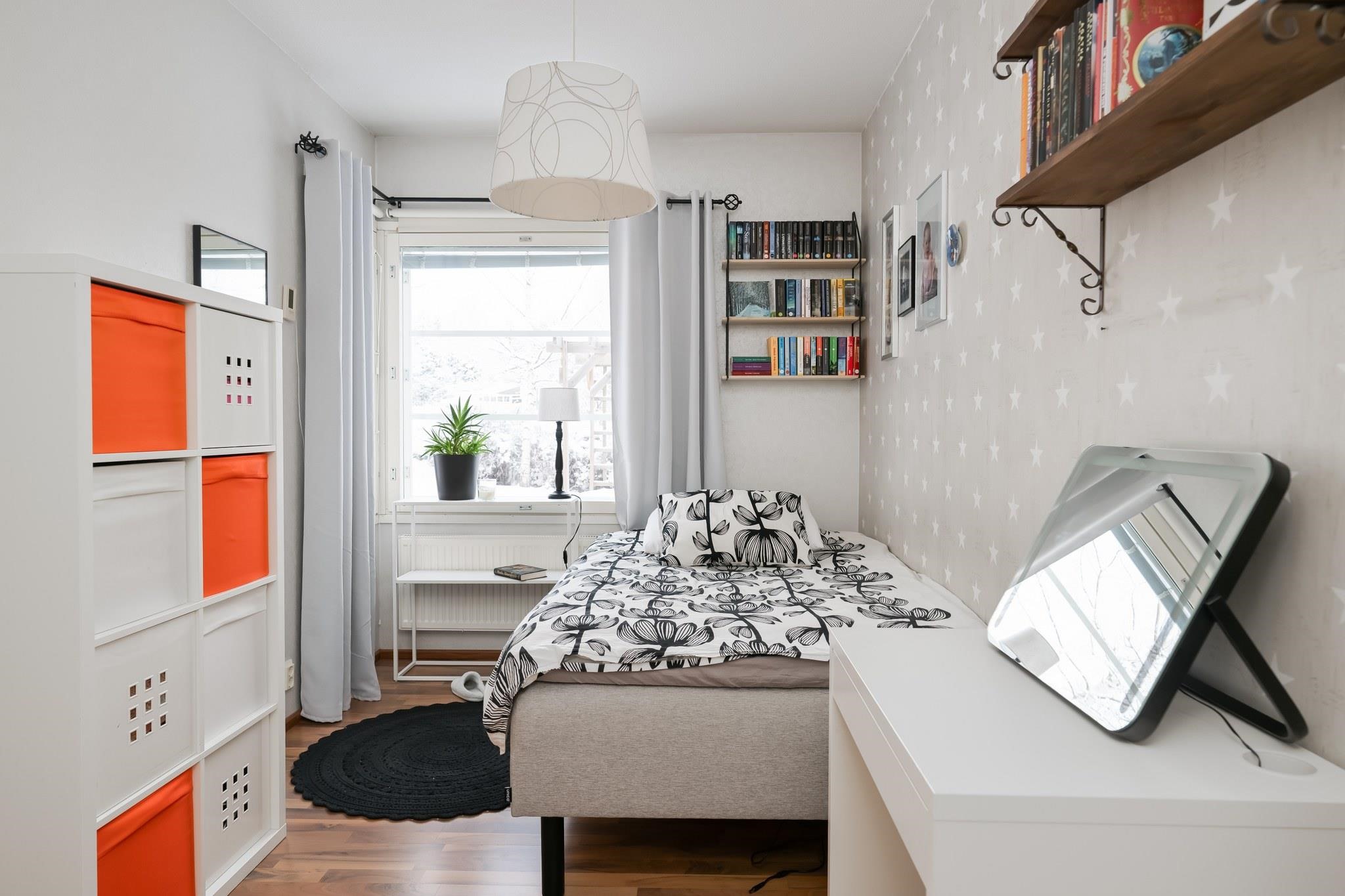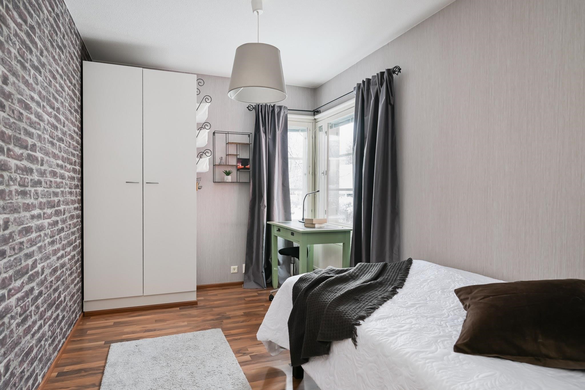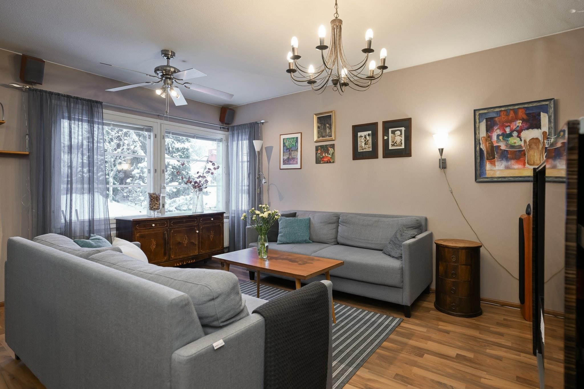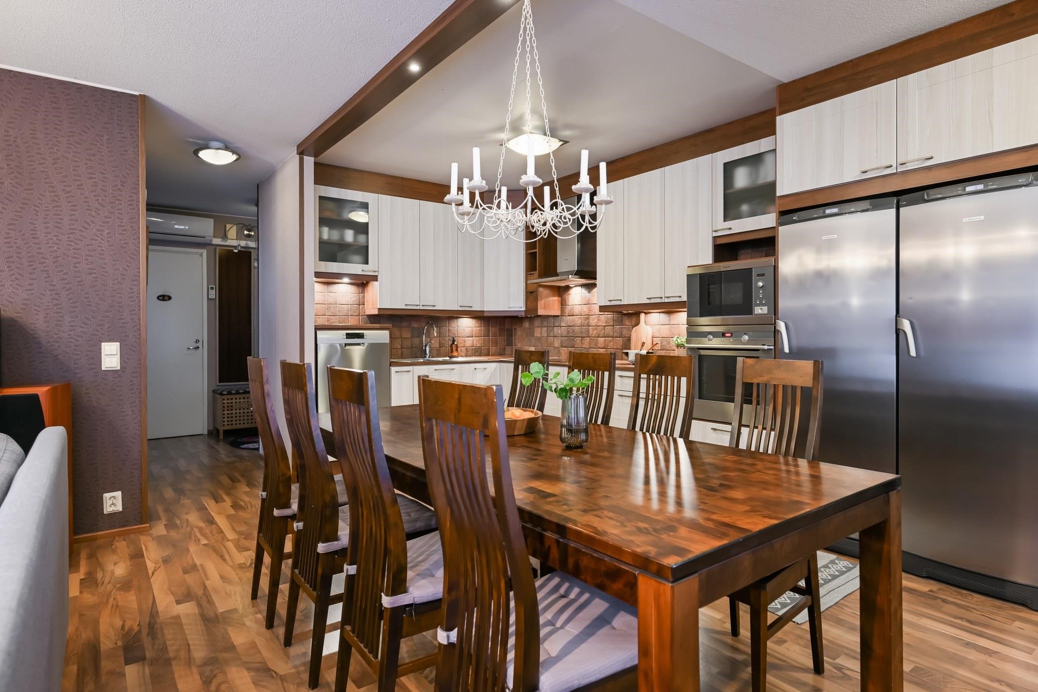 Asunnon 94 neliötä on suunniteltu toimivasti perheen tarpeisiin. Kolme makuuhuonetta, tilava olohuone sekä keittiö, kodinhoitohuone, erillinen wc ja remontoitu kylpyhuone tarjoavat sujuvaa arkea. Keittiössä on nykyaikaiset kodinkoneet, runsaasti kaappi- ja laskutilaa sekä käytännöllinen pohjaratkaisu. Kodinhoitohuone helpottaa arjen pyörittämistä. Saunan lempeissä löylyissä rentoudut pitkän päivän päätteeksi. Ilmalämpöpumppu pitää kodin miellyttävän viileänä kesällä sekä lisää asumismukavuutta. Aurinkoinen terassi ja pergola sekä kauniit istutukset pihassa viimeistelevät kokonaisuuden.