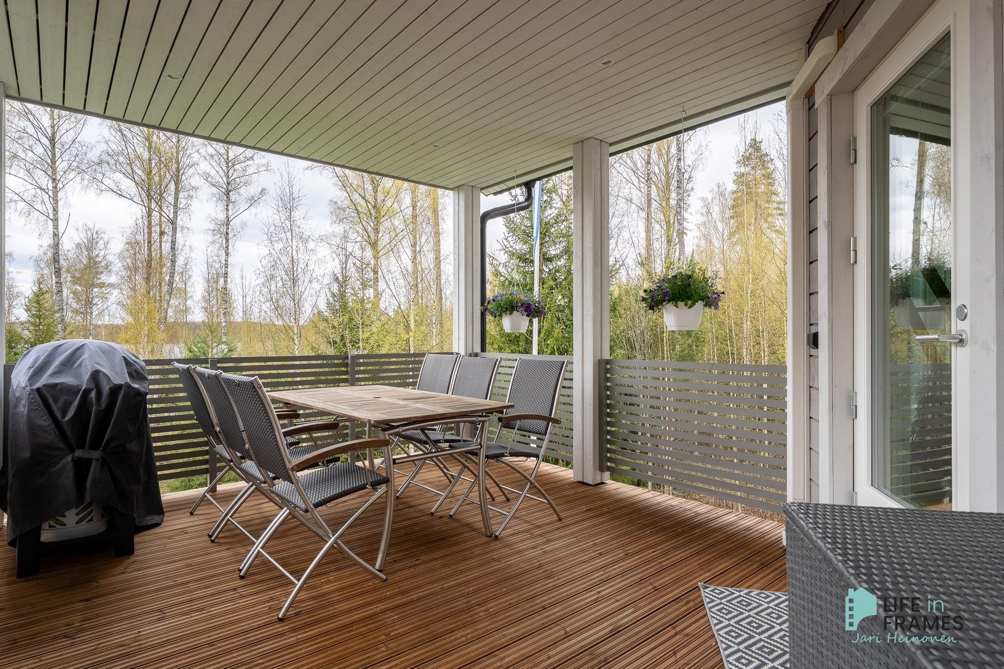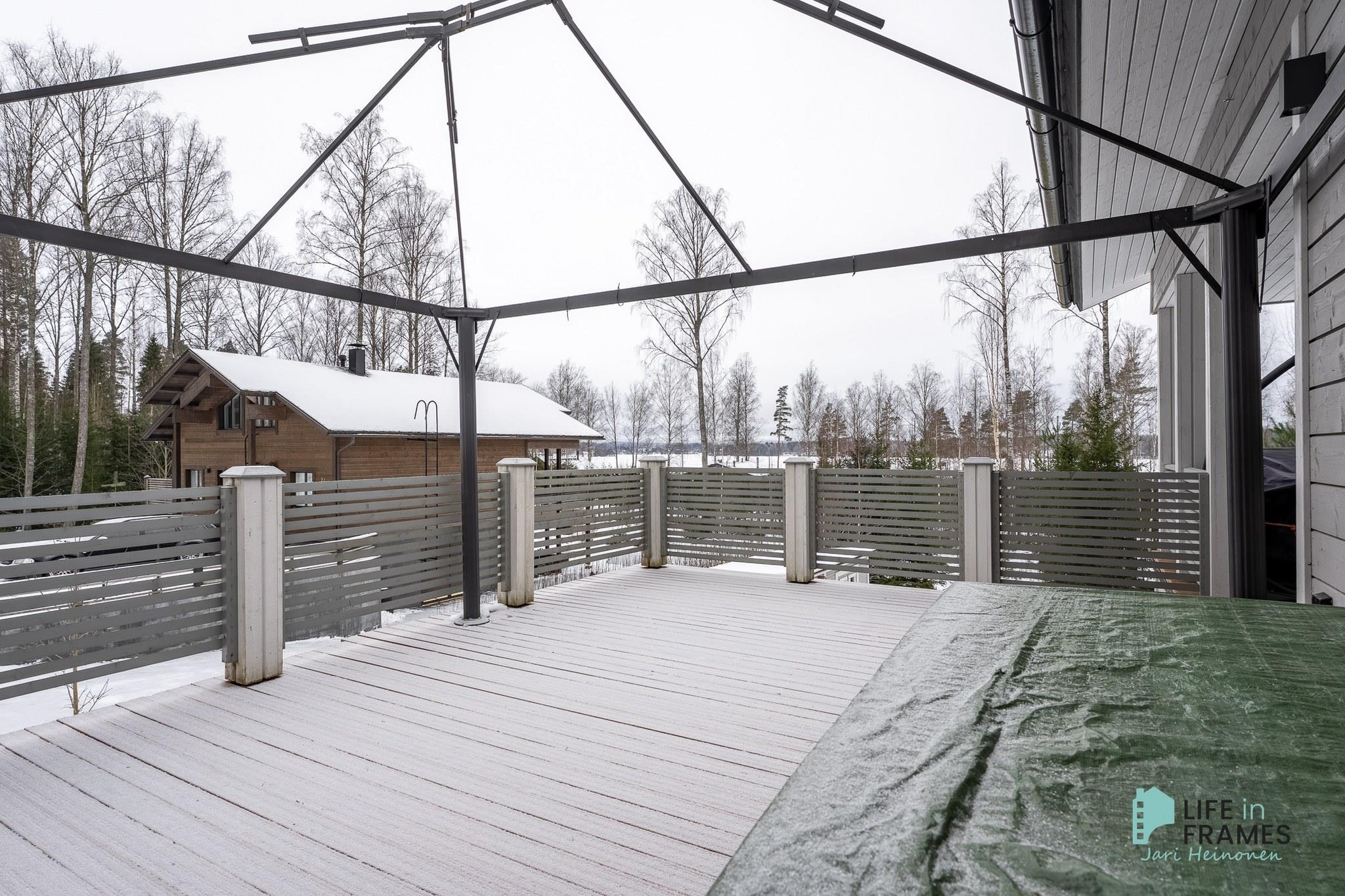 Tässä 2013 valmistuneessa Kastelli-talossa on kaikki nykyajan mukavuudet ja monta hienoa oleskelualuetta. Terasseilla on mukava rentoutua ja nauttia ympäröivästä luonnosta ja hienoista järvimaisemista.