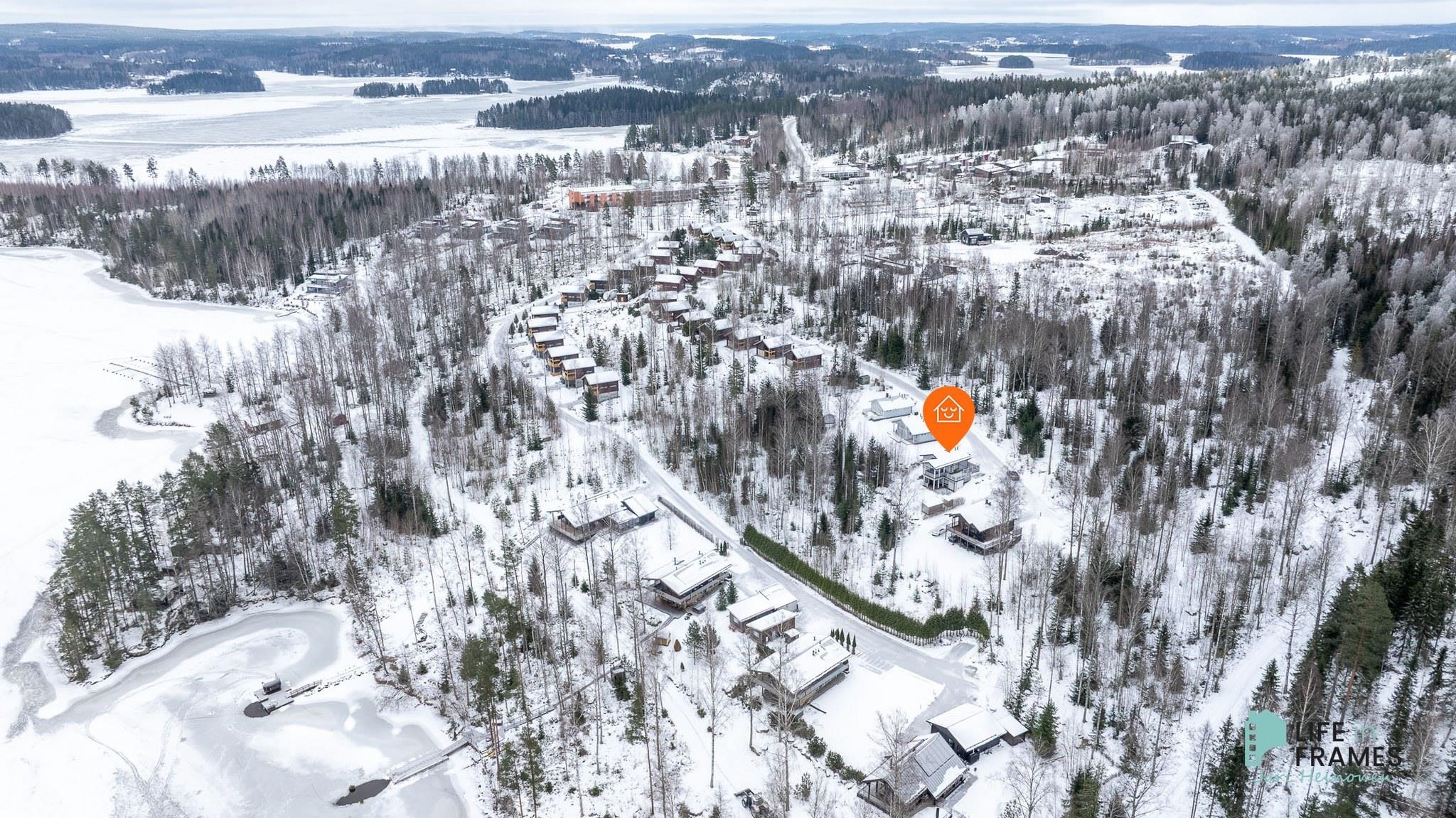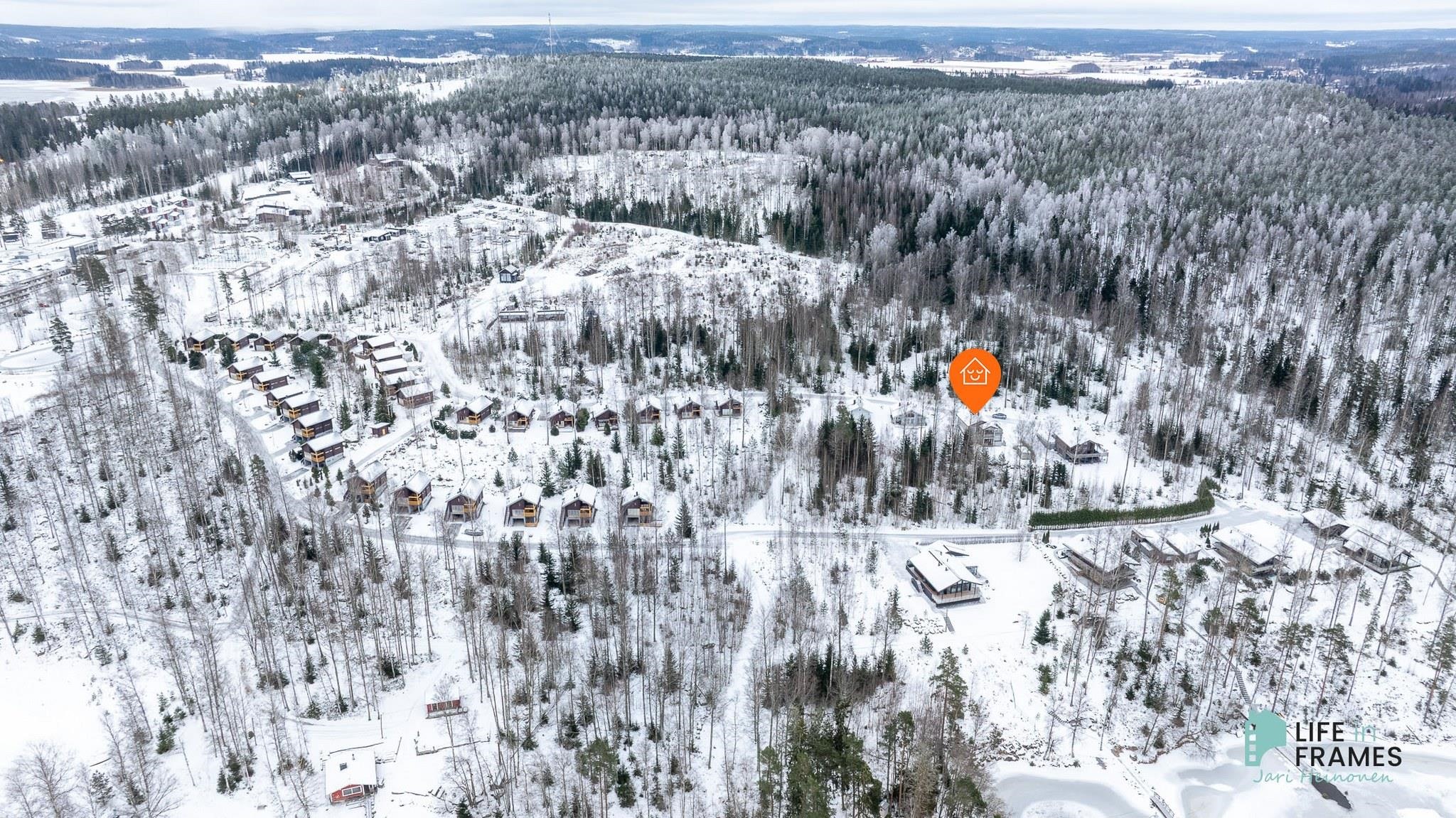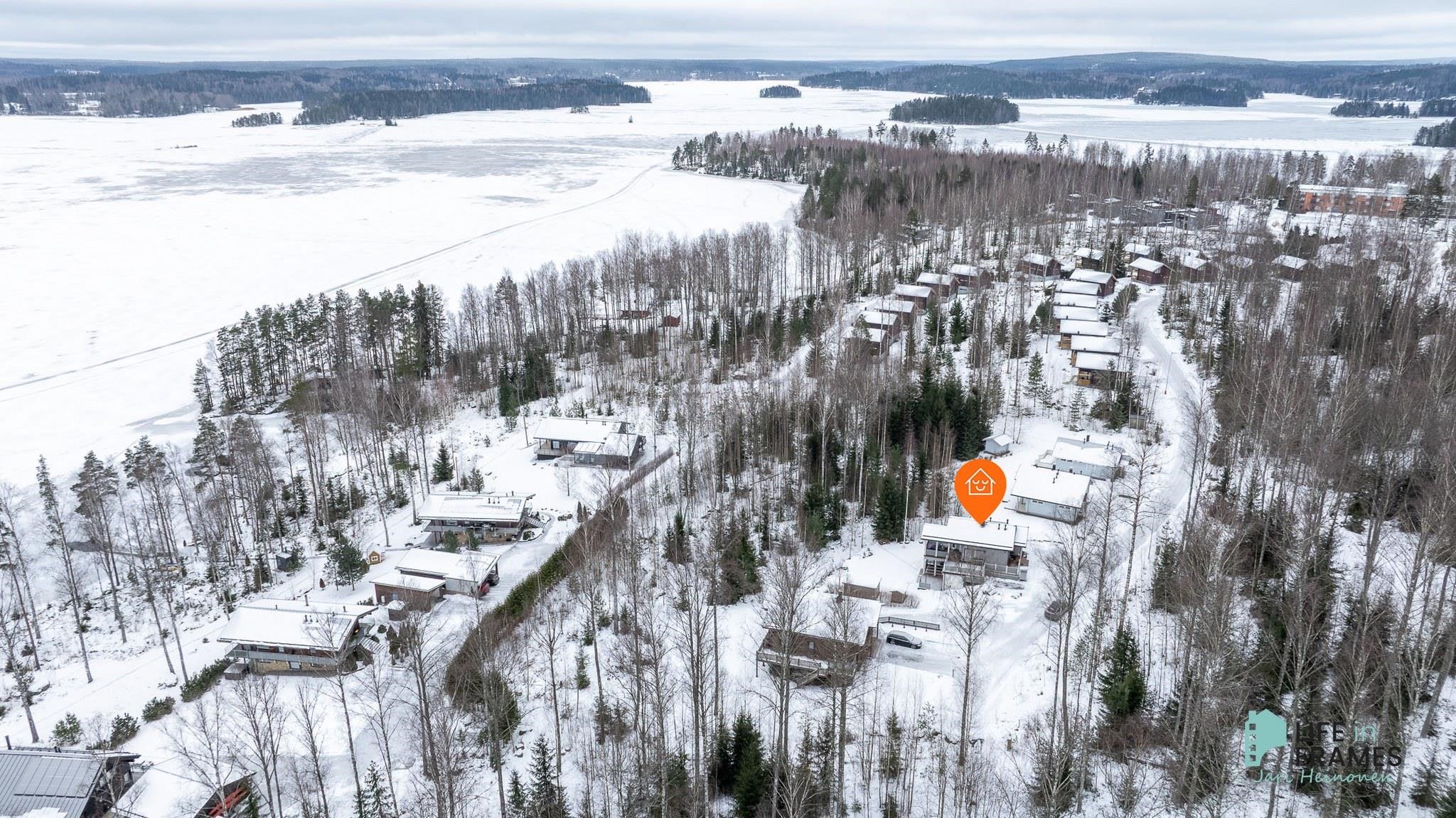 Sijainti päättyvällä kadulla on rauhallinen ja asfaltoitu tie ja piha tuovat siisteyttä ja huoltovapautta. Kiinteistöllä on oikeudet uimapaikkaan ja venevalkamaan. Lisäksi on laituripaikka veneelle.
