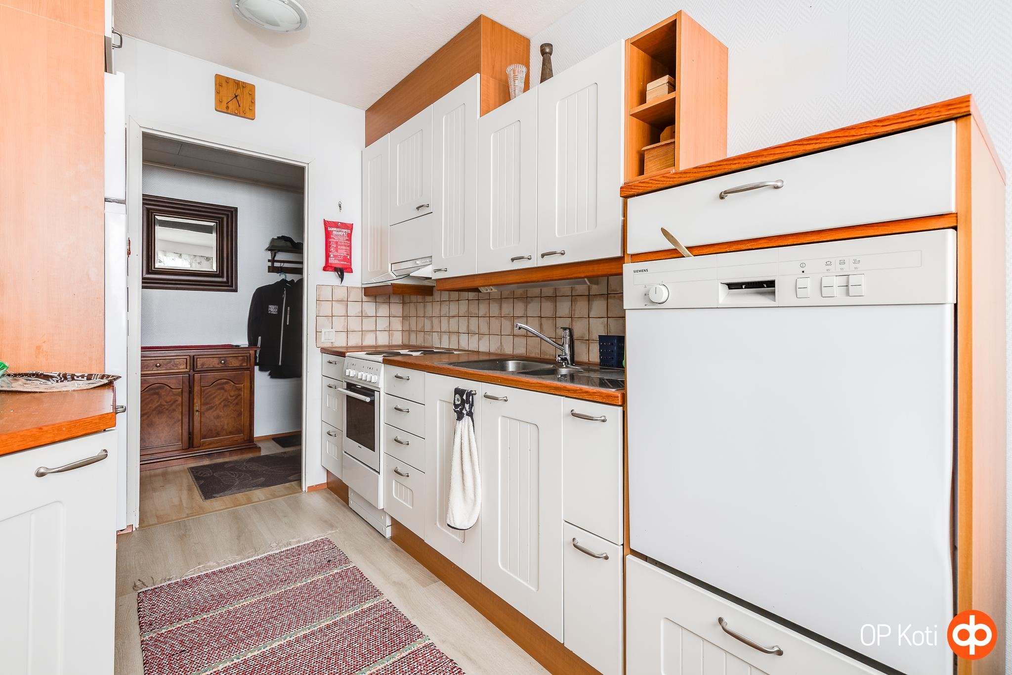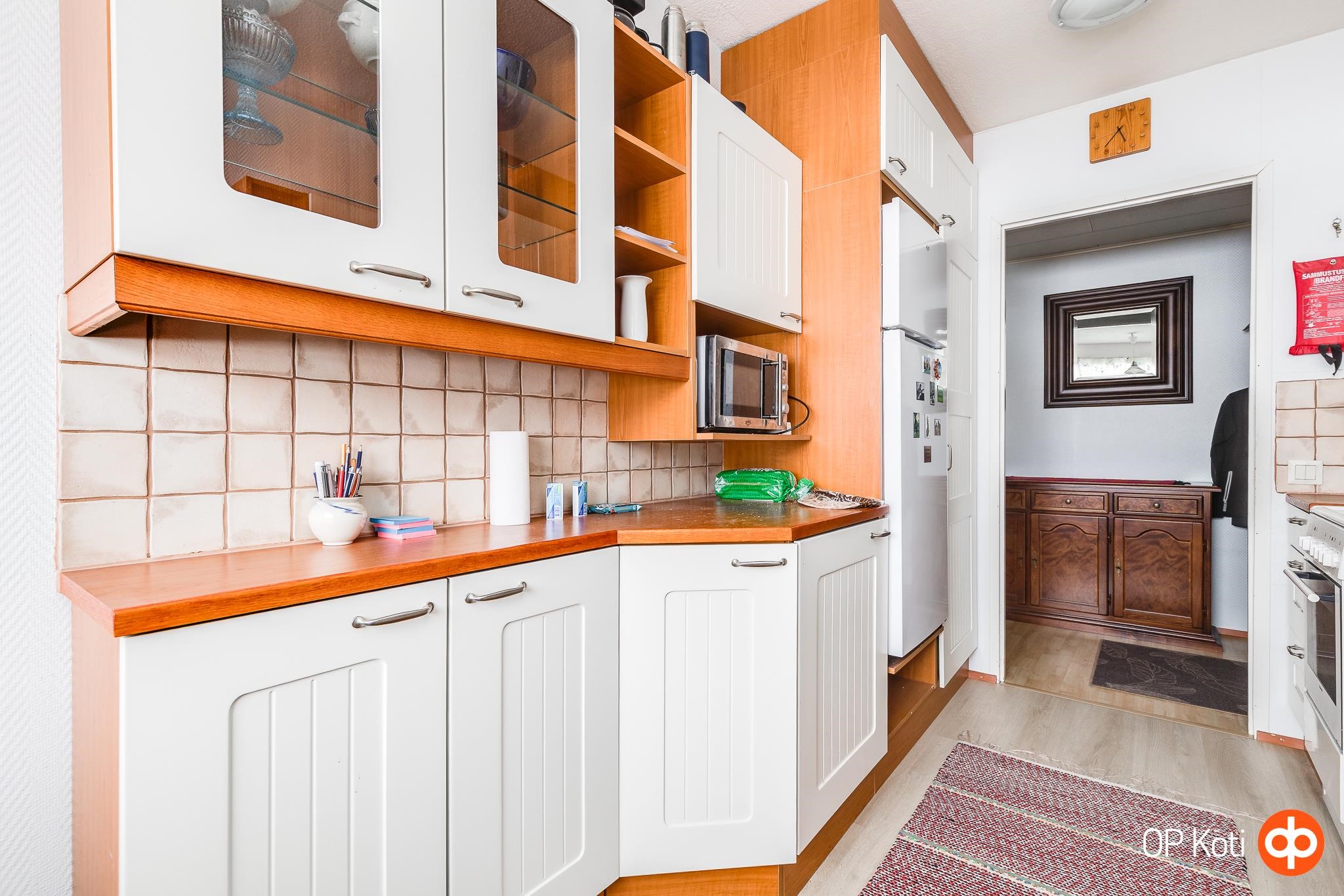 - Jenkkikaappi, sähköliesi, liesituuletin, astianpesukone, kaapistot, kiinteät valaisimet. Keittiö remontoitu 2000-luvun loppupuolella