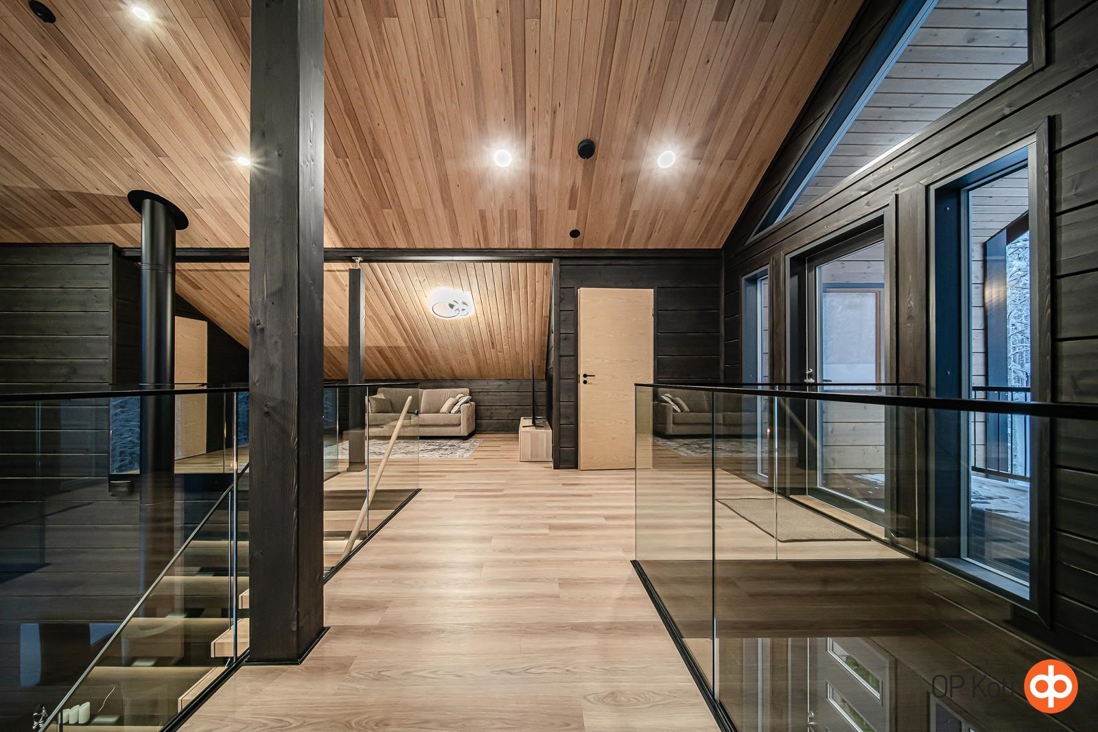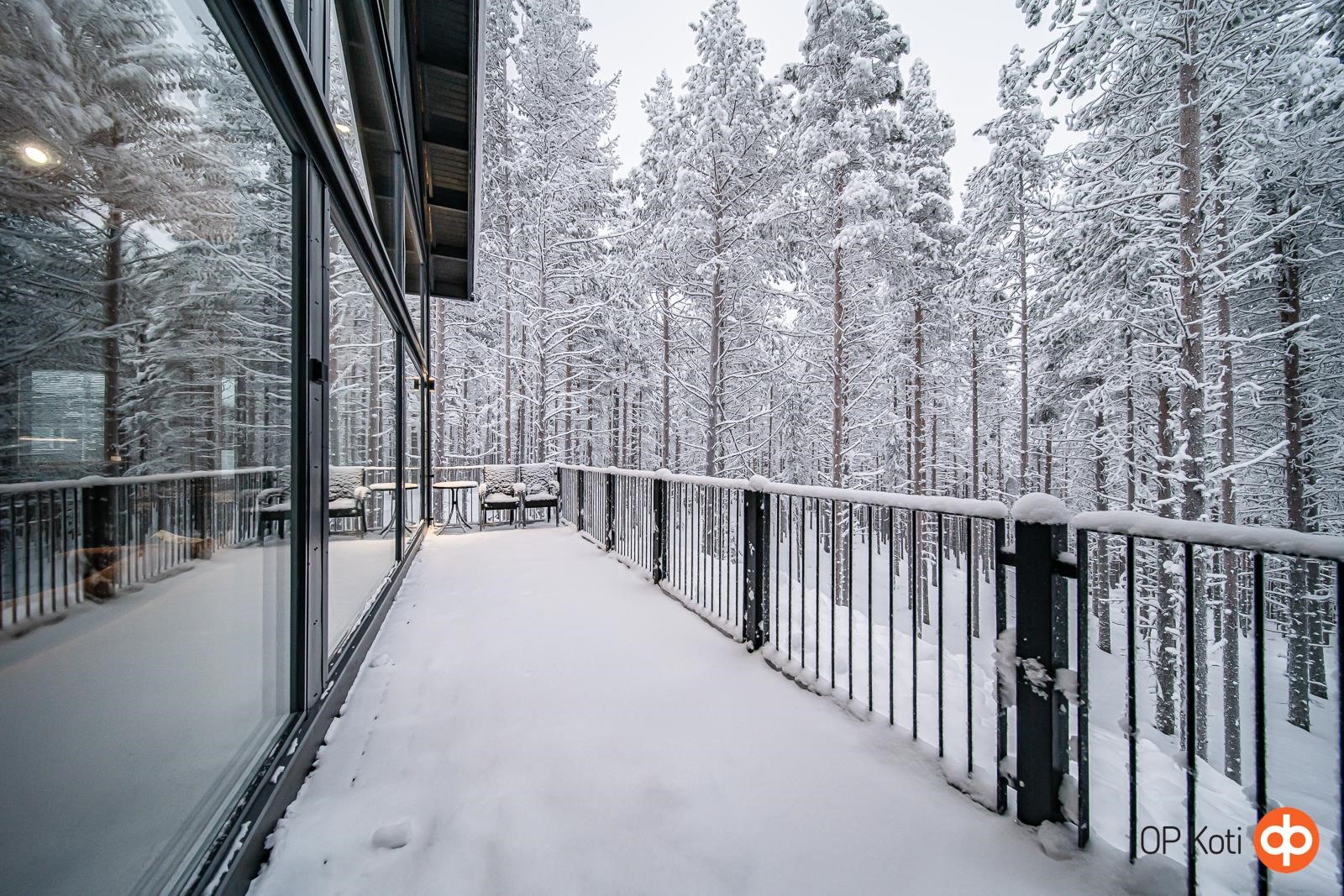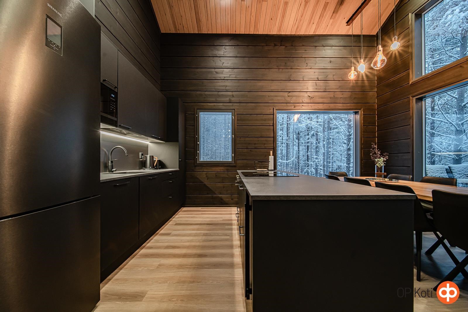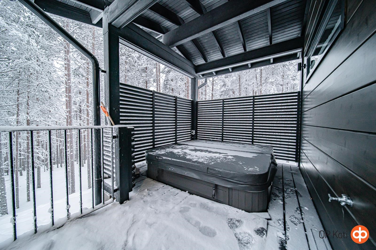 Lapin lumoavassa maisemassa sijaitseva vapaa-ajan koti tarjoaa täydelliset puitteet rentouttavalle lomailulle. Neljä makuuhuonetta jakautuvat kahteen kerrokseen, ja molemmissa kerroksissa on myös erillinen wc. Alakerran ilmava olohuone tulisijoineen avautuu suurien ikkunoiden kautta rauhoittavaan metsämaisemaan. Avara oleskelutila jatkuu saarekkeella varustettuun keittiöön ja ruokailutilaan, jossa ruokapöydän äärellä on tilaa suuremmallekin porukalle. Hyvin varusteltu kodinhoitohuone kaapistoineen ja kahden kuivauskaapin kera tekee vaatehuollosta vaivatonta. Kylpyhuoneessa on kaksi suihkua, ja saunassa on tilaa useammalle löylyttelijälle. Alakerran terassilla odottaa poreallas, jossa voi nauttia kylpemisestä tähtitaivaan alla.