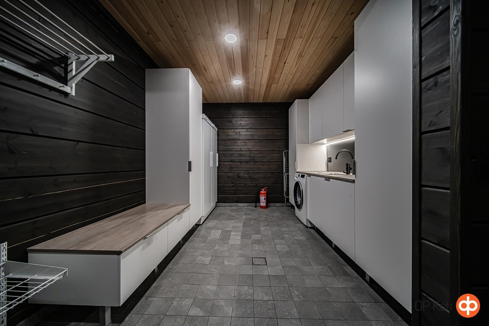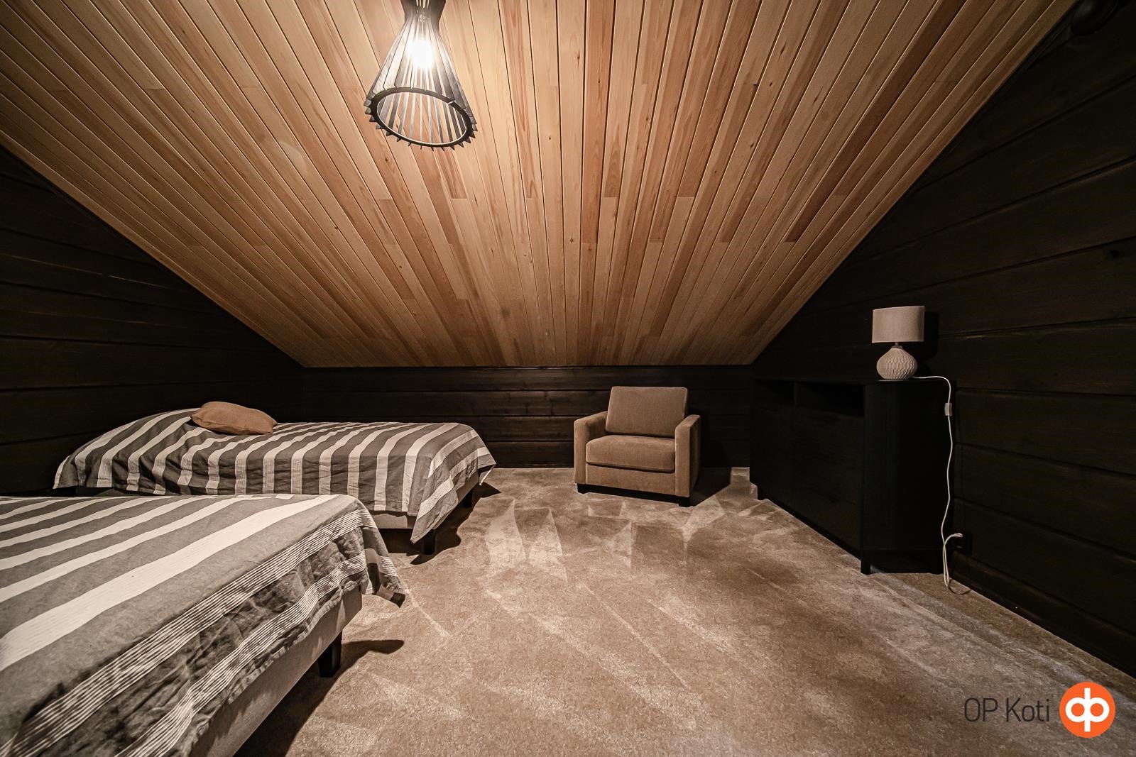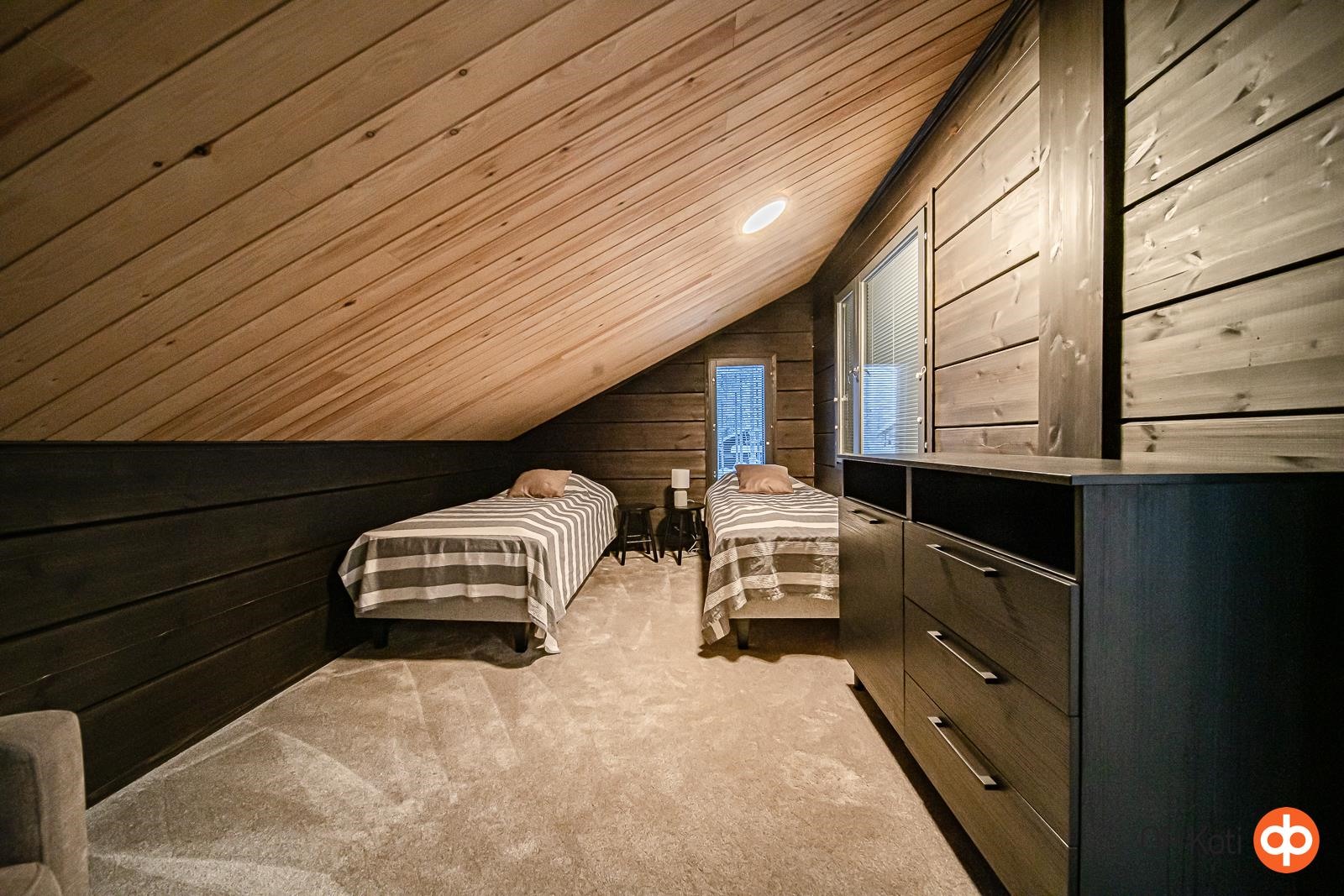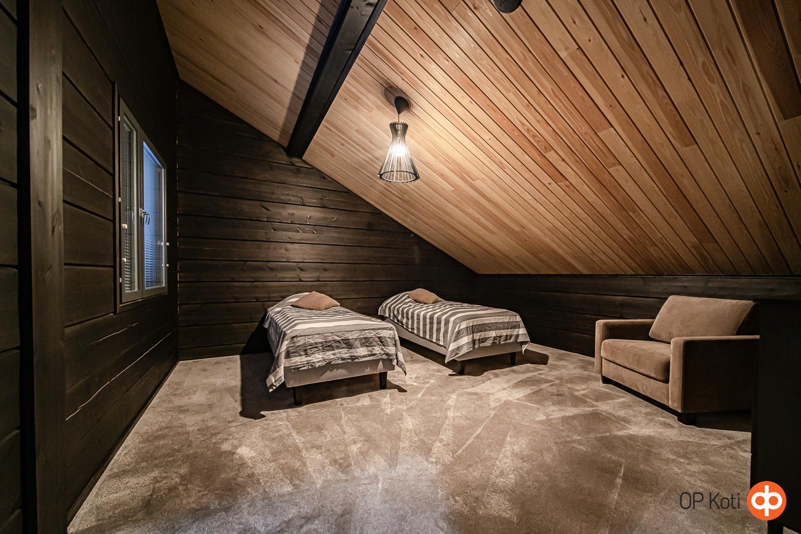Lapin lumoavassa maisemassa sijaitseva vapaa-ajan koti tarjoaa täydelliset puitteet rentouttavalle lomailulle. Neljä makuuhuonetta jakautuvat kahteen kerrokseen, ja molemmissa kerroksissa on myös erillinen wc. Alakerran ilmava olohuone tulisijoineen avautuu suurien ikkunoiden kautta rauhoittavaan metsämaisemaan. Avara oleskelutila jatkuu saarekkeella varustettuun keittiöön ja ruokailutilaan, jossa ruokapöydän äärellä on tilaa suuremmallekin porukalle. Hyvin varusteltu kodinhoitohuone kaapistoineen ja kahden kuivauskaapin kera tekee vaatehuollosta vaivatonta. Kylpyhuoneessa on kaksi suihkua, ja saunassa on tilaa useammalle löylyttelijälle. Alakerran terassilla odottaa poreallas, jossa voi nauttia kylpemisestä tähtitaivaan alla.