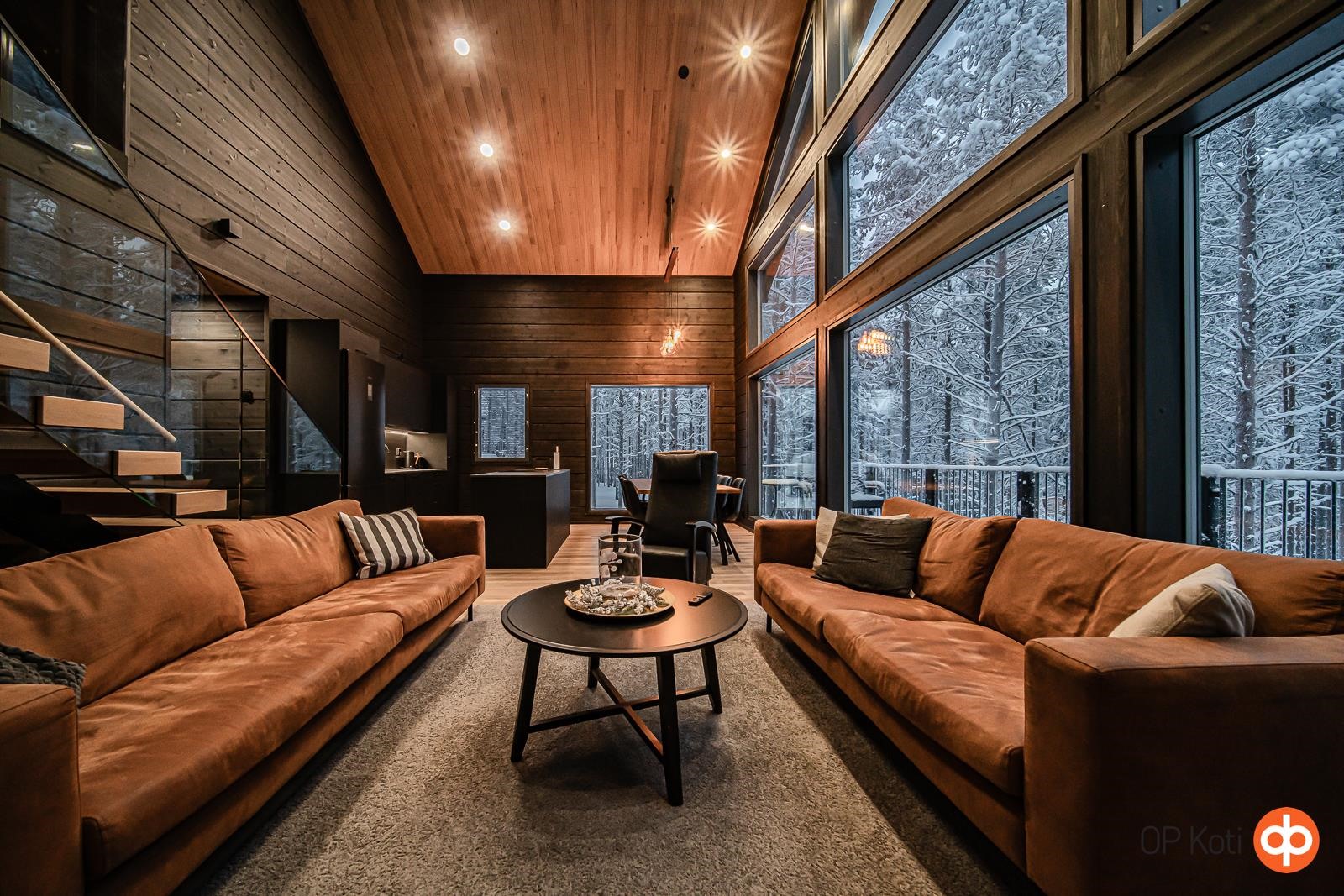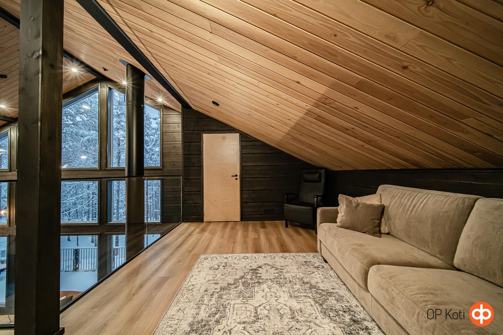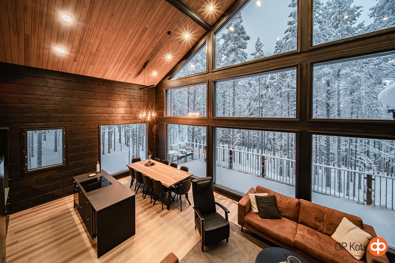 Korkeatasoinen huvila Levin länsirinteiden tuntumassa. Neljä makuuhuonetta, avara olohuone ja ulkoporeallas kutsuvat rentoutumaan.