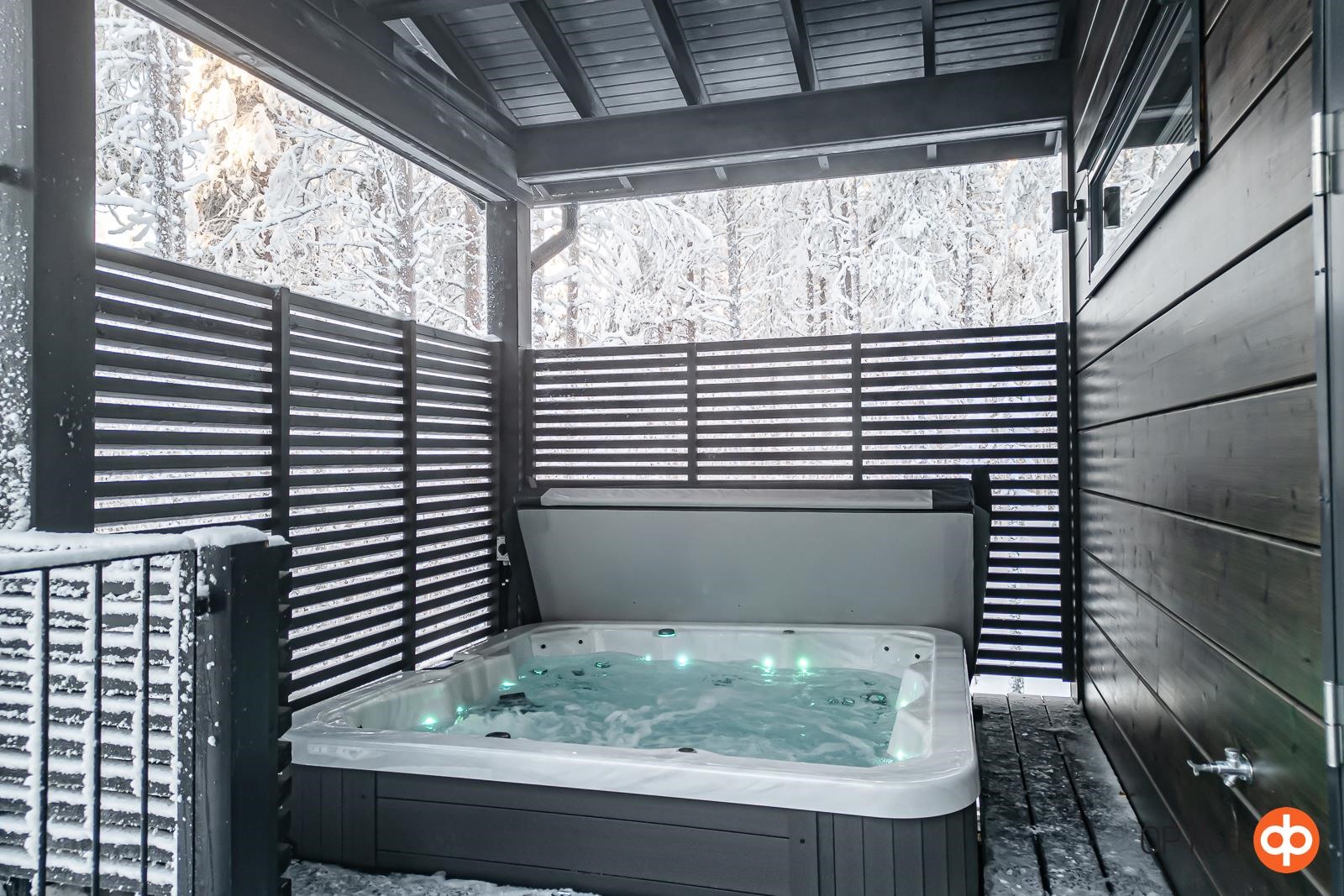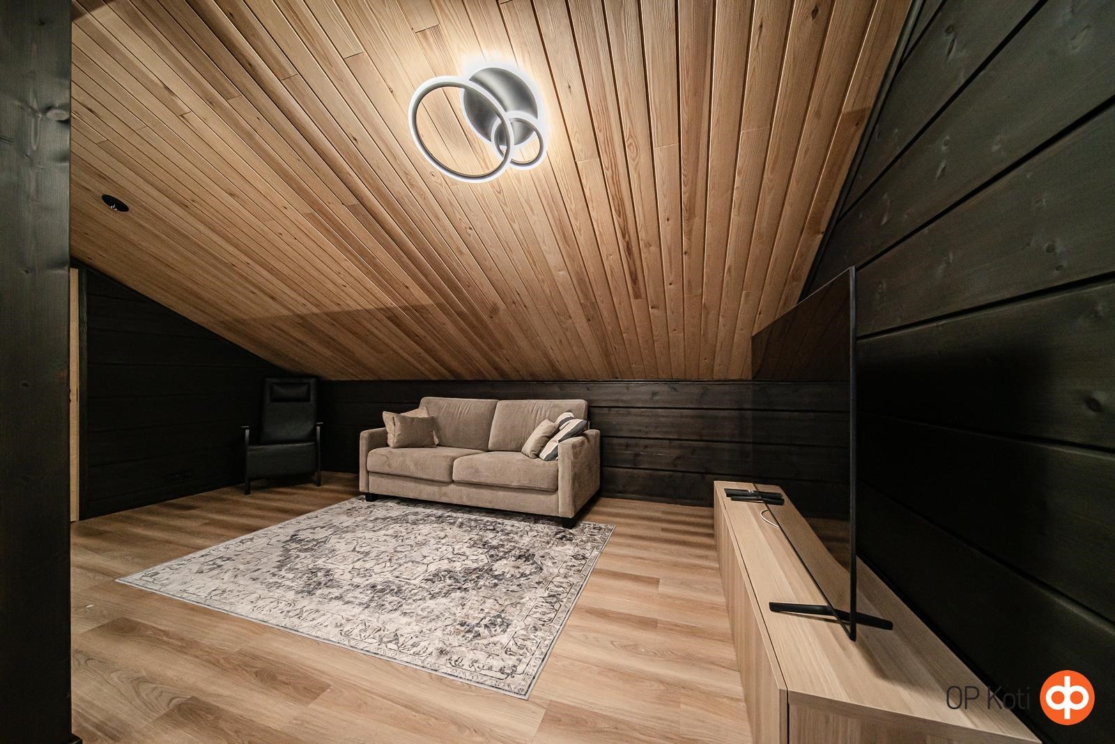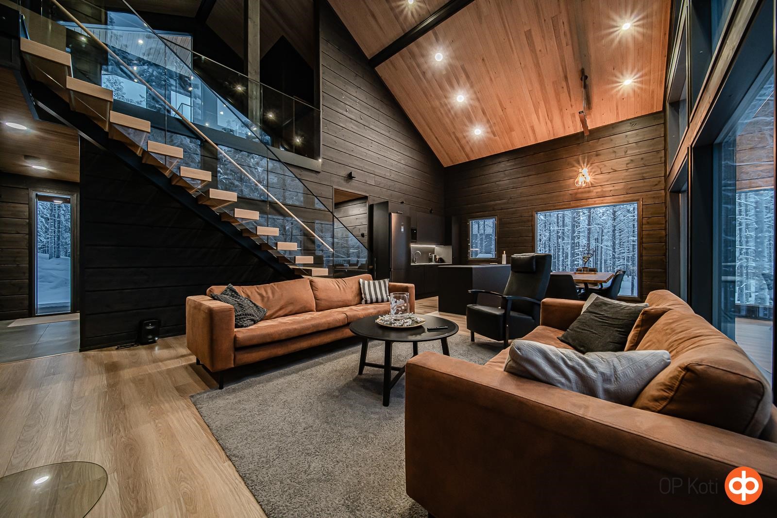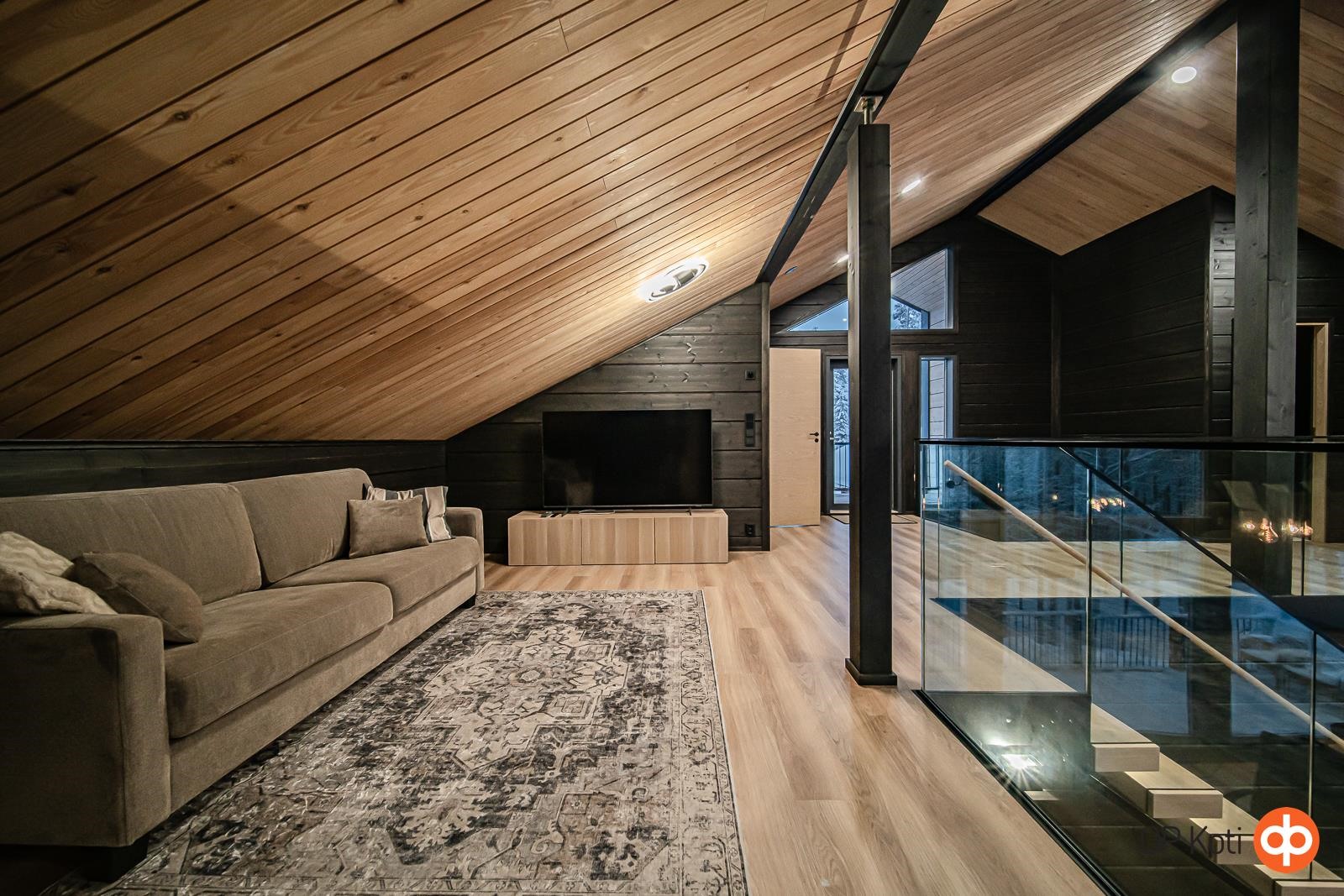 Korkeatasoinen huvila Levin länsirinteiden tuntumassa. Neljä makuuhuonetta, avara olohuone ja ulkoporeallas kutsuvat rentoutumaan.