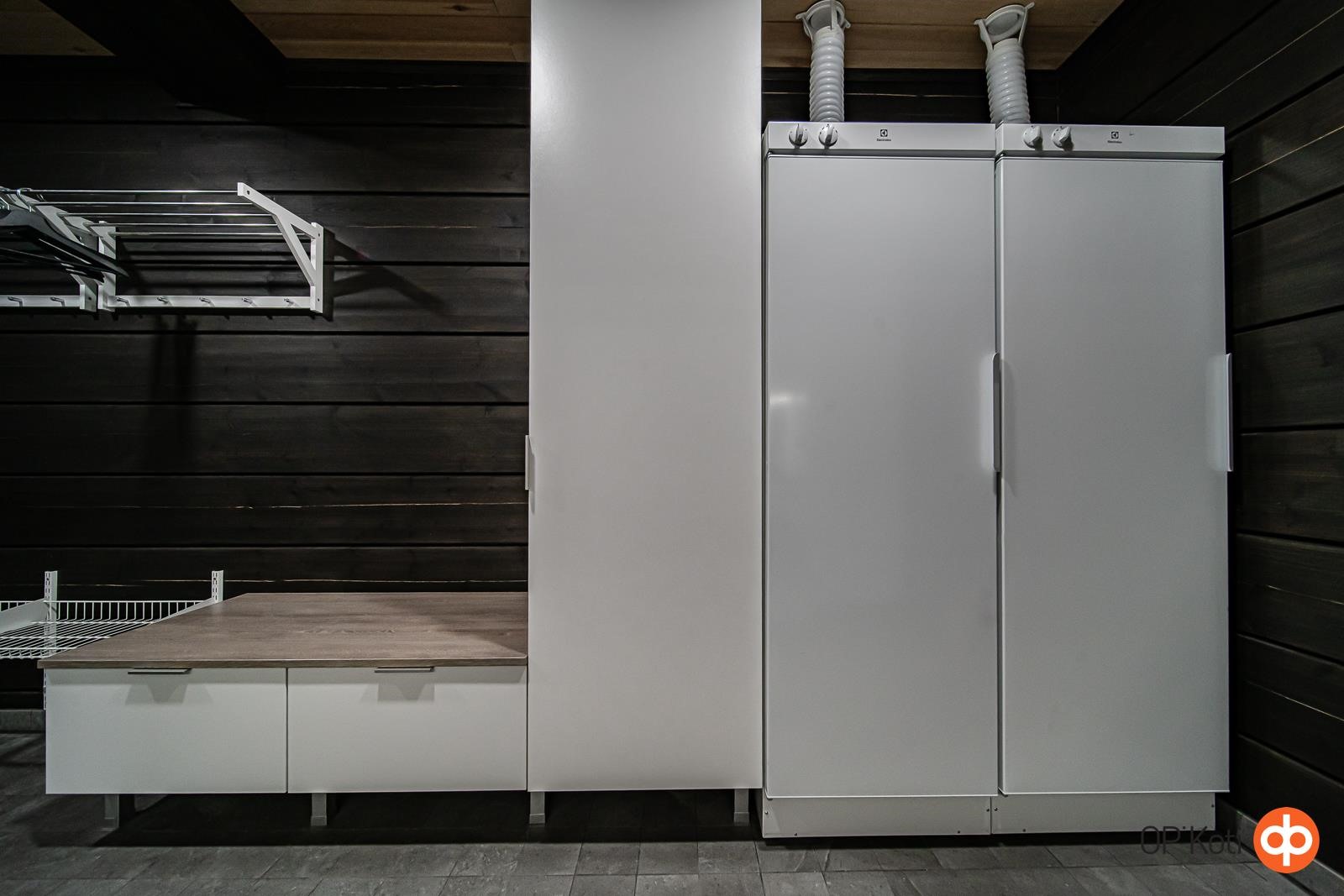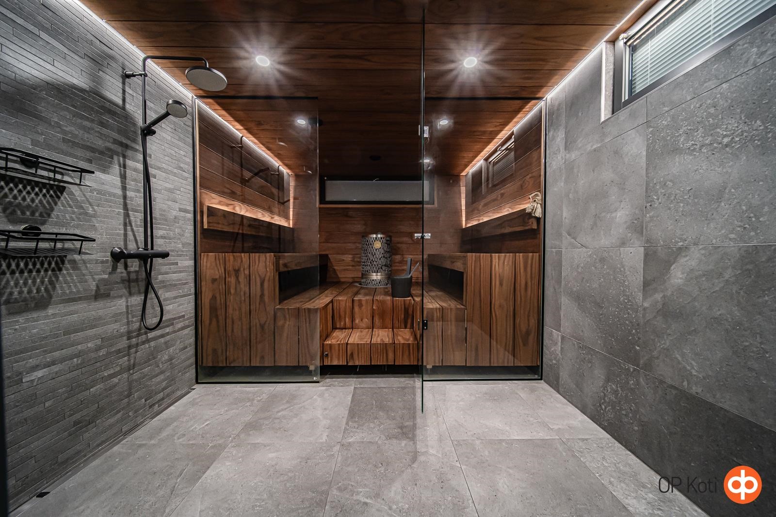 - Sauna, sähkökiuas, kylpyhuone, erillinen wc (2 kpl), suihku (2 kpl), peilit, peilikaappi, kaapit, allaskaappi, pesukoneliitäntä, lattialämmitys, kiinteät valaisimet.