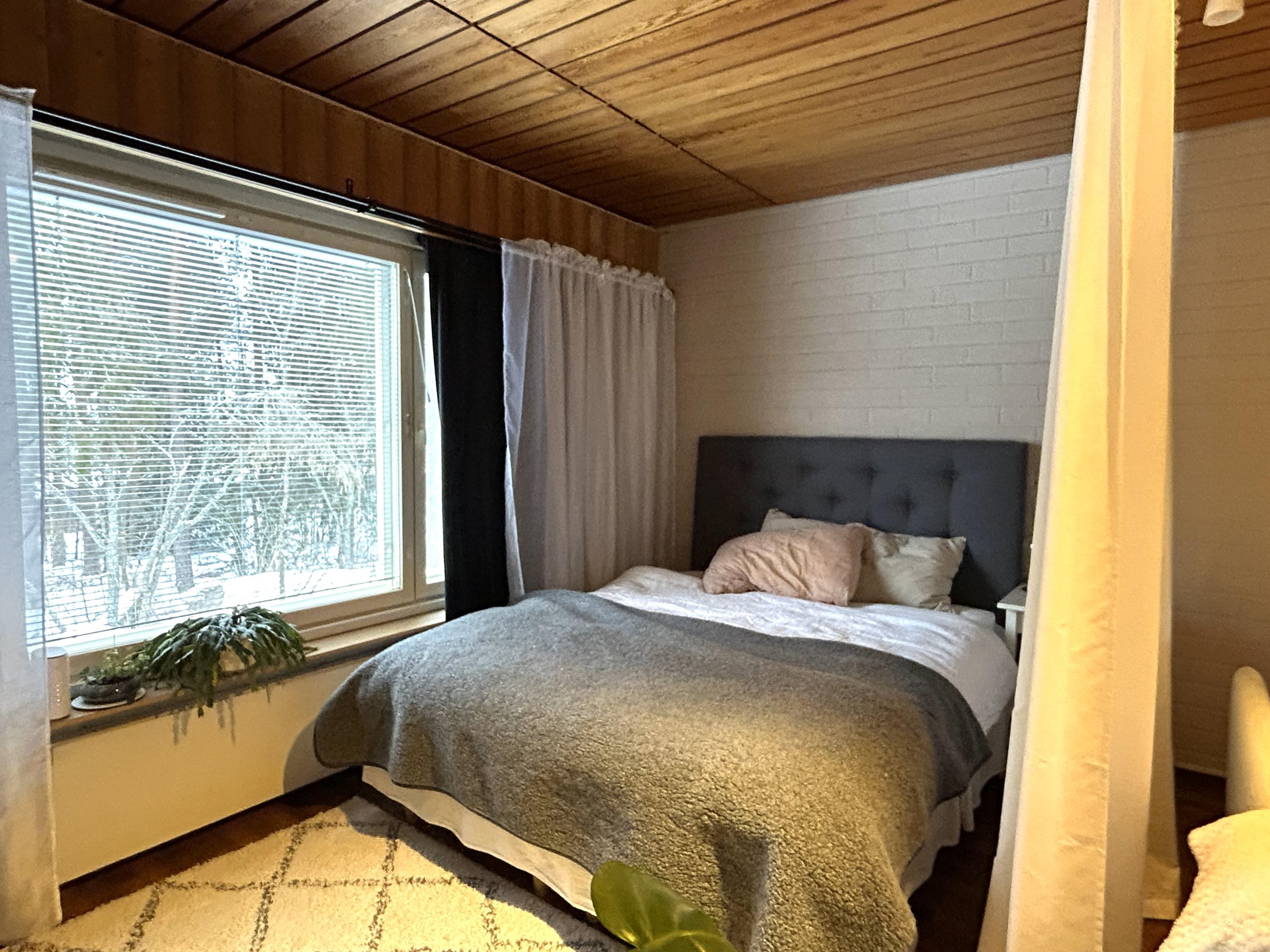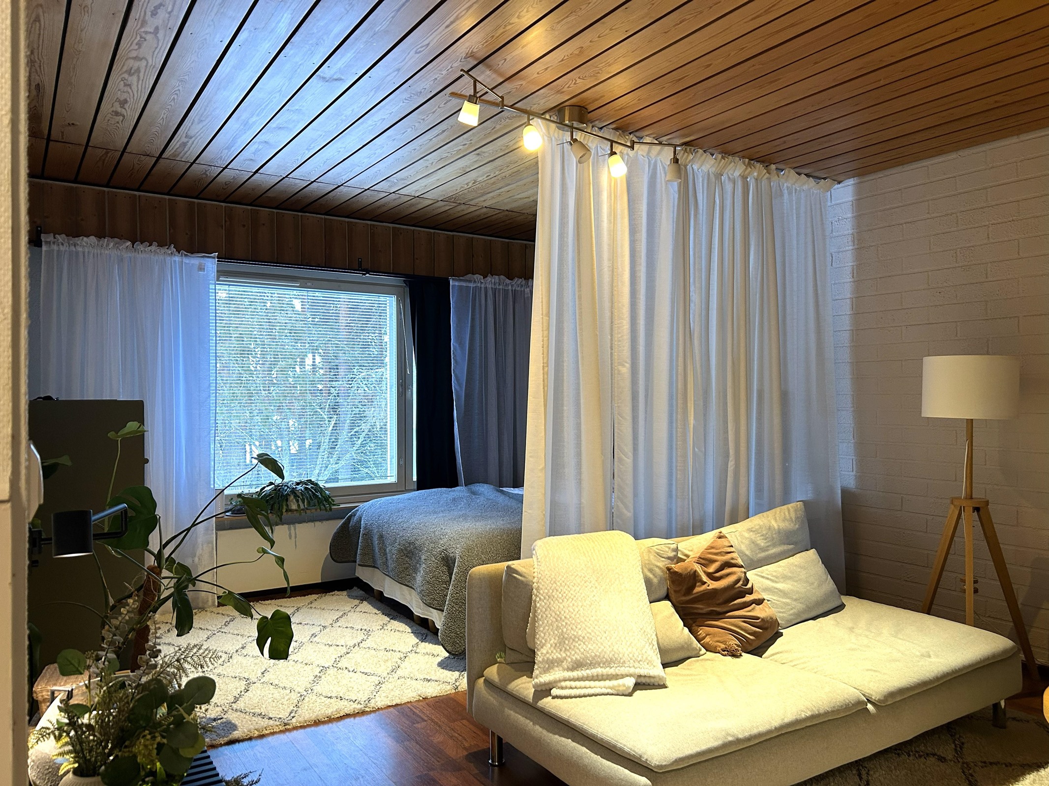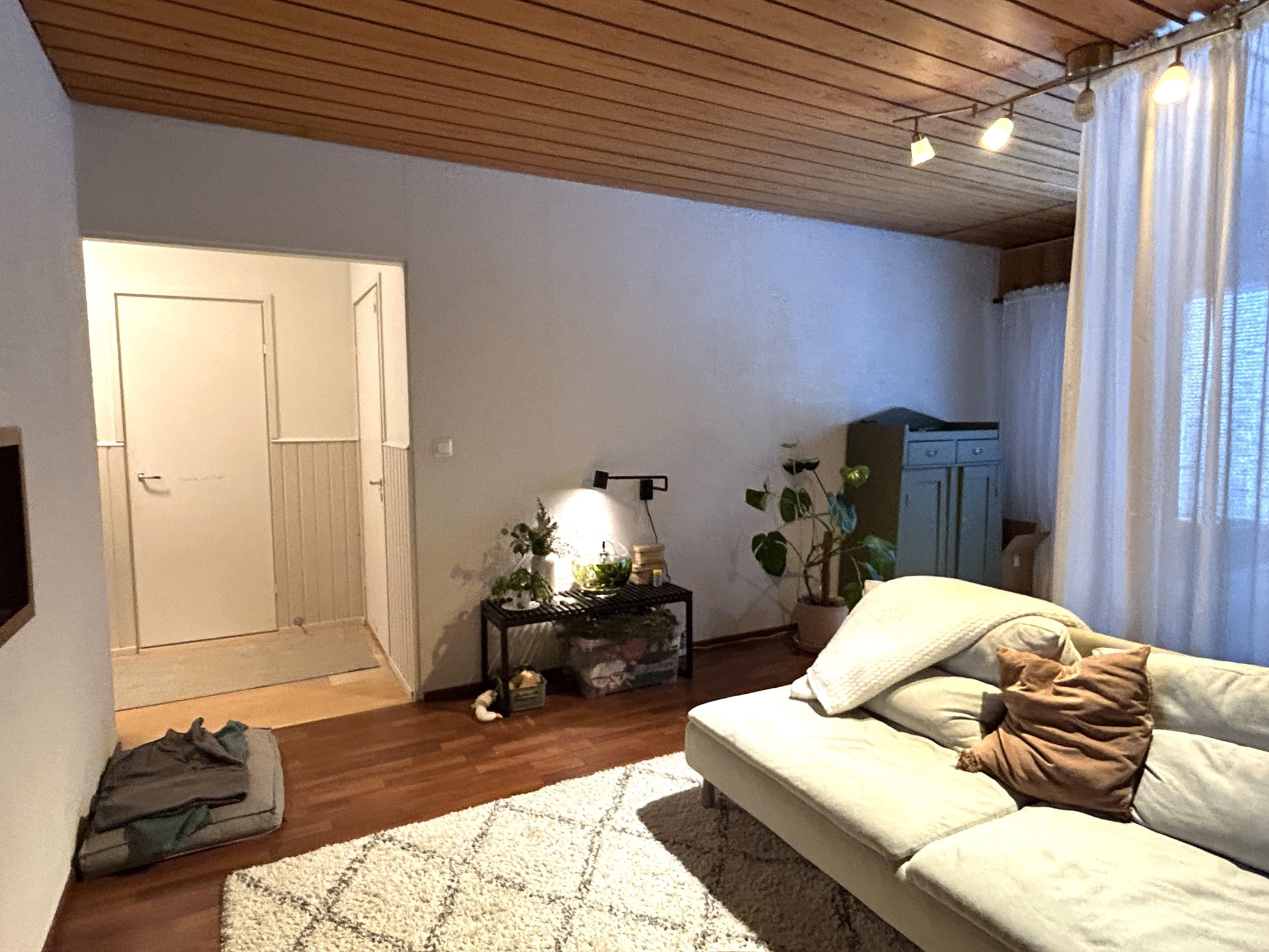 Vuokra 600e/kk, vesi ja sähkö kulutuksen mukaan. Vesiennakko 15e/hlö/kk, sähköennakko 15e/kk. Mittarit tasataan kerran vuodessa.