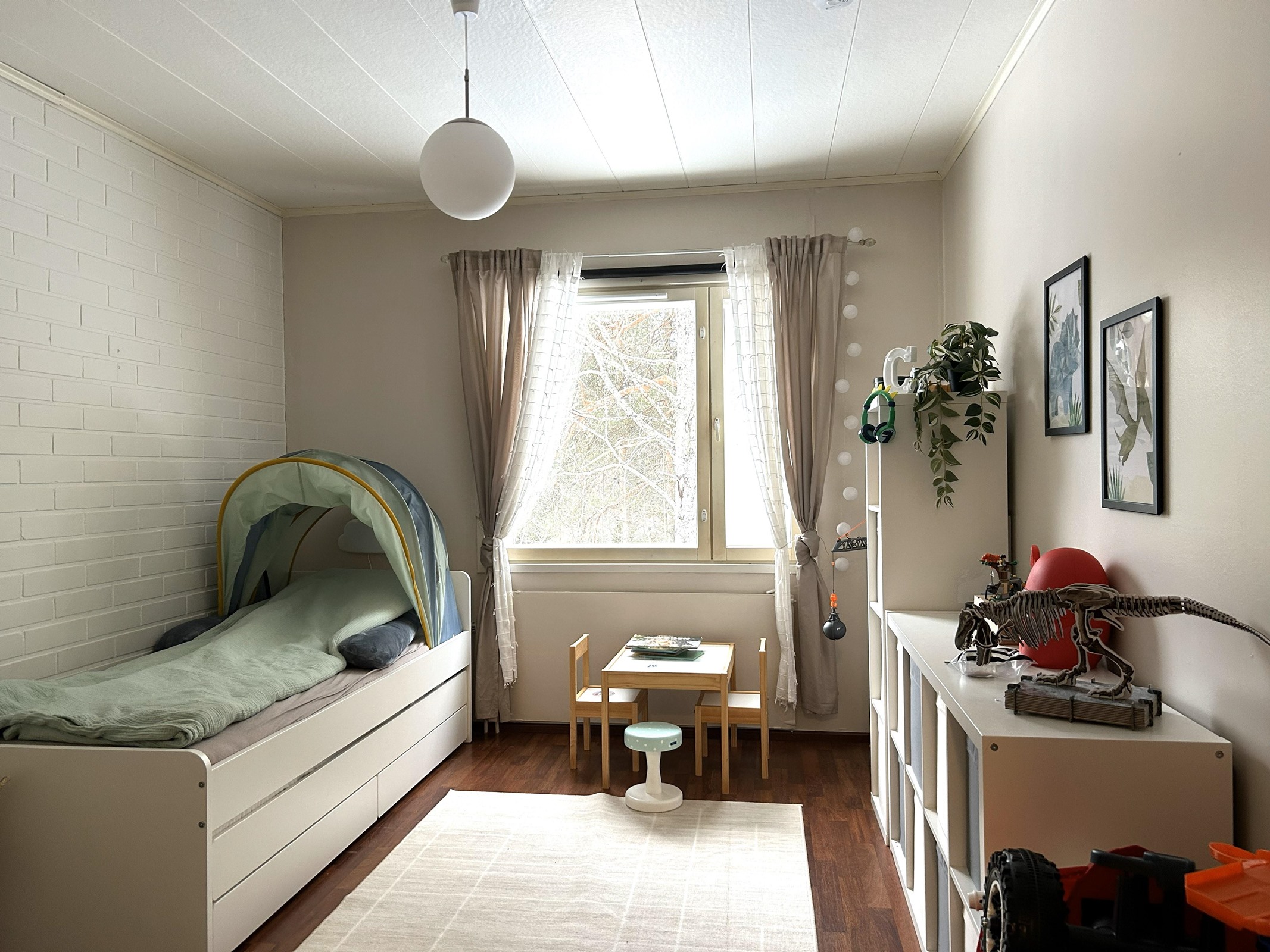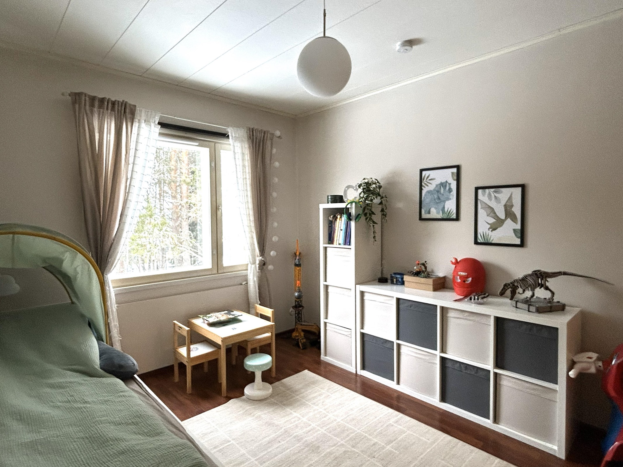 OH: Seinät tapetti, laminaattilattia. MH: Seinät tapetti, laminaattilattia. KEITTIÖ: Seinät lasikuitutapetti / maali, laminaattilattia. KPH: Kauttaaltaan kaakeloitu.