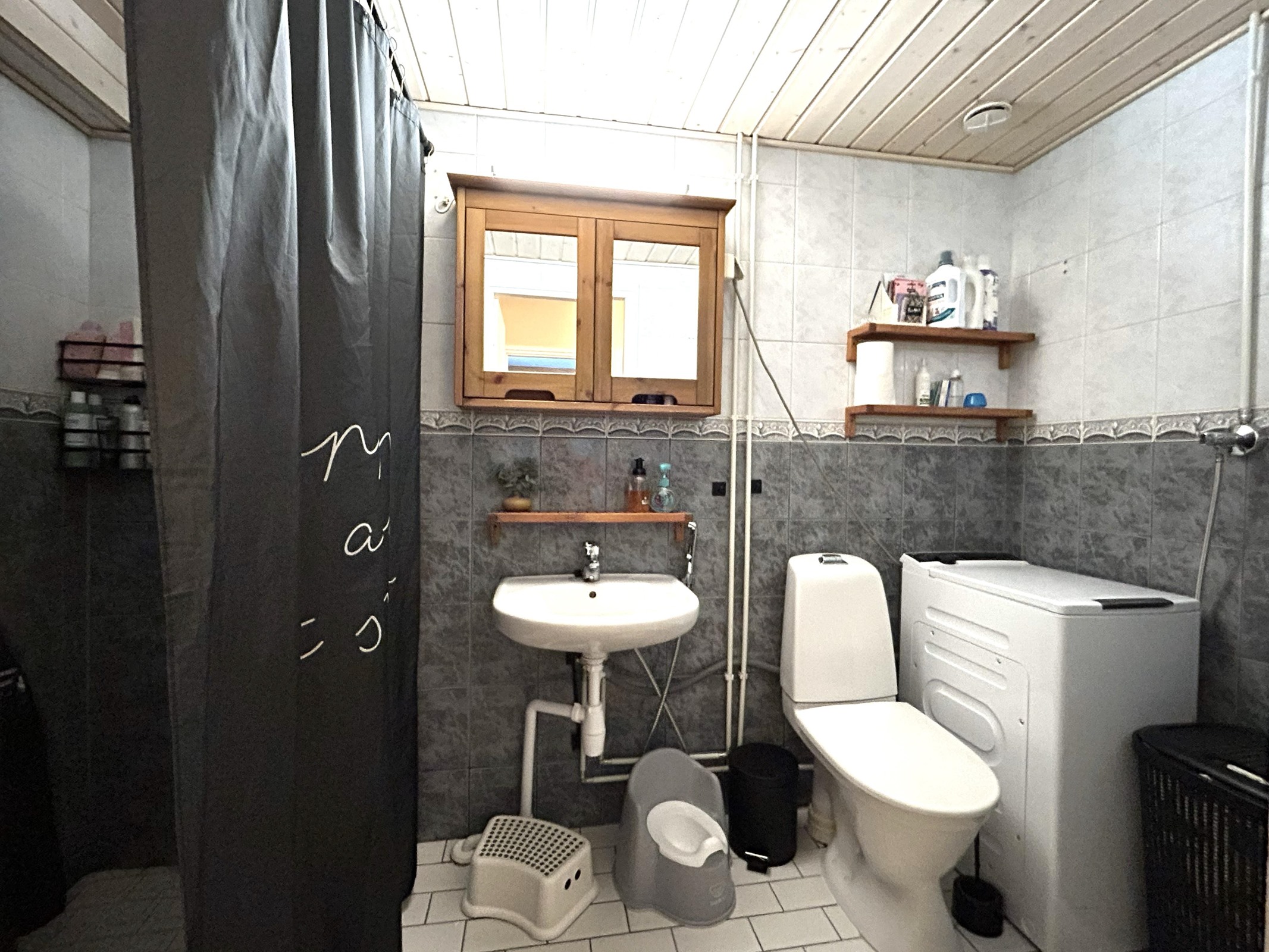 - Kylpyhuone, suihku, pesukoneliitäntä, kiinteät valaisimet.