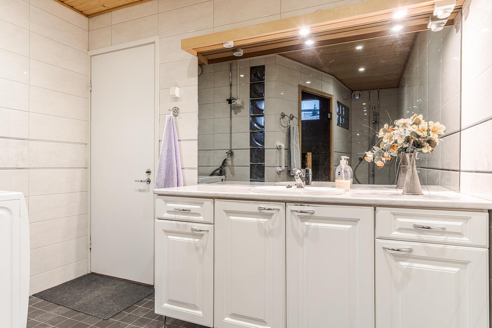 - Sauna, puukiuas, kylpyhuone, erillinen wc, suihku, peilit, allaskaappi, pesukoneliitäntä, lattialämmitys, kiinteät valaisimet. s+kph remontoitu v.2010