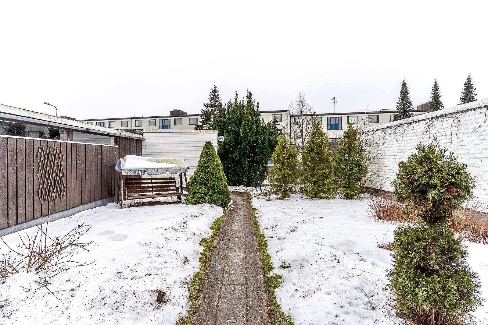 Pihapiirissä on runsaasti tilaa leikeille ja pysäköinti on järjestetty vaivattomasti taloyhtiön pihassa ja omassa autotallissa.