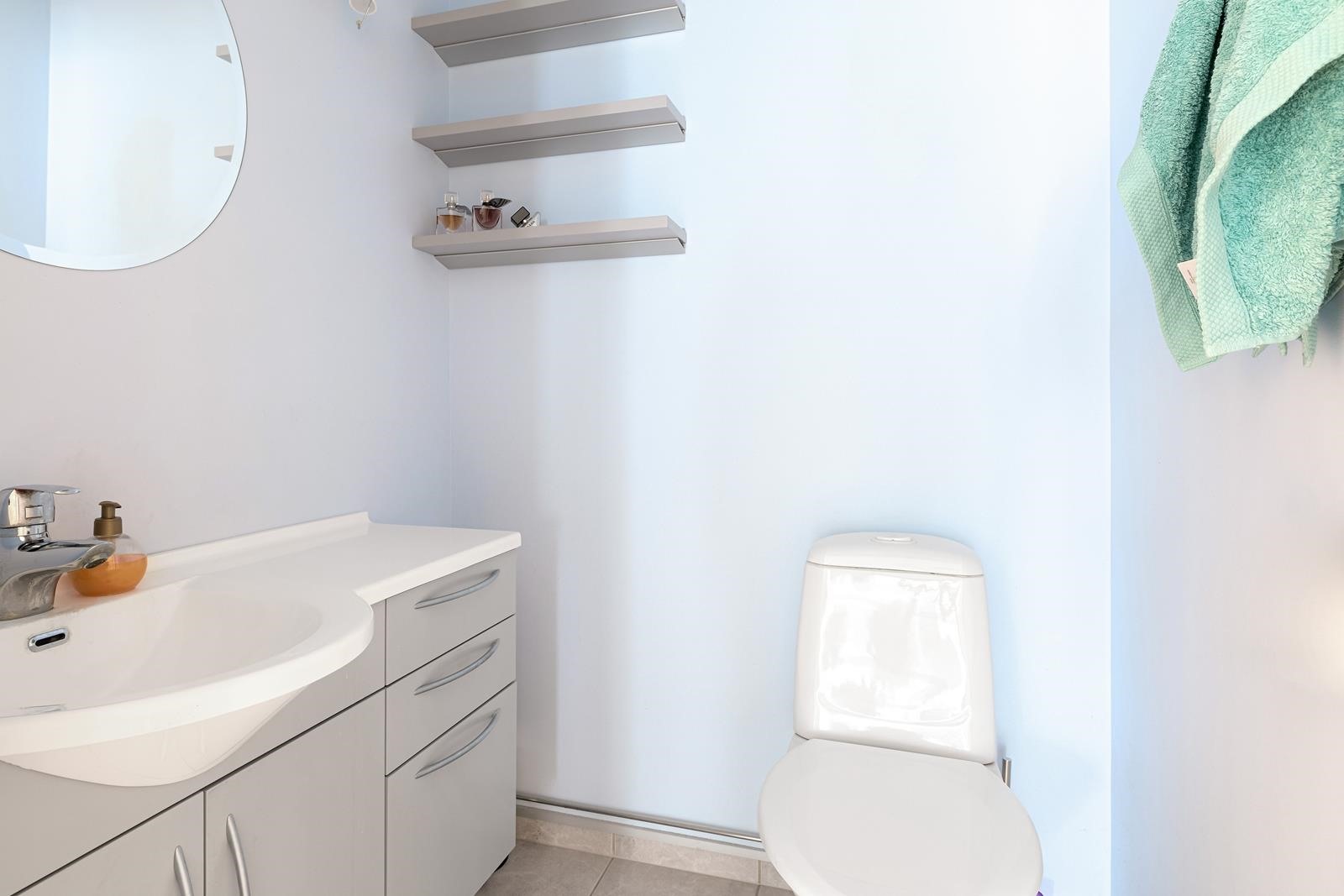 - Sauna, sähkökiuas, kaksi suihkua, pesukoneliitäntä kodinhoitohuoneessa, lattialämmitys, kiinteät valaisimet. Molemmissa kerroksissa wc.