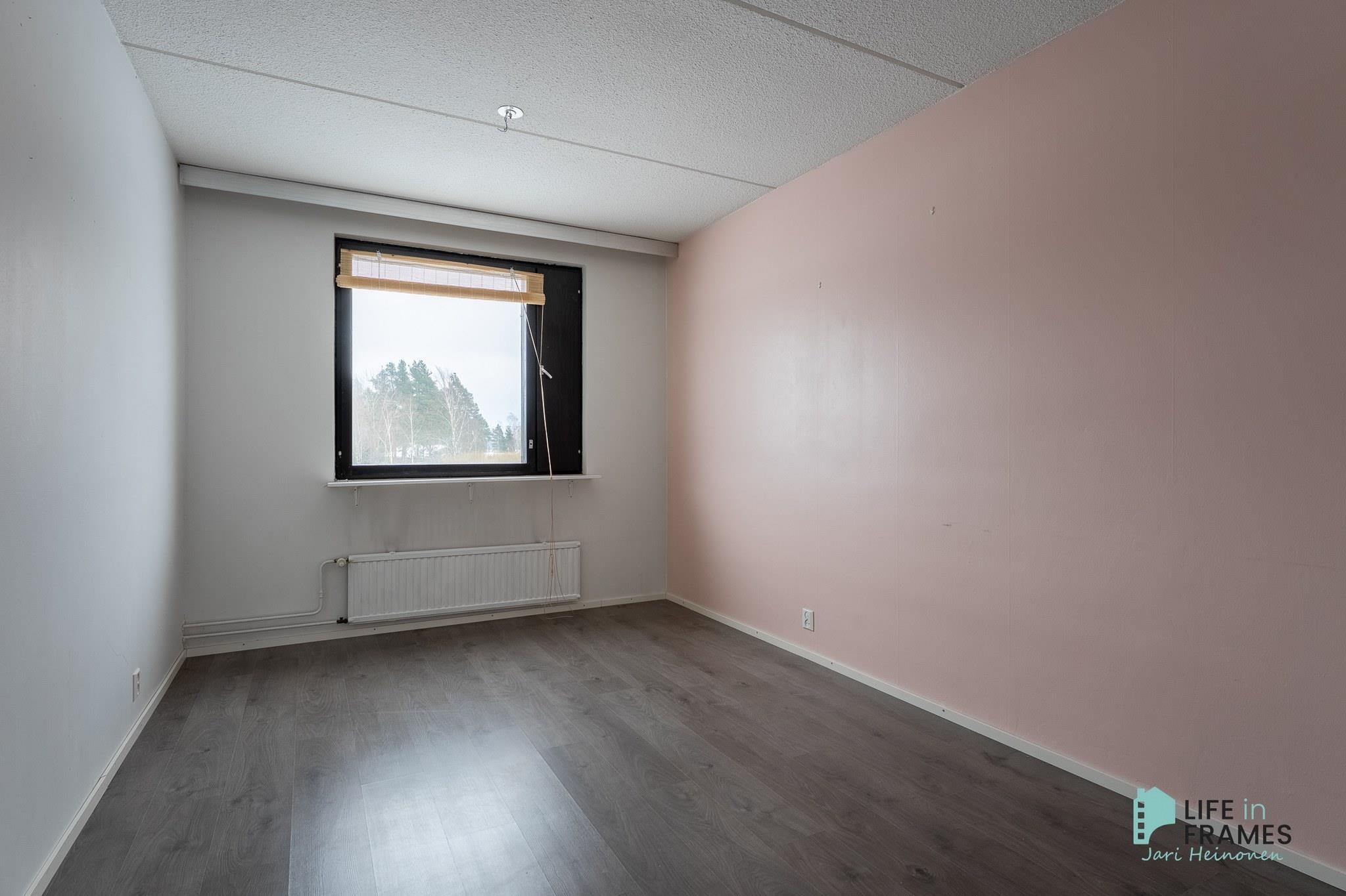Huonetilat: seinät: maali, lattia: laminaatti.