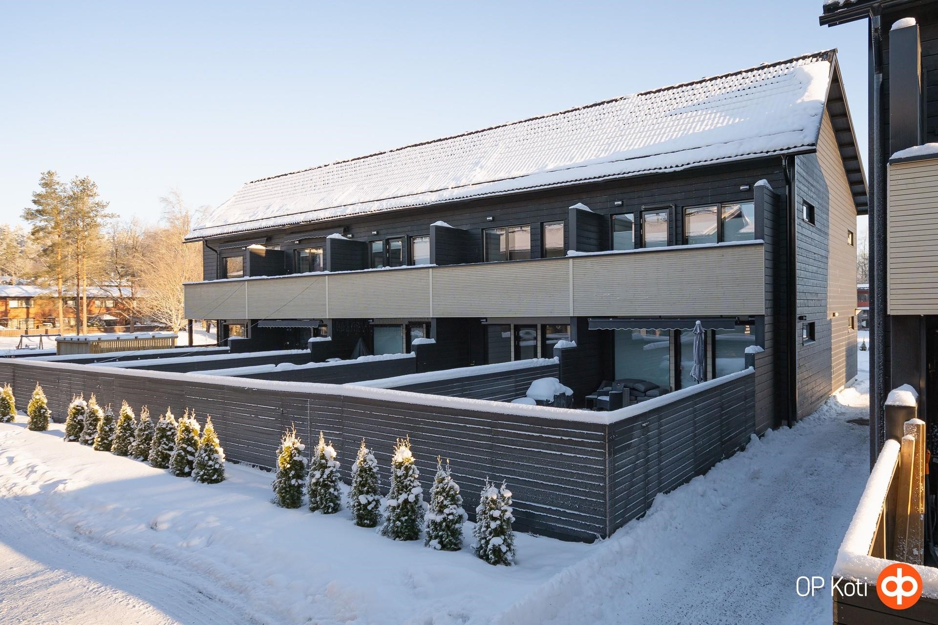 2023 rakennetusta taloyhtiöstä myytävänä uutta vastaava päätyasunto mihin rakennnusvaiheessa on muutostyönä huonejakoa muutettu siten että makuuhuoneita on 4-5 oman käyttötarpeen mukaan. Huoneistossa on kaikkialla lattialämmitys kaukolämmöllä ja kesähelteillä viilennys hoituu kahdella ilmalämpöpumpulla. Autokatospaikka myydään erillisenä osakkeena 7500 €. Hintaan sisältyy 11 kW latausasema.