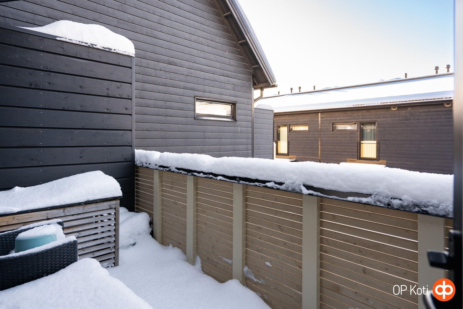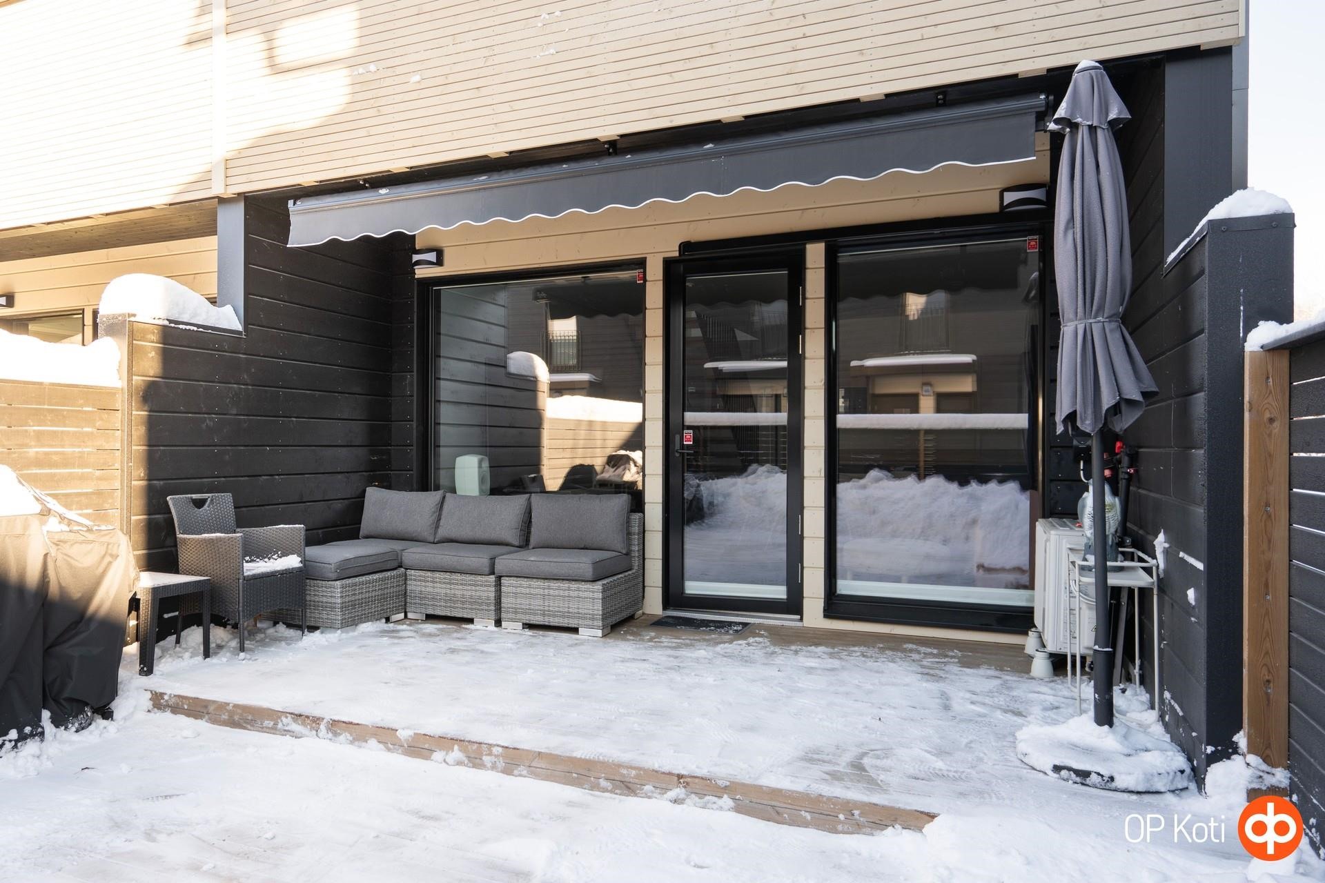 2025 1-vuotistarkastusta varten ennakkotarkastus huoneistojen sisäpuolelta. Asunnon remontit: Lautaterassi 4,5 m x 5 m. Markiisille ja yläkerran ilmalämpöpumpulle haettu taloyhtiön lupa. Alakerran markiisin asennuksen yhteydessä haettu lupa myös yläkerran markiisin asennukselle. Ostaja vastaa asennuksesta.