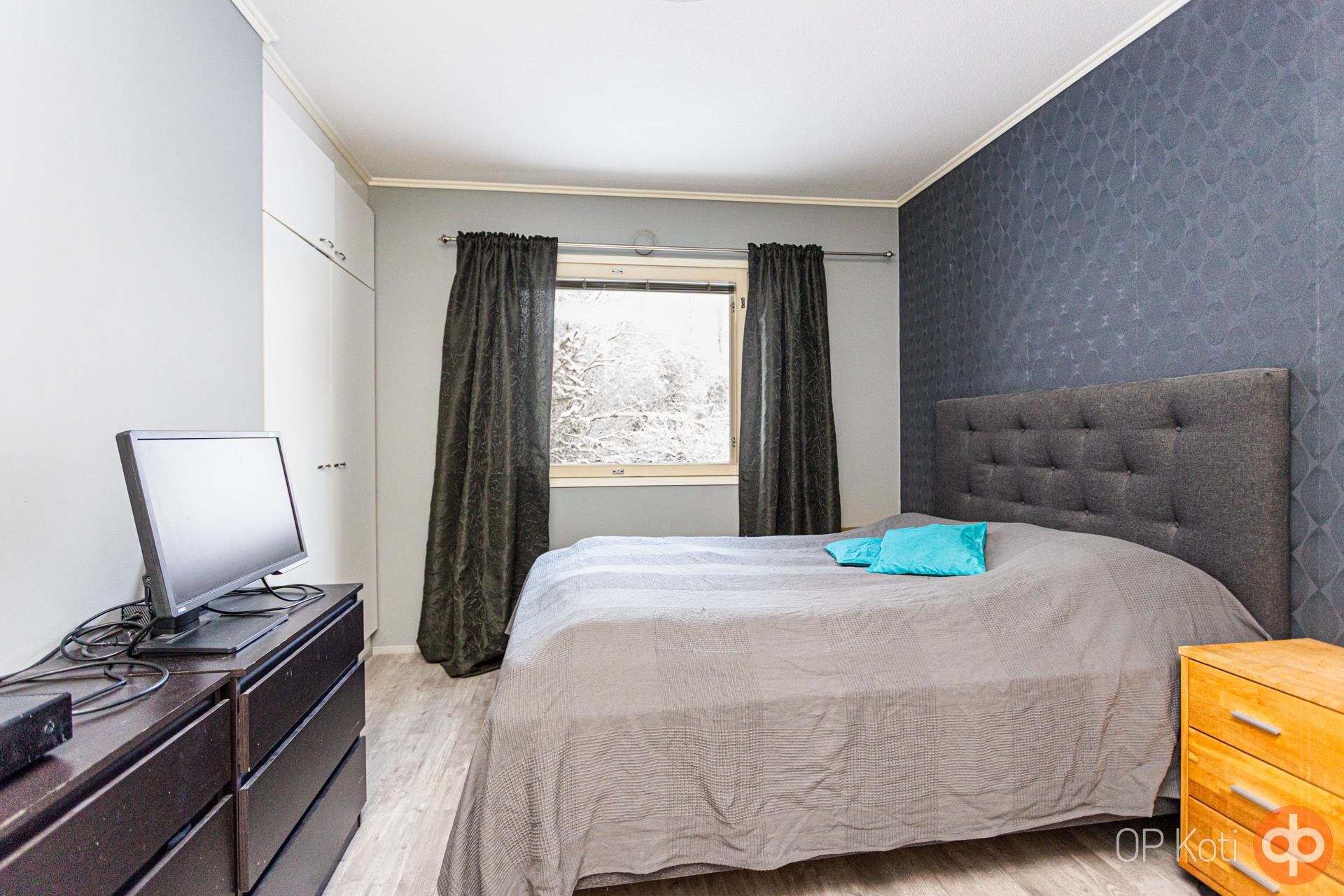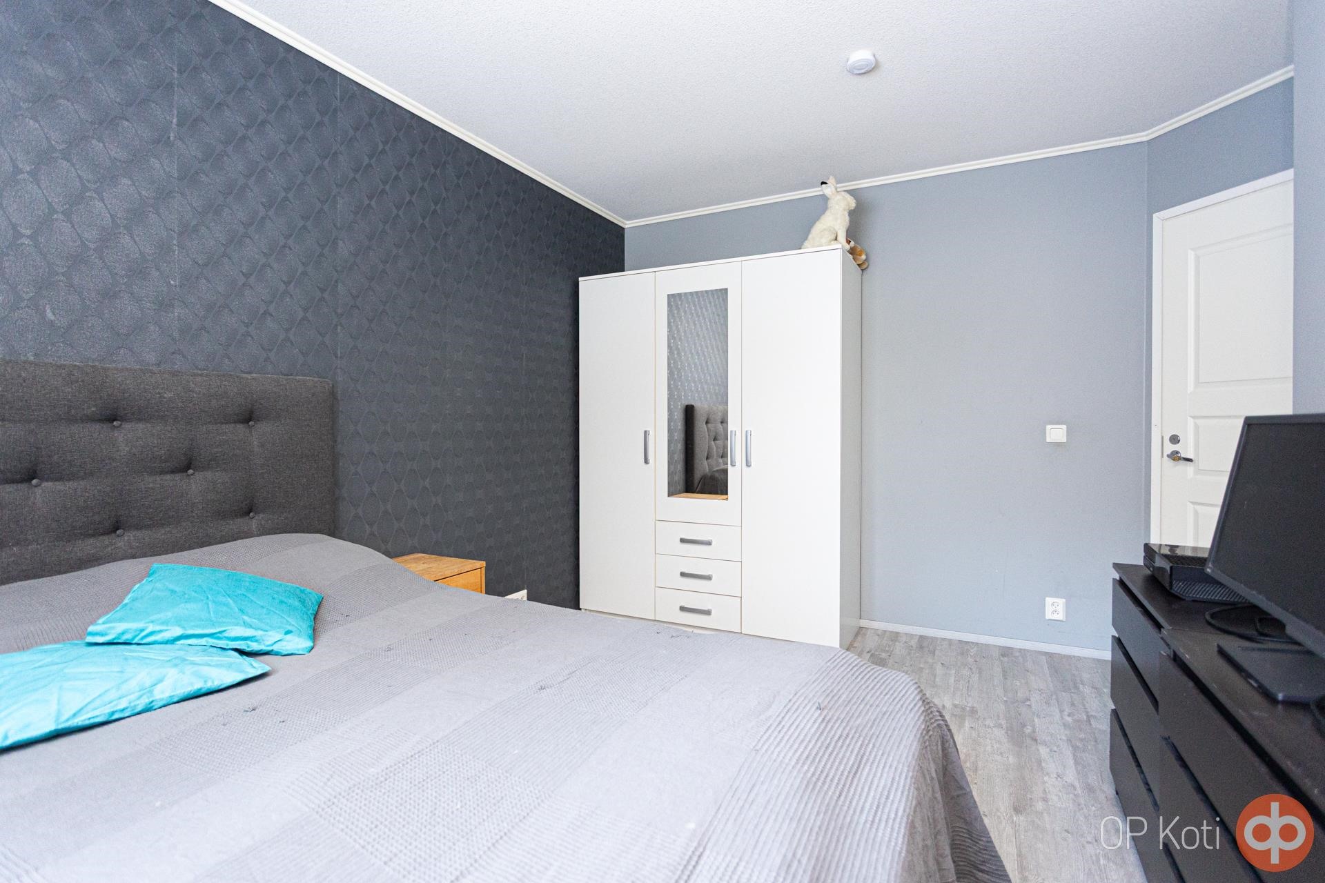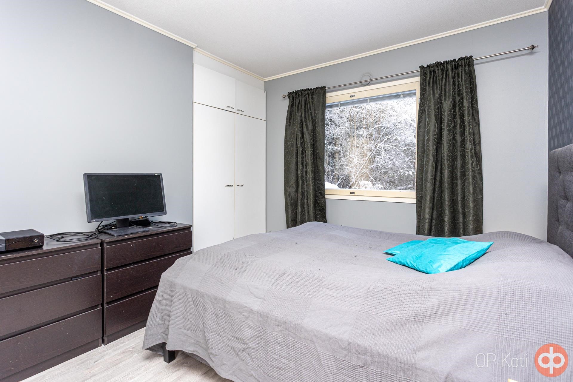 Makuuhuoneessa on siistit säilytystilat ja lisäksi erillinen vaatehuone tuo käytännöllisyyttä. Kylpyhuone on siistikuntoinen ja oma sauna sähkökiukaalla kruunaa asumismukavuuden - nauti löylyistä juuri silloin, kun sinulle sopii. Takapihan ulkoterassin suunta on länteen niin siinä on mukava kesällä, vaikka auringossa grillata. Ilmalämpöpumppu lisää energiatehokkuutta ja asumismukavuutta ympäri vuoden.