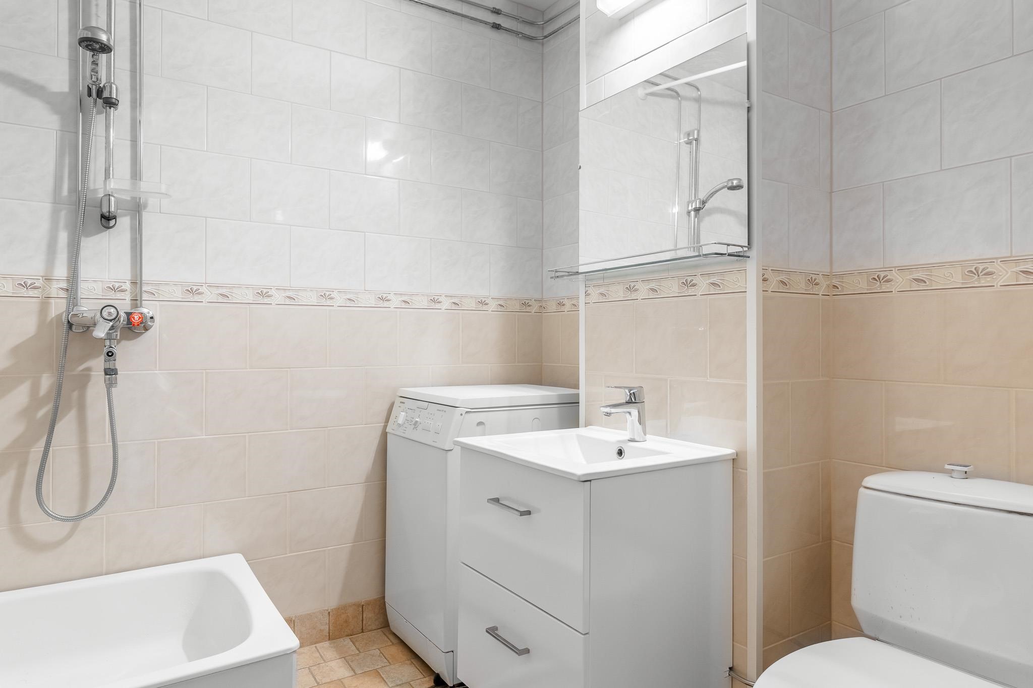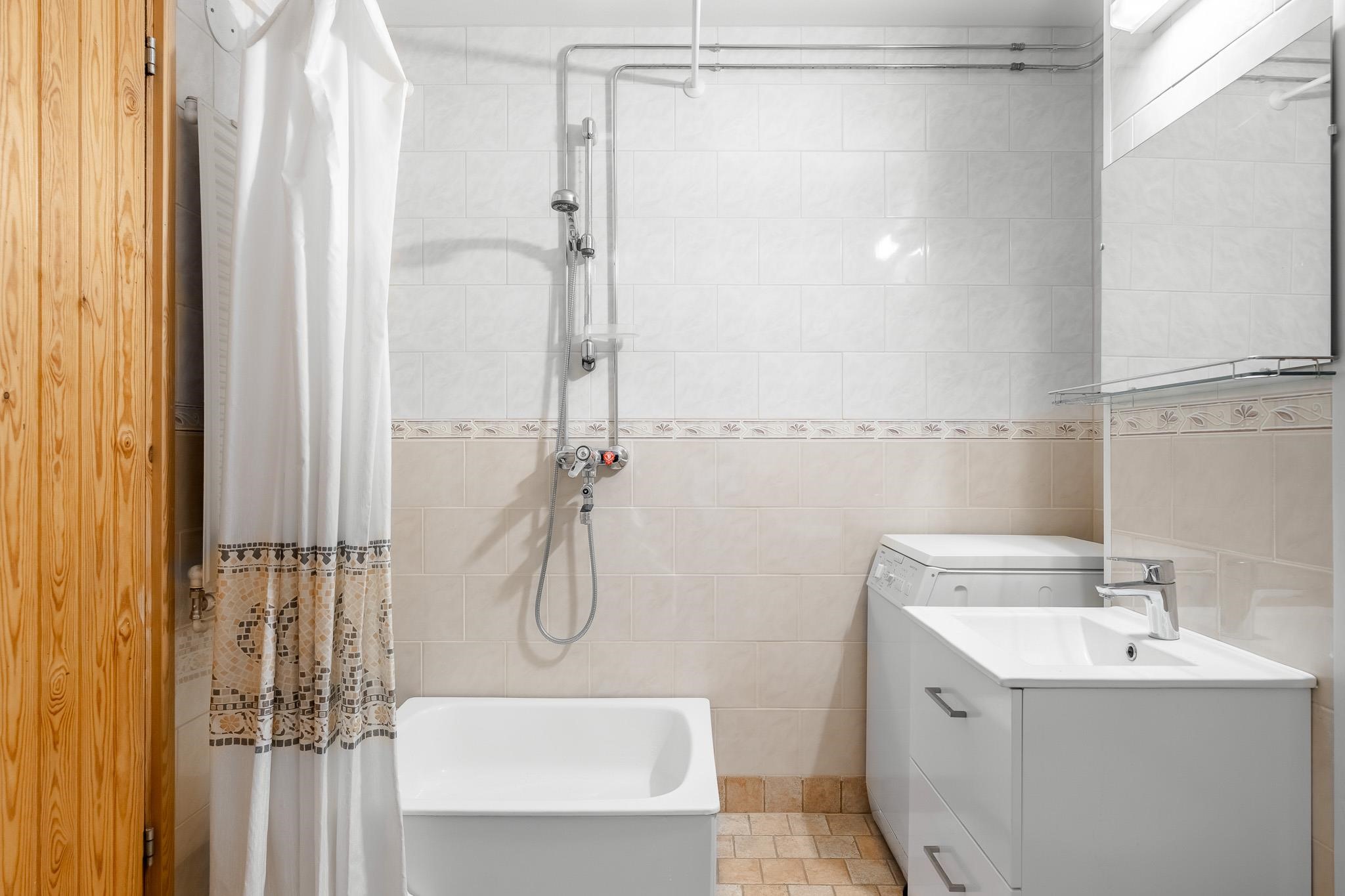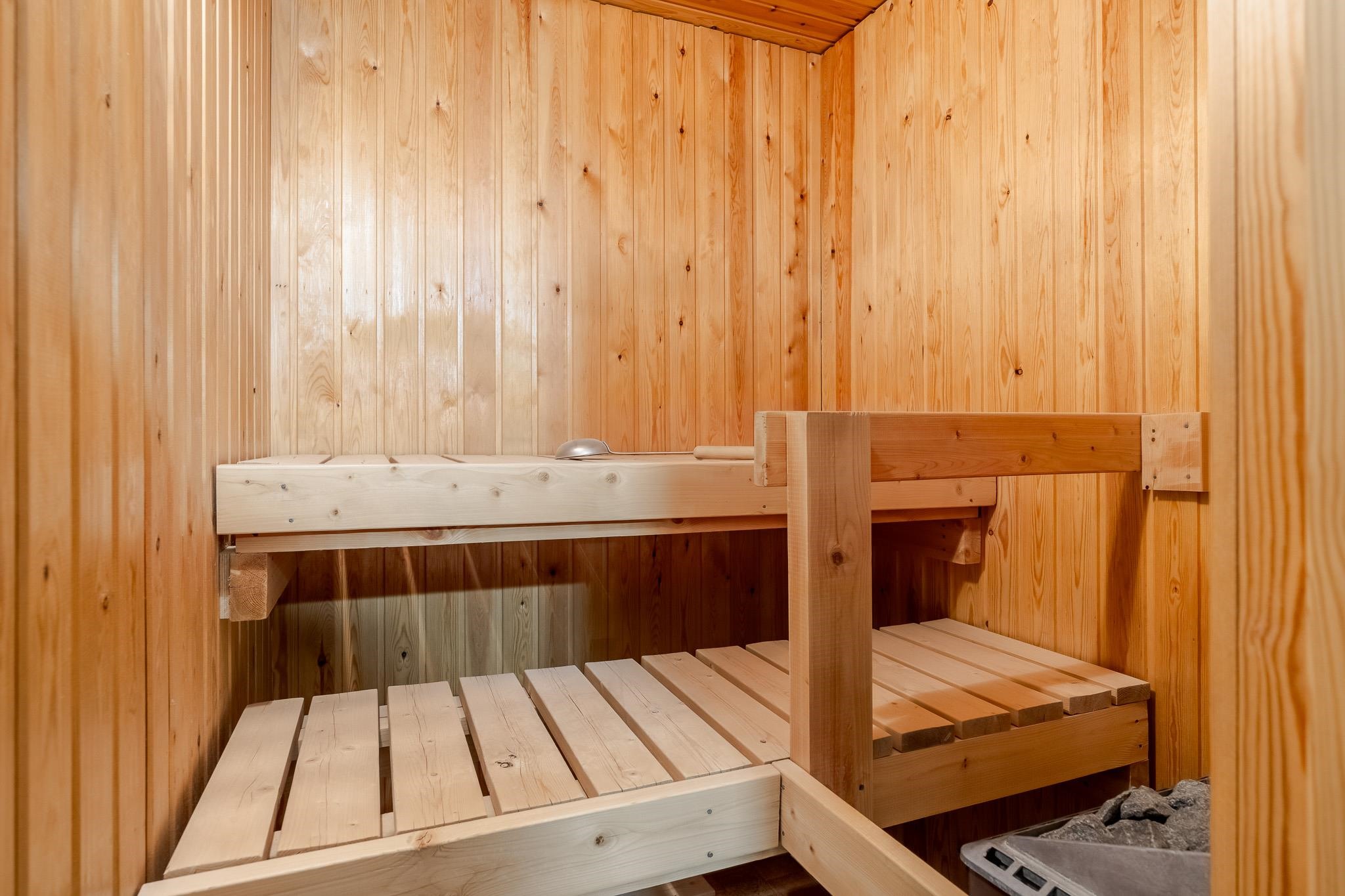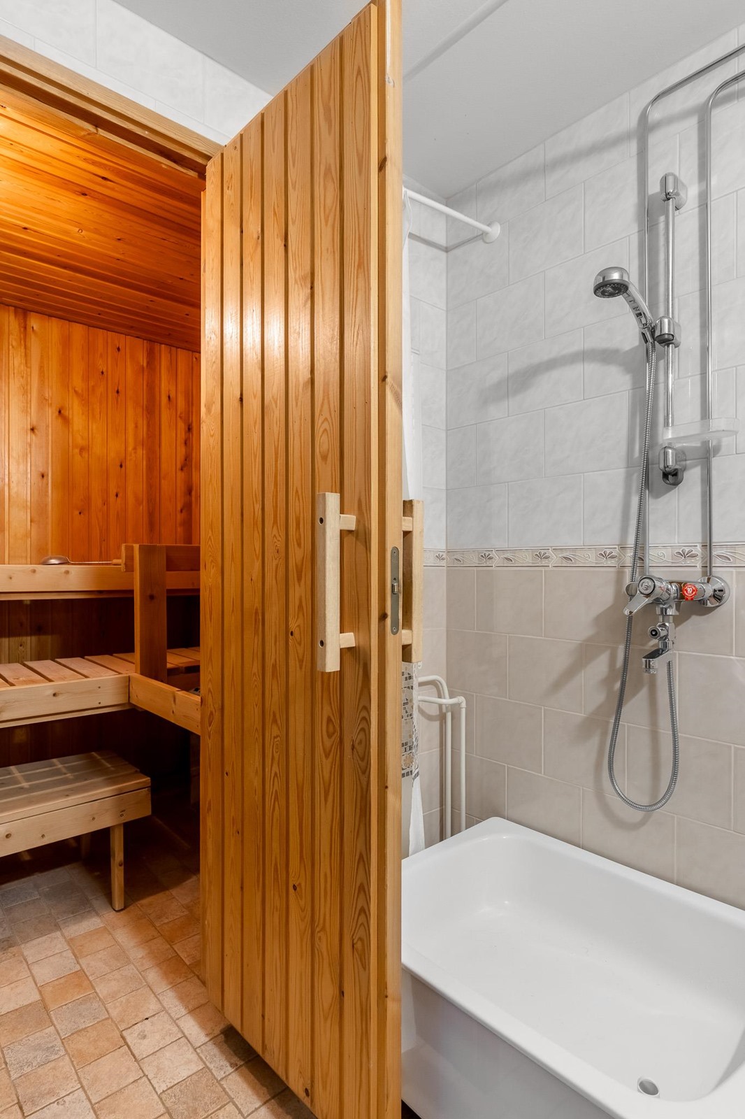 - Sauna, sähkökiuas, kylpyhuone, suihku, peilit, allaskaappi, pesukoneliitäntä, kiinteät valaisimet.