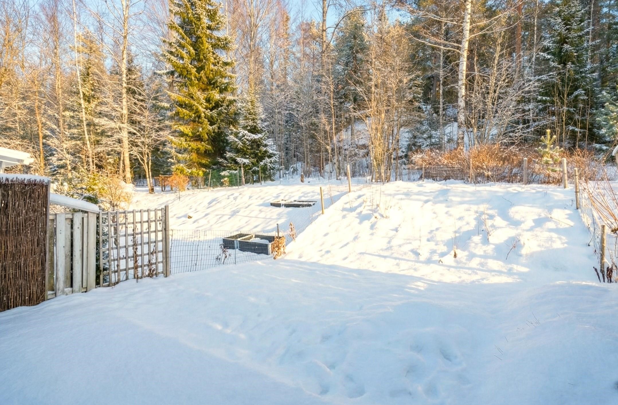 Olohuoneesta on käynti etelänsuuntaiselle, suojaisalle takapihalle, joka rajautuu metsään. Täällä nautit rauhasta, luonnon läheisyydestä ja auringosta vaikkapa aamukahvin merkeissä.