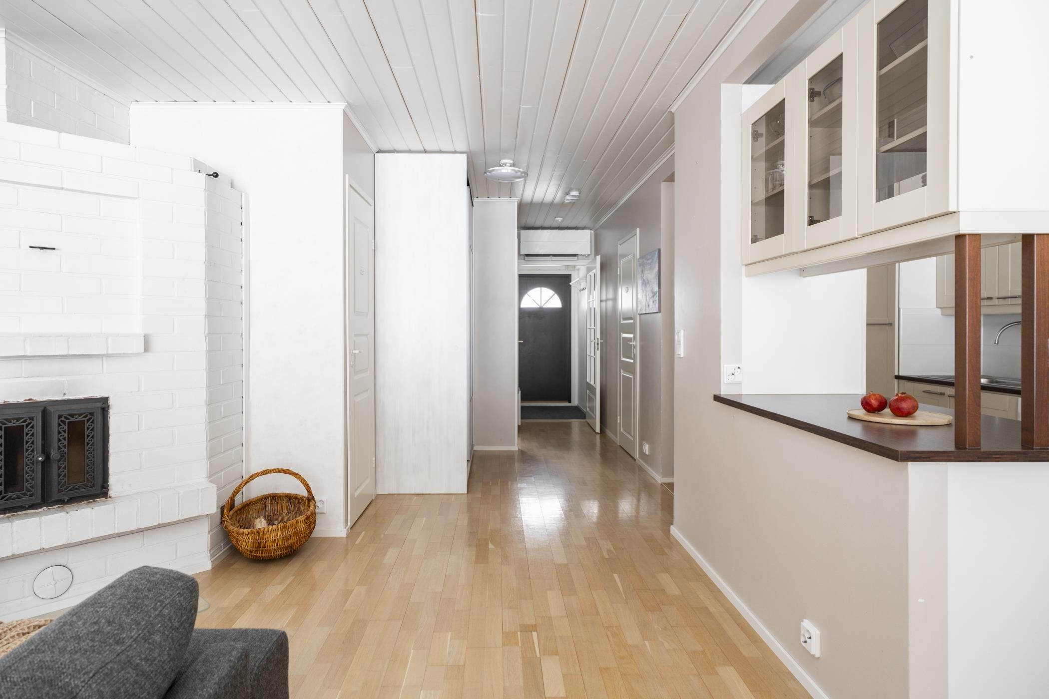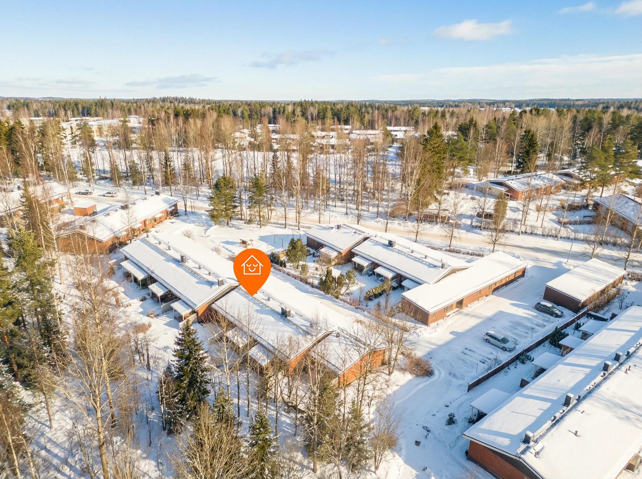 Arjen mukavuutta lisäävät oma sauna, tilava kodinhoitotila, vaatehuone sekä erillinen wc. Sähkölämmityksen tukena toimii tunnelmaa ja lisälämpöä tuova takka.