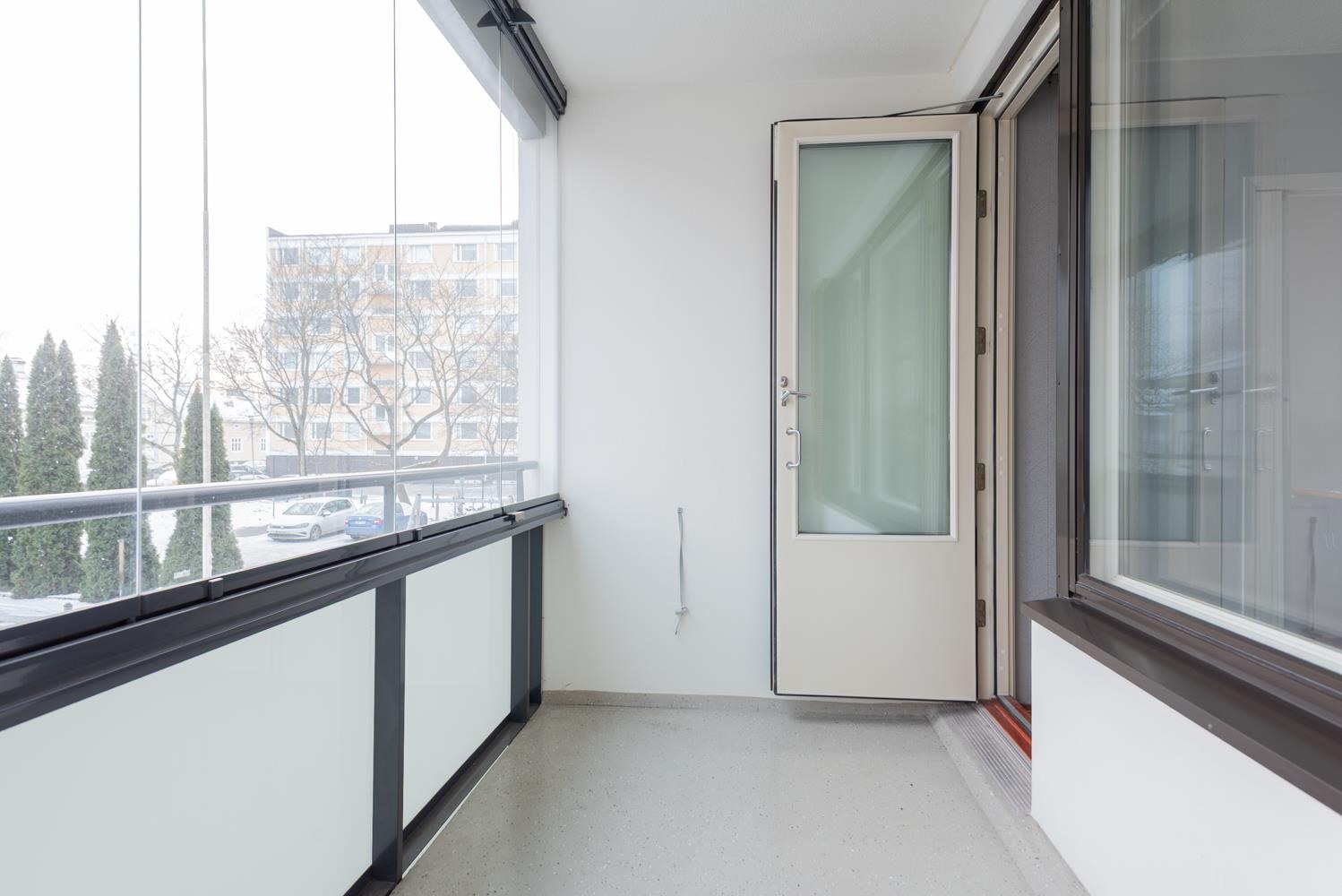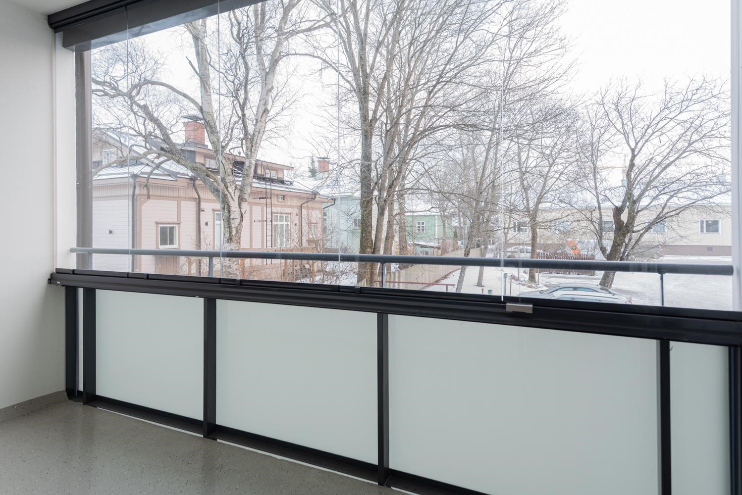 - Tilava lasitettu parveke rauhallisen sisäpihan puolelle, Kupittaankadulle päin