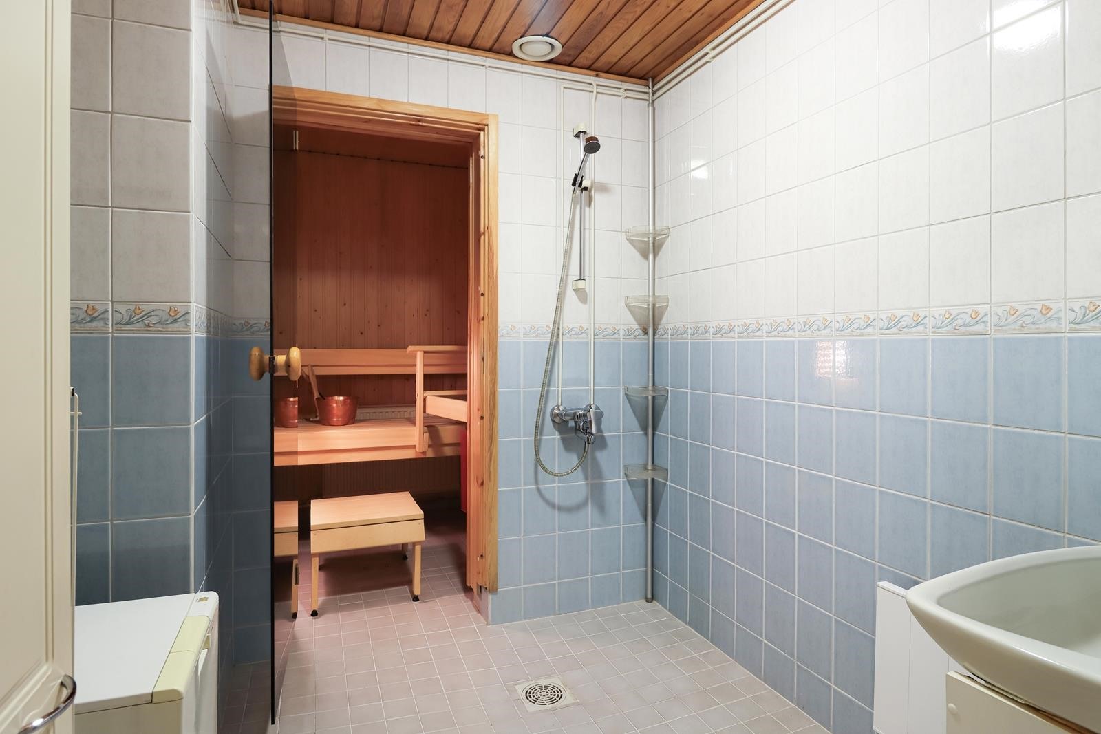 - Sauna, sähkökiuas, kylpyhuone, erillinen wc, pesukoneliitäntä ph, lattialämmitys ph, sähkö.