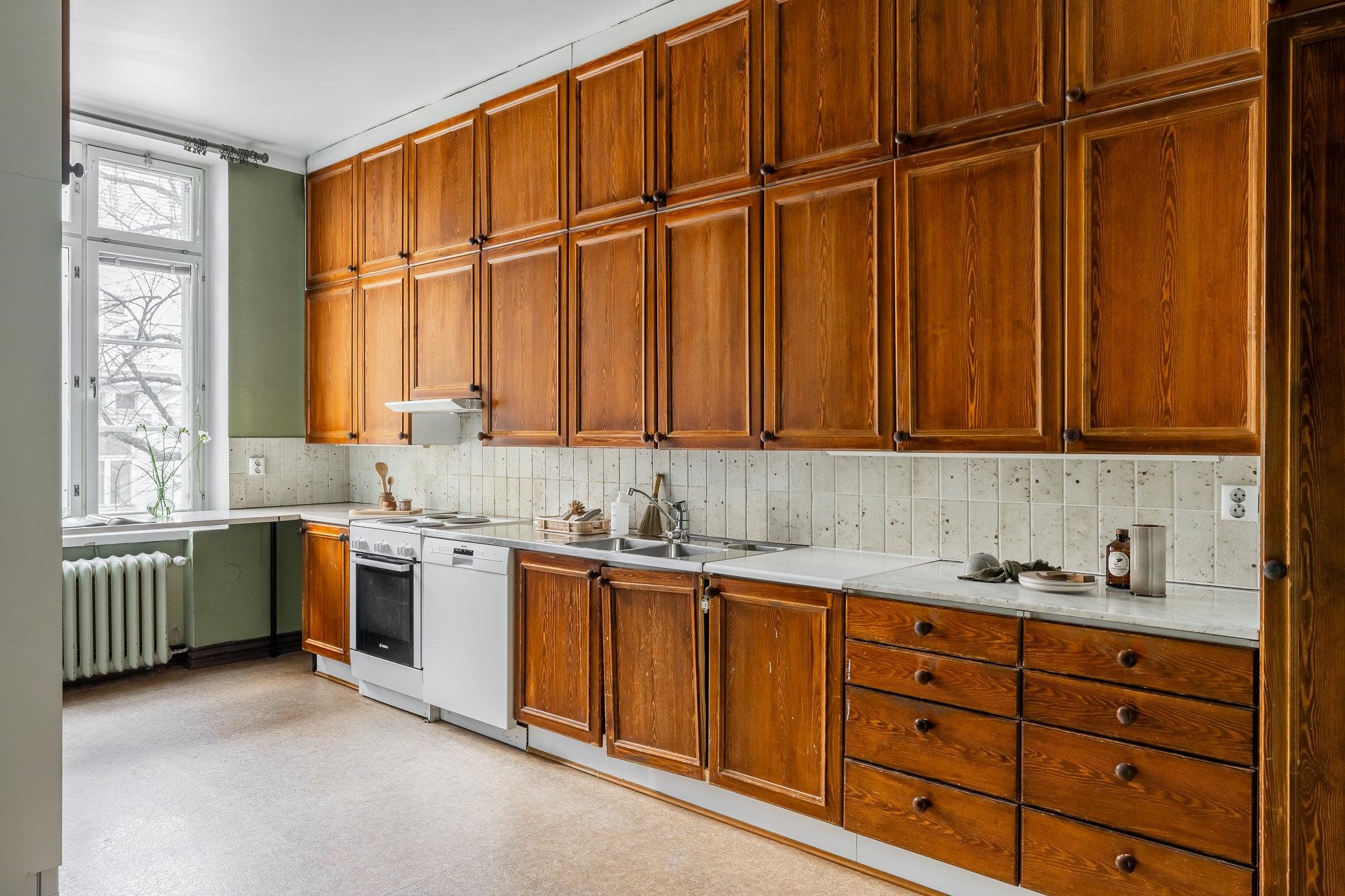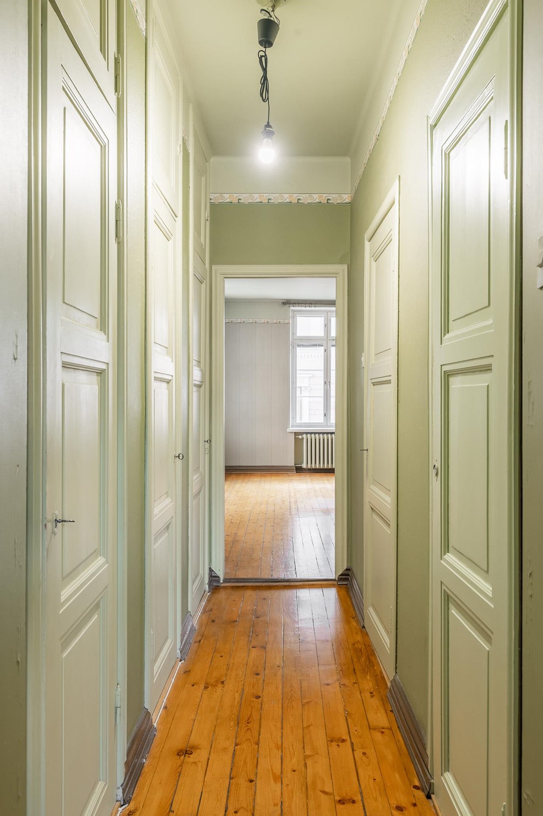 Tämä 1920-luvun Bostadsaktiebolaget Regina As Oy:ssa sijaitseva, heti vapaa 217,6 neliön huoneisto tarjoaa tilaa ja mahdollisuuksia suuremmallekin perheelle tai vaikkapa yritystoimintaan. Asunnon tunnelma syntyy korkeista huoneista, suurista ikkunoista ja klassisista materiaaleista, jotka henkivät talon alkuperäistä arkkitehtuuria. Tästä kodista voit suunnitella ja remontoida oman näköisesi kodin ainutlaatuiseen ympäristöön.