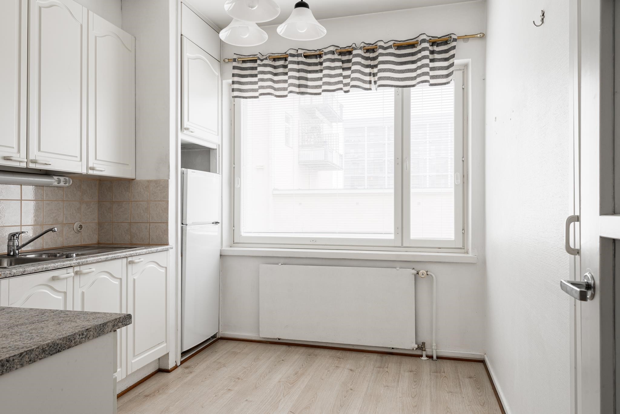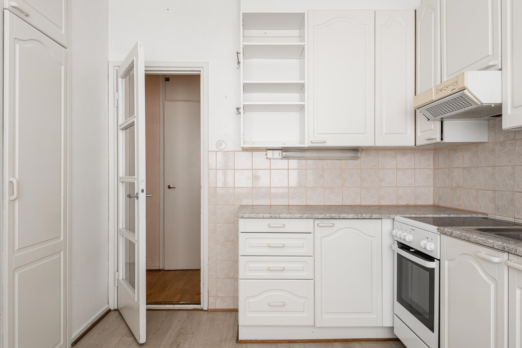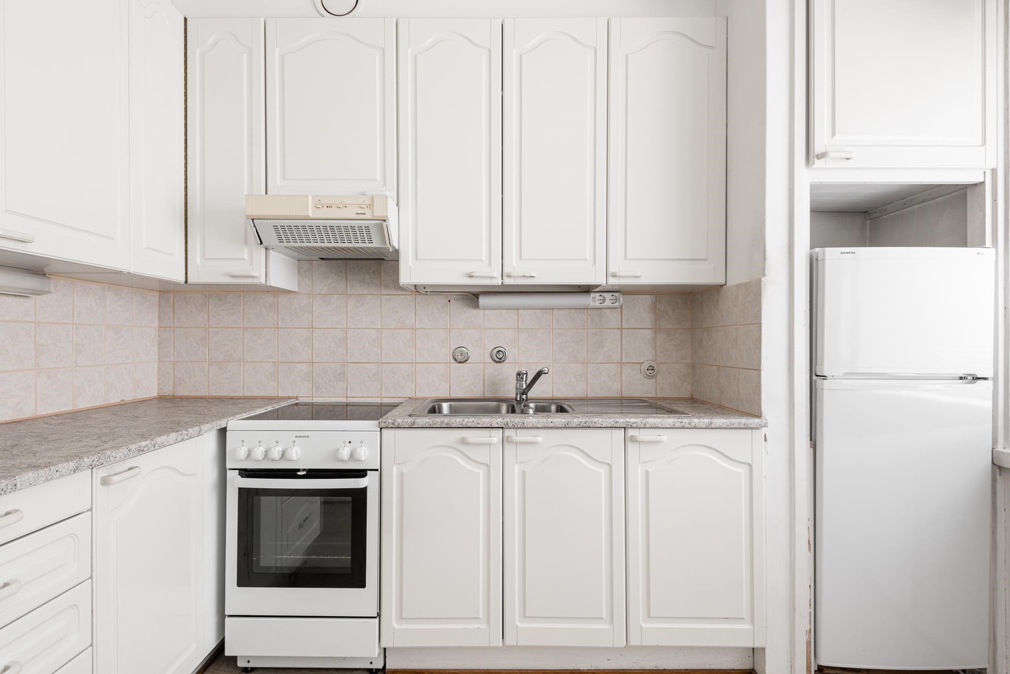 - Jenkkikaappi, keraaminen liesi, liesituuletin, kaapistot, kiinteät valaisimet.