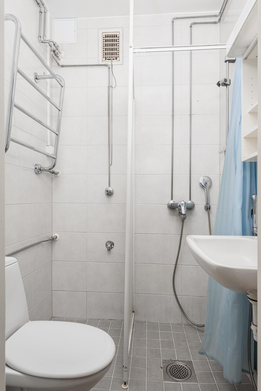 - Kylpyhuone, suihku, suihkuseinä, peilikaappi, pesukoneliitäntä, kiinteät valaisimet.