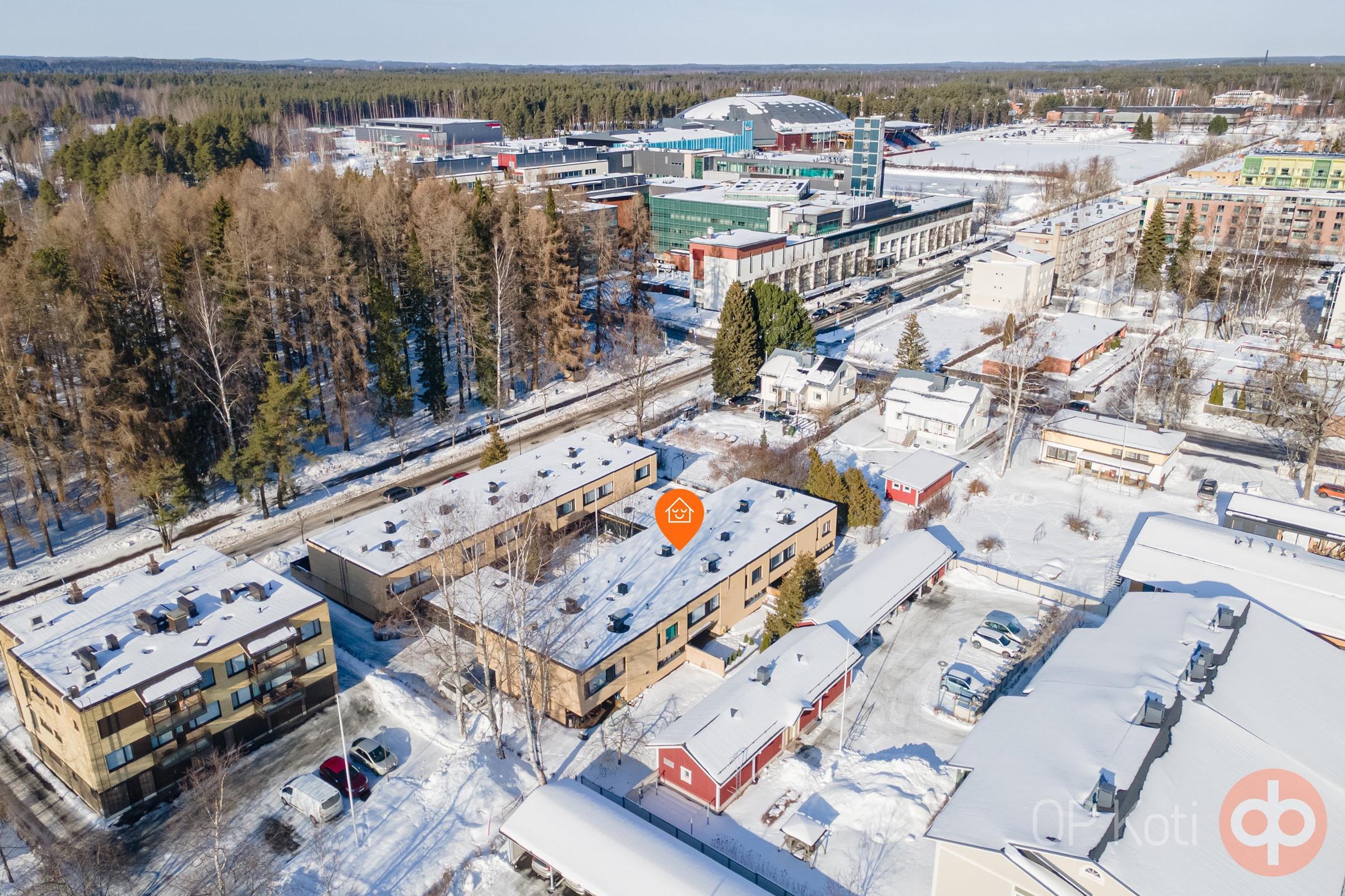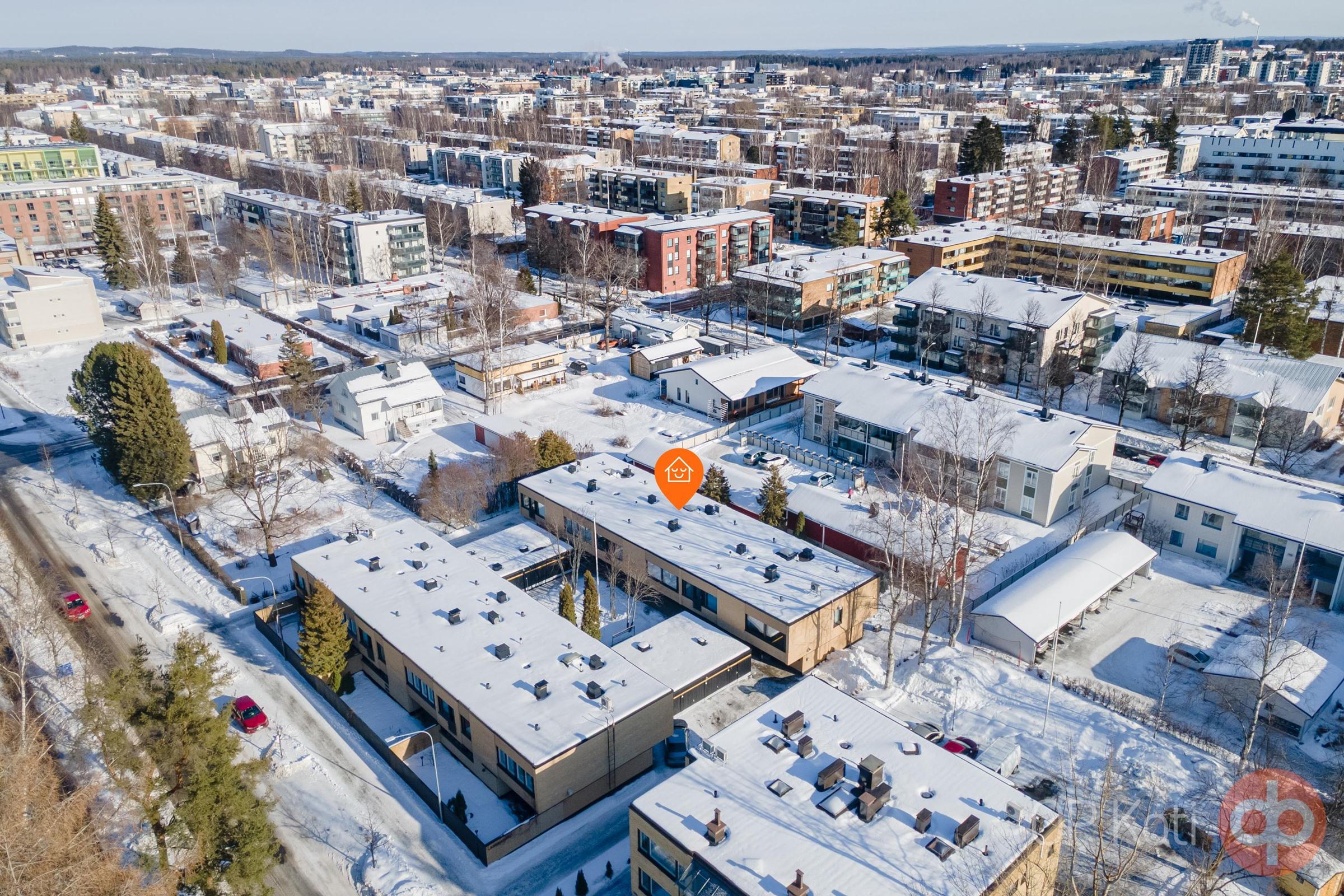 Taloyhtiössä on kuusi asuinhuoneistoa, jotka sijaitsevat kahdessa eri rakennuksessa. Taloyhtiö sijaitsee omalla tontilla. Rakennusten välissä sijaitsevat kullekin huoneistolle kuuluvat autotallit, yhteiset tilat sekä viheralue. Koti sijaitsee suositulla alueella, jossa lähellä ovat mm. tiedepuisto, uimaranta, urheilukentät sekä loistavat ulkoilumaastot vehreine puistoineen. Tule ihastumaan tähän upeaan ja tilavaan kokonaisuuteen!
