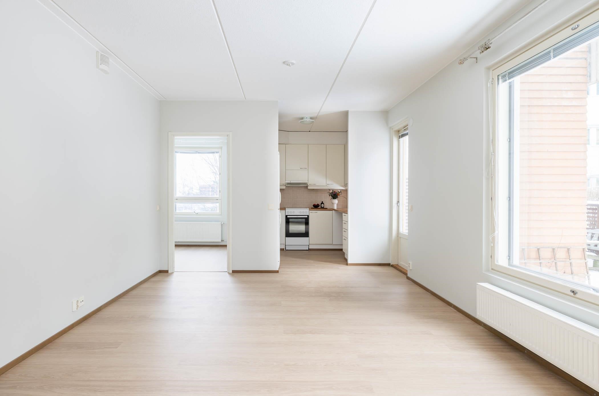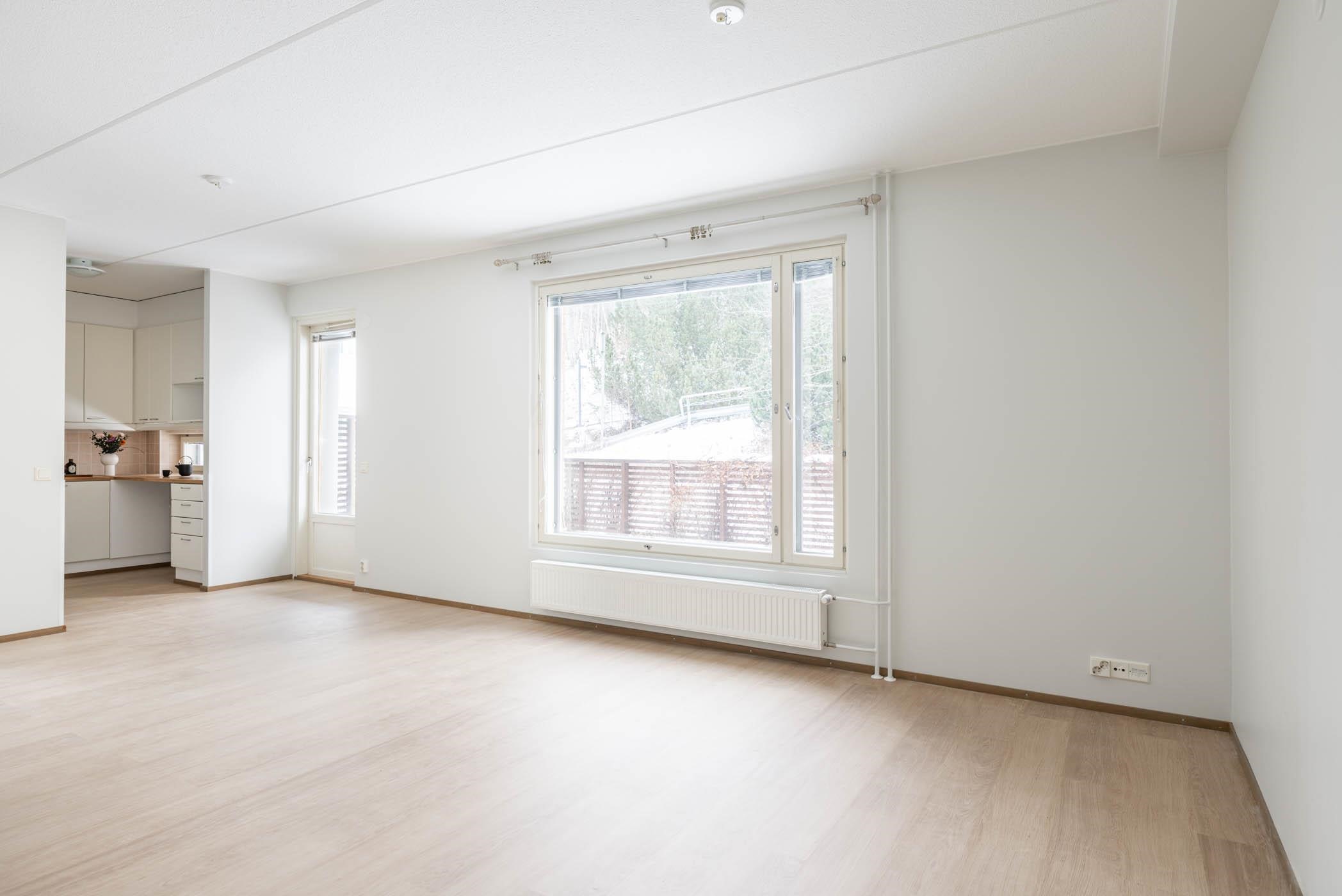 Keittiössä, eteisessä, olohuoneessa ja makuuhuoneessa on juuri uusittu kestävä laminaattilankku ja seinäpinnat on maalattu. Kylpyhuone on laatoitettu.