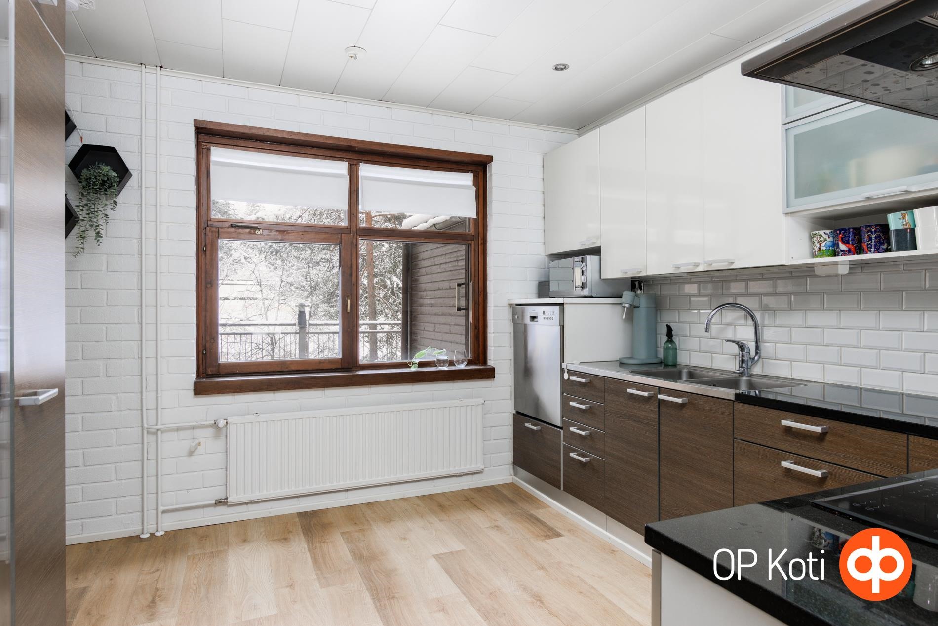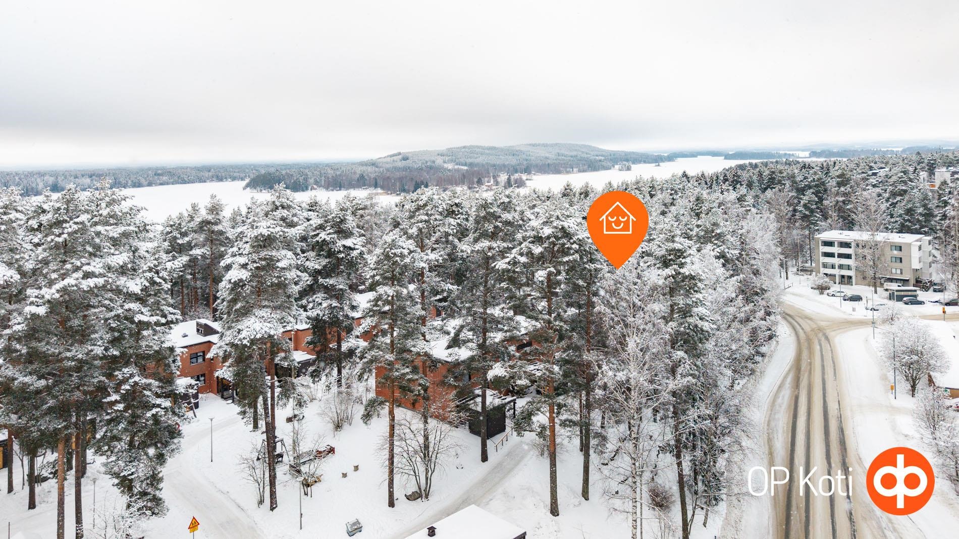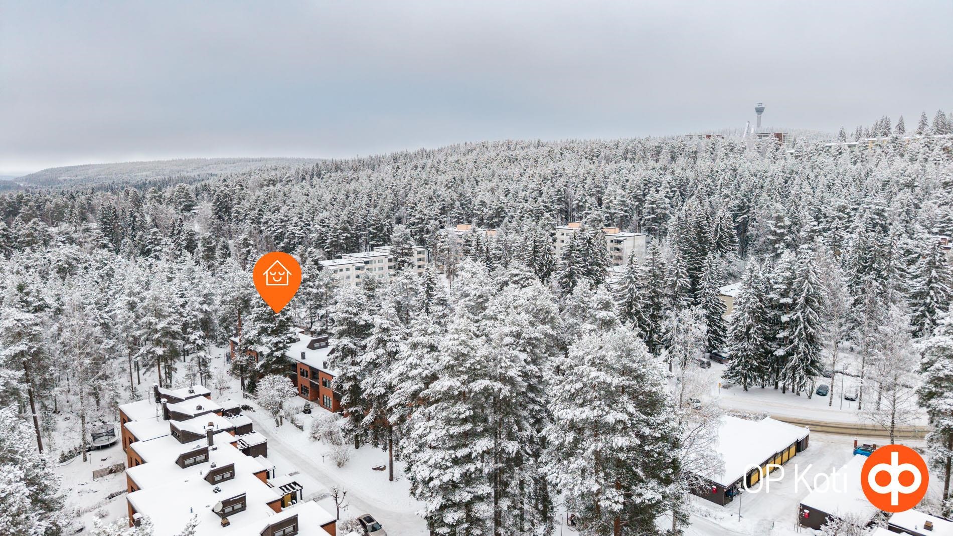 Tilavat ja valoisat huoneet valoa pursuavine ikkunoineen tarjoavat loistavan pohjan asumiselle. Huoneisto on kahdessa tasossa, joten jokaiselle löytyy oma paikkansa ja omaa rauhaa mielin määrin. Päätyasunto sijaitsee luonnonhelmassa, josta avautuvat upeat metsäiset maisemat ympäröivään luontoon. Etenkin lapsi- ja lemmikkiperheille mahtava sijainti: takapihalta alkaa metsäpalsta ja lähellä niin uimaranta kuin lenkkipolut Puijoa unohtamatta.