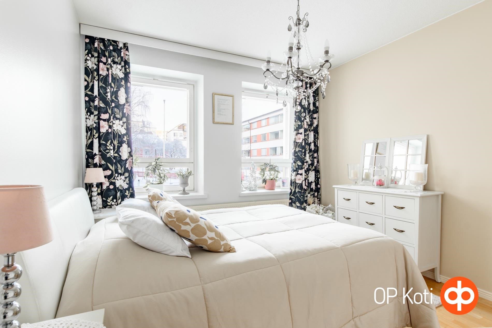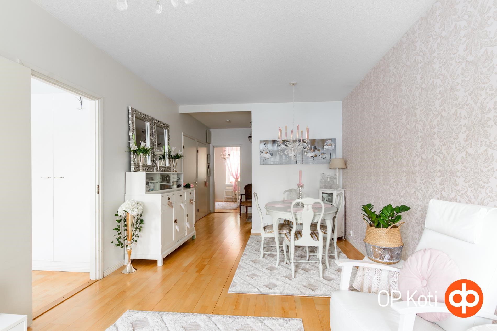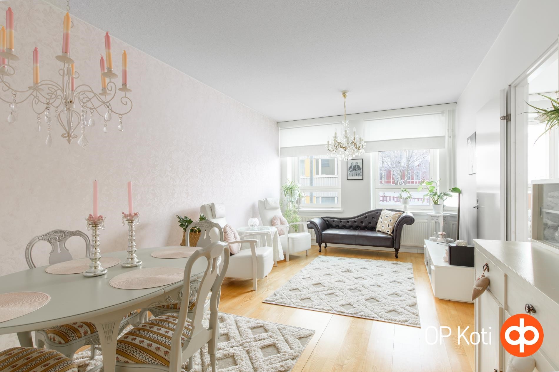 Asunto sijaitsee hissitalon toisessa kerroksessa ja hurmaa heti ajattomalla ja seesteisellä tunnelmallaan. Paksut kiviseinät ja syvät ikkunasyvennykset tuovat kotiin arvokkuutta ja rauhaa. Sisustus on tehty myöskin talon alkuperäistä tyyliä kunnioittaen.