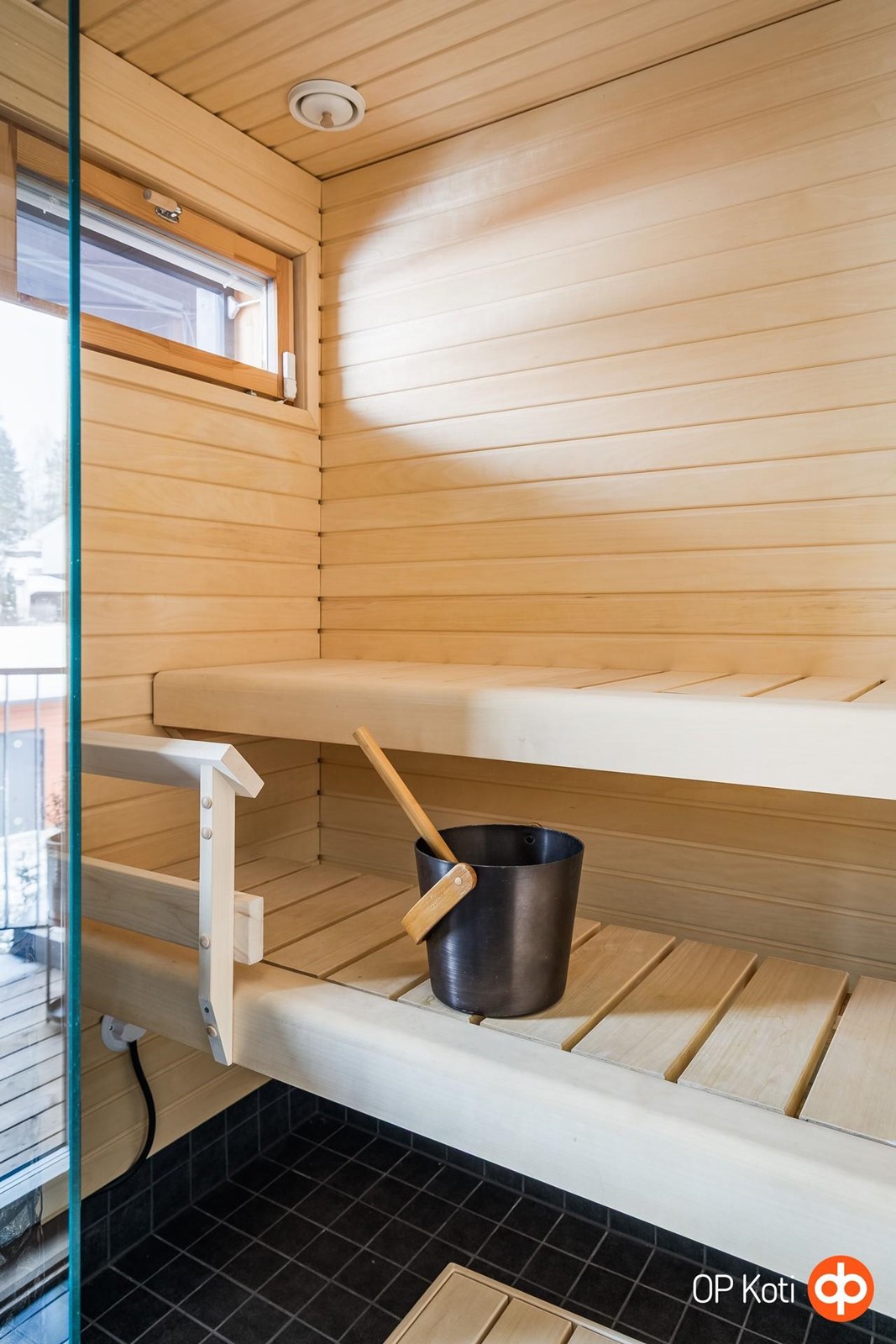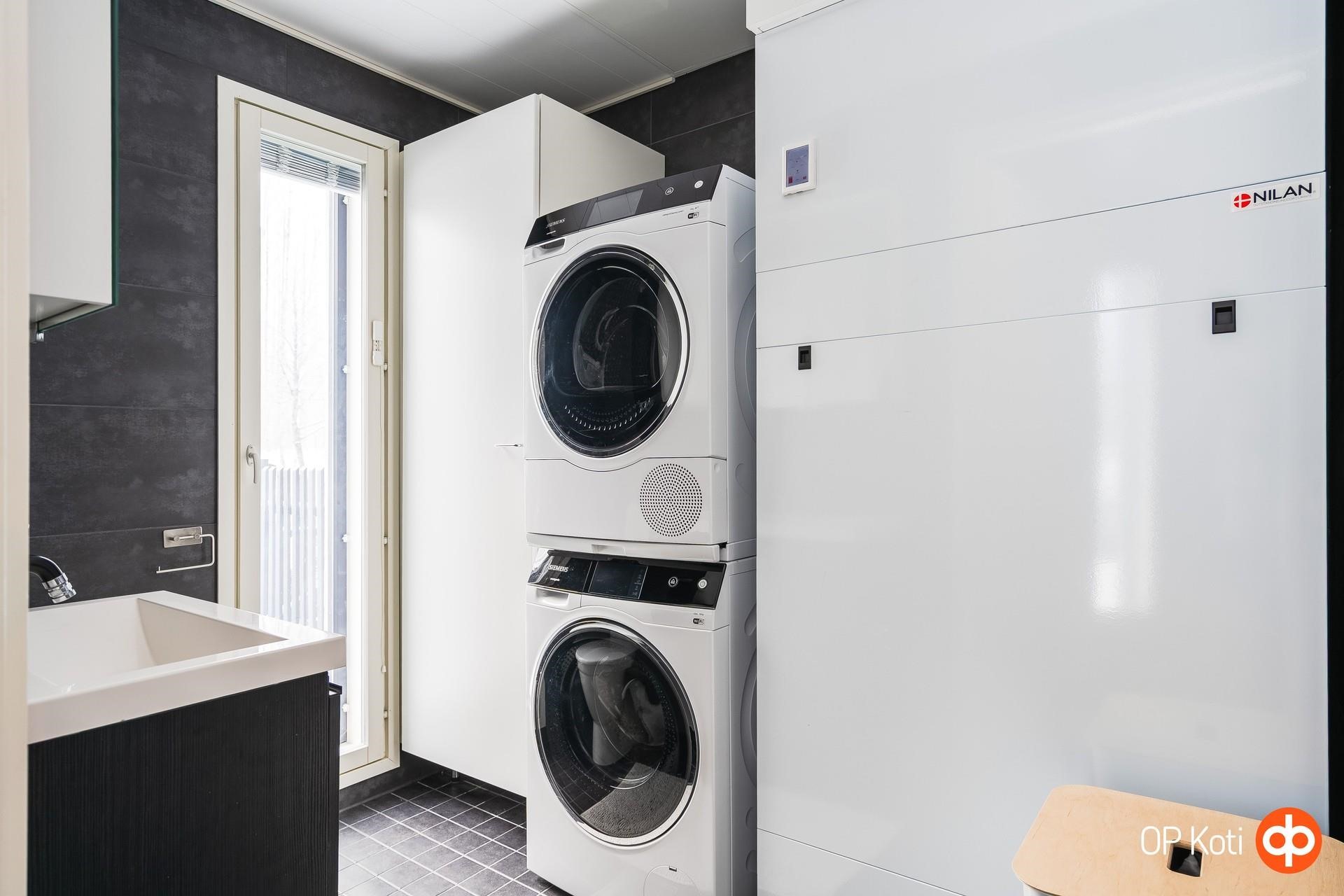 - Sauna, sähkökiuas, kylpyhuone, erillinen wc, suihku, suihkuseinä, peilikaappi, allaskaappi, pesukoneliitäntä, lattialämmitys, kiinteät valaisimet.