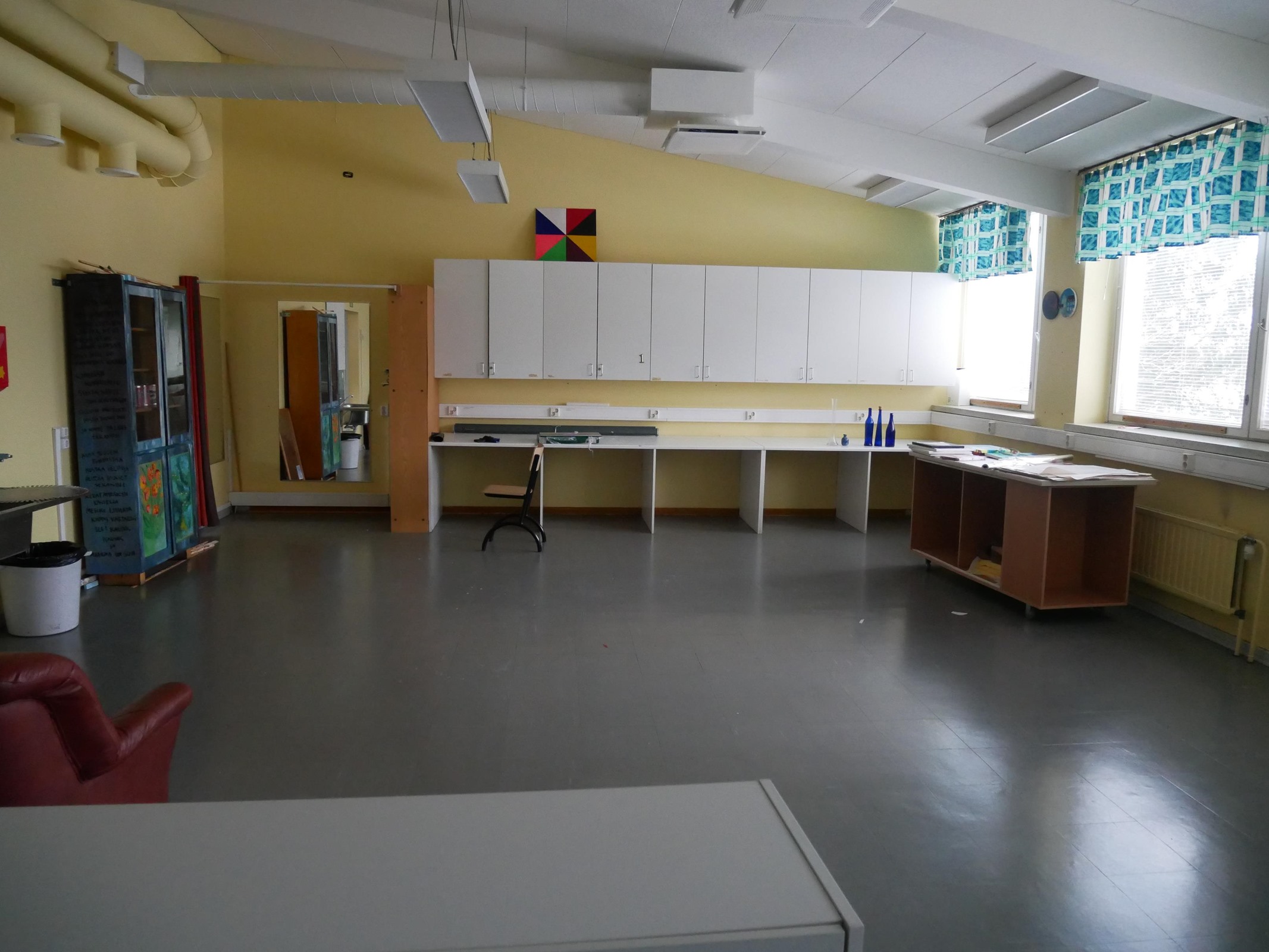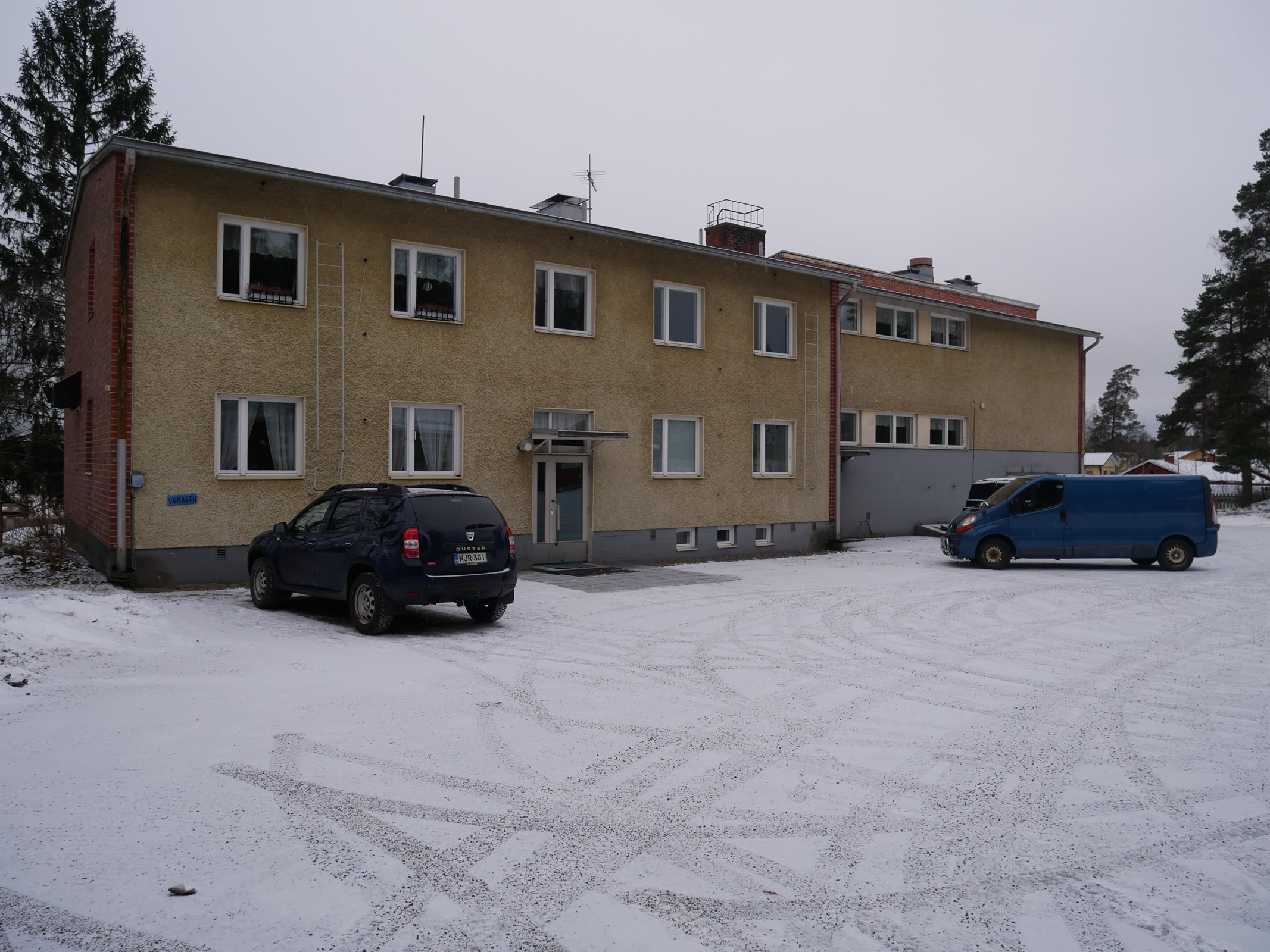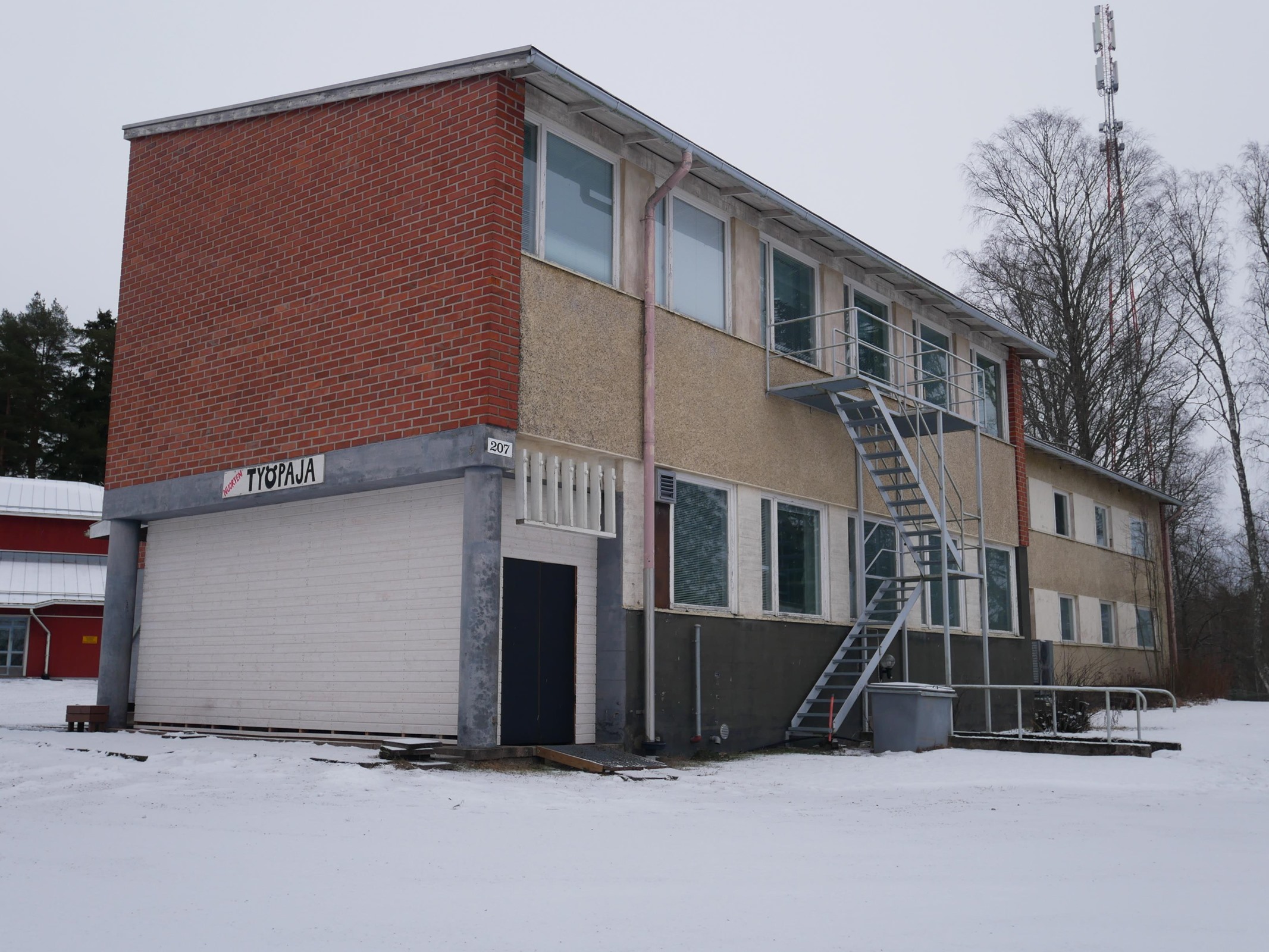 - 949 m2Koulurakennuksiksi rakennetut tilat, jossa alunperin ollut opetustilat aputiloineen, kolme asuntoa, tekniset tilat ja varastotilaa. Tiloja muunneltu tarpeita vastaaviksi vuosien varrella.