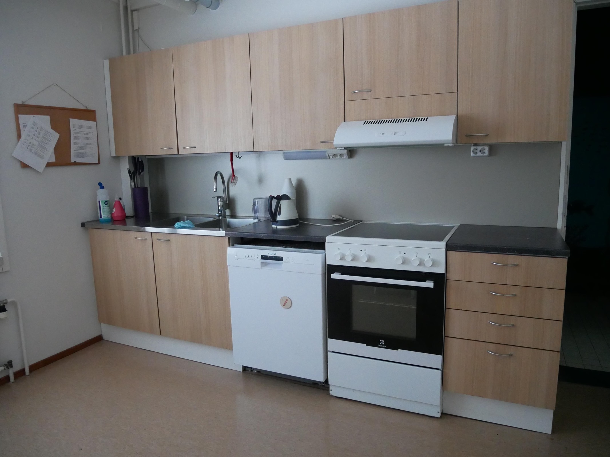 - Sauna, kylpyhuone Kellarikerroksessa, erillinen wc Asunnoissa wc, lisäksi useita koulutiloissa., suihku Kellarissa sijaitsevassa kylpyhuoneessa, ei asunnoissa., kiinteät valaisimet.