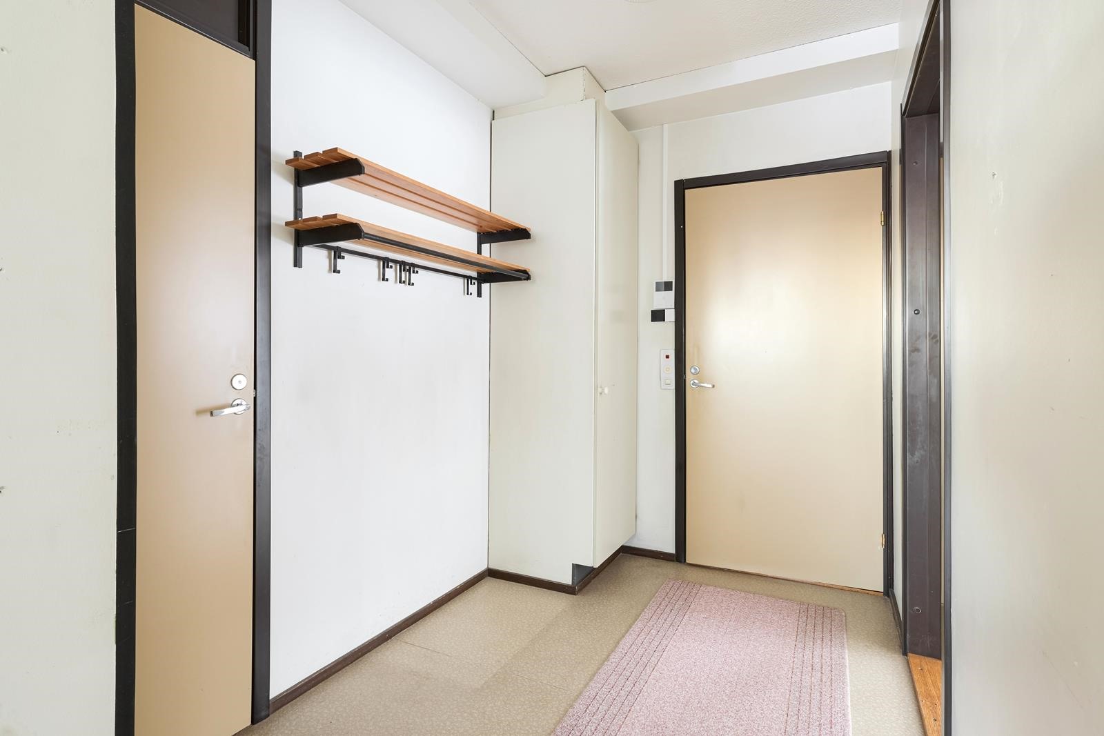 Keittiö: maali, muovimatto. Olohuone: maalia, muovimatto. Makuuhuone 1: tapettia/maalia, muovimatto. Makuuhuone 2: tapettia/maalia, muovimatto. Kylpyhuone: muovitapettia, muovimatto. Eteinen: maalia, muovimatto.