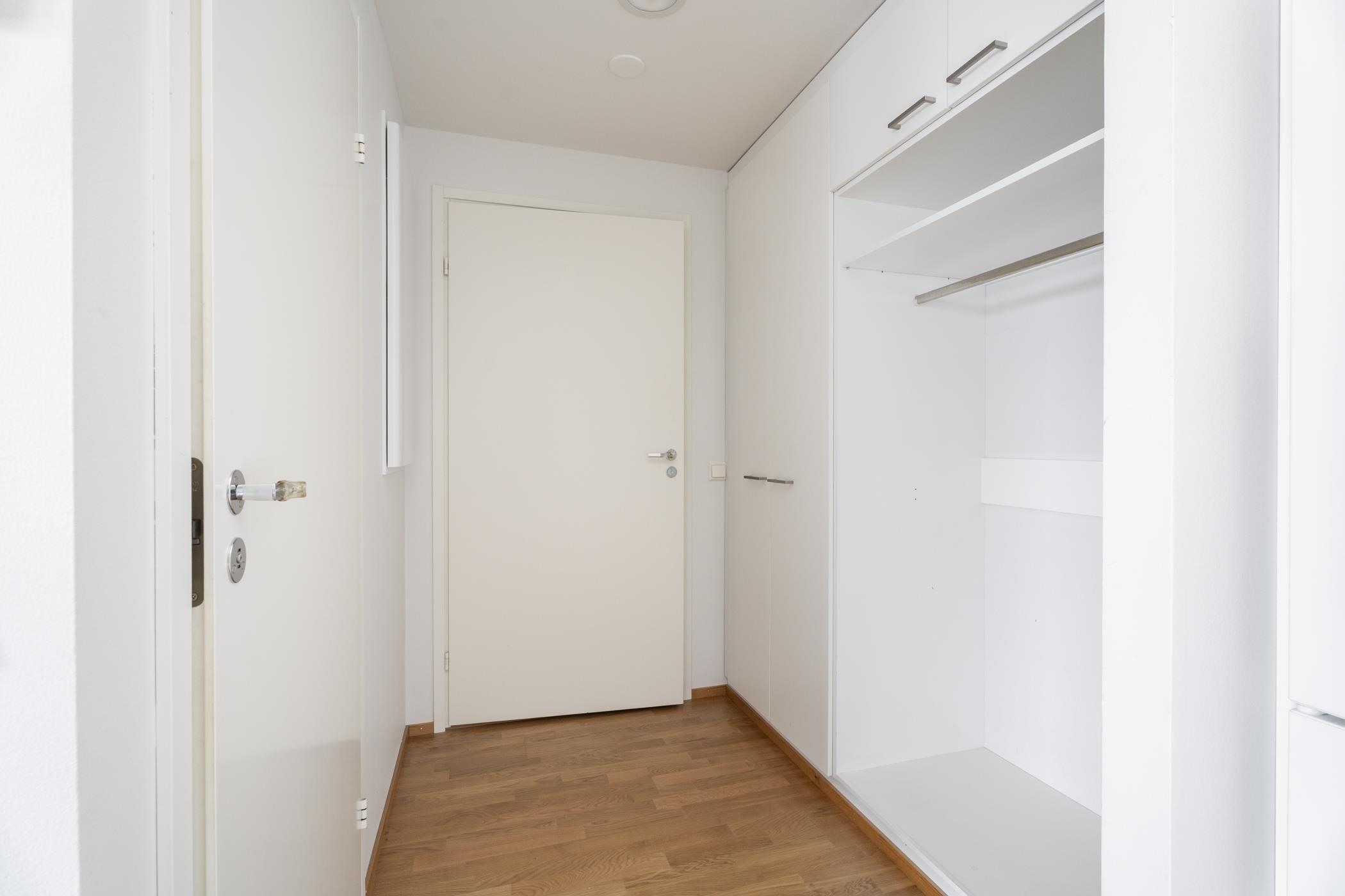 Keittiö: Lattiassa on parketti, seinät on maalattu. Olohuone: Lattiassa on parketti, seinät on maalattu. Makuuhuone 1: Lattiassa on parketti, seinät on maalattu. Kylpyhuone: Lattiassa ja seinissä on laatta. Eteinen: Lattiassa on parketti ja seinät on maalattu. Vaatehuone: Lattiassa on parketti, seinät on maalattu.