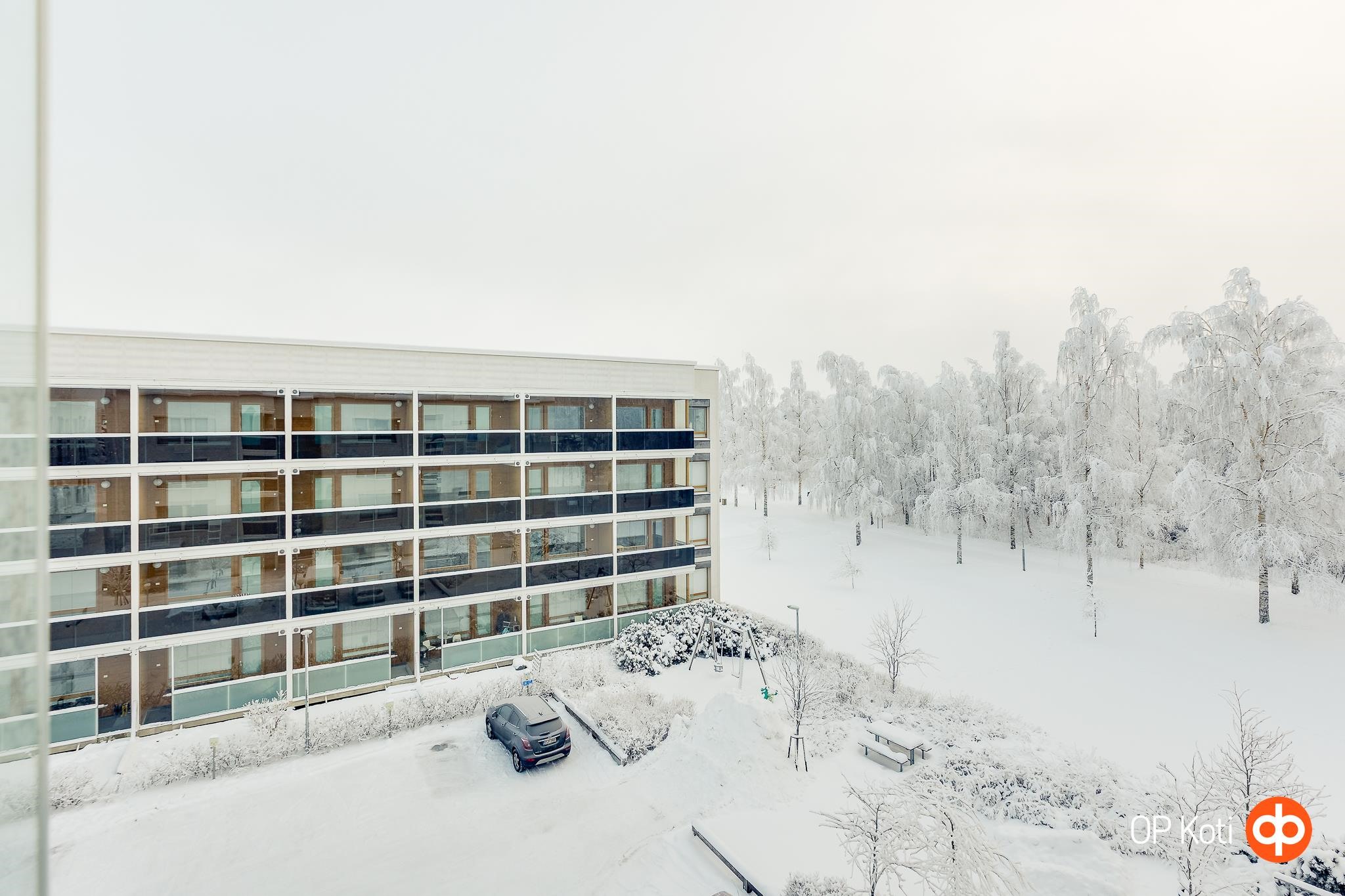 - Kulmahuoneisto parvekkeen näkymät sisäpihalle, mutta näkyy myös pyörätietä ja metsää