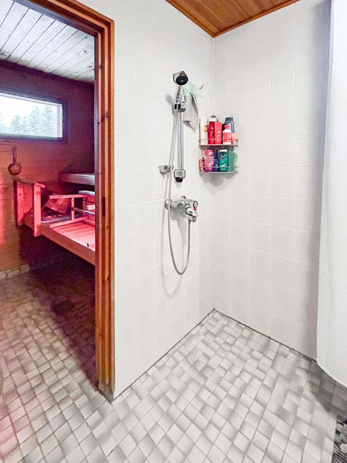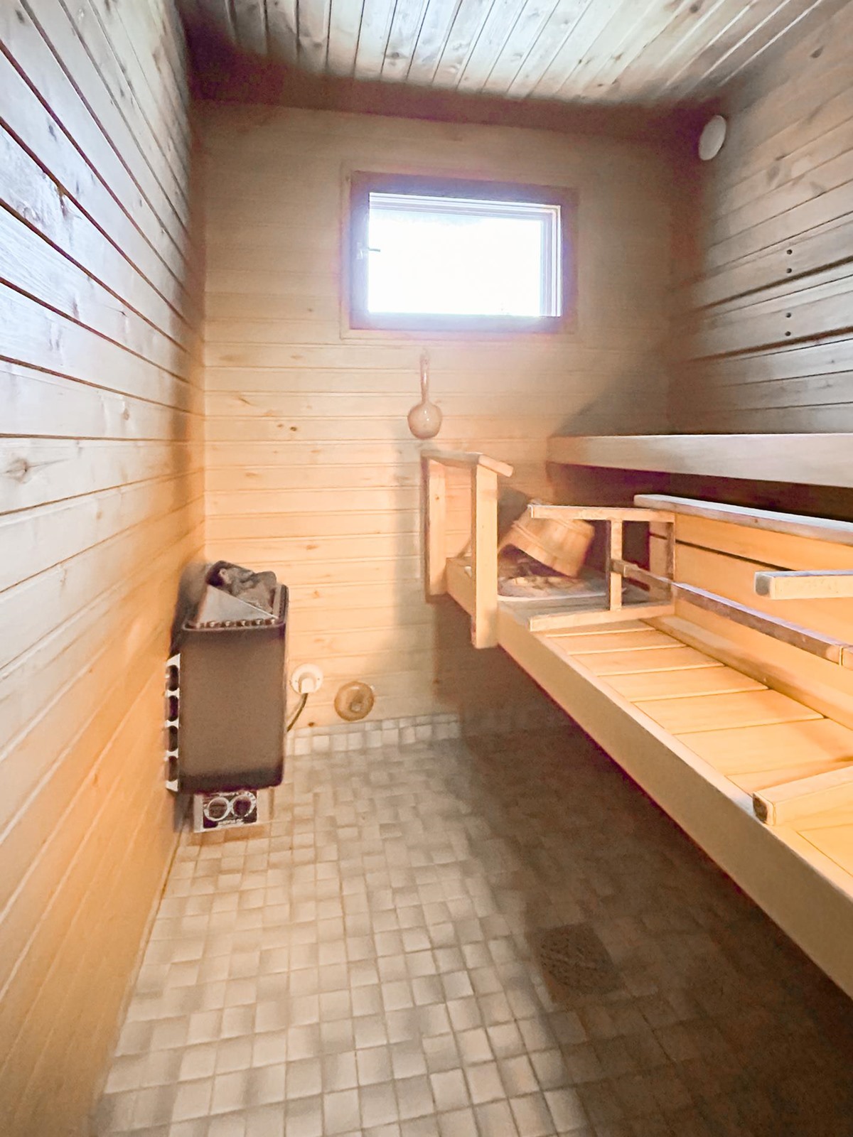 - Sauna, sähkökiuas, kylpyhuone, erillinen wc, suihku, pesukoneliitäntä, lattialämmitys.